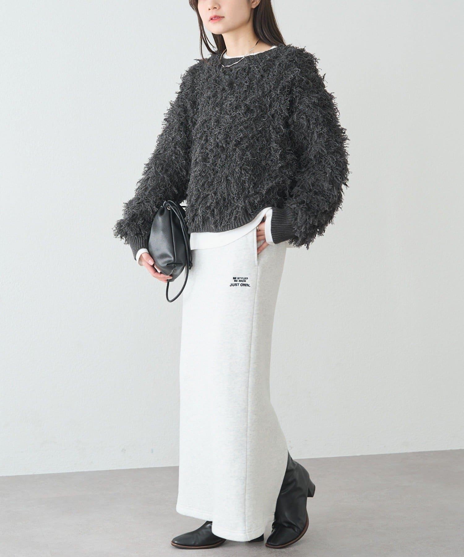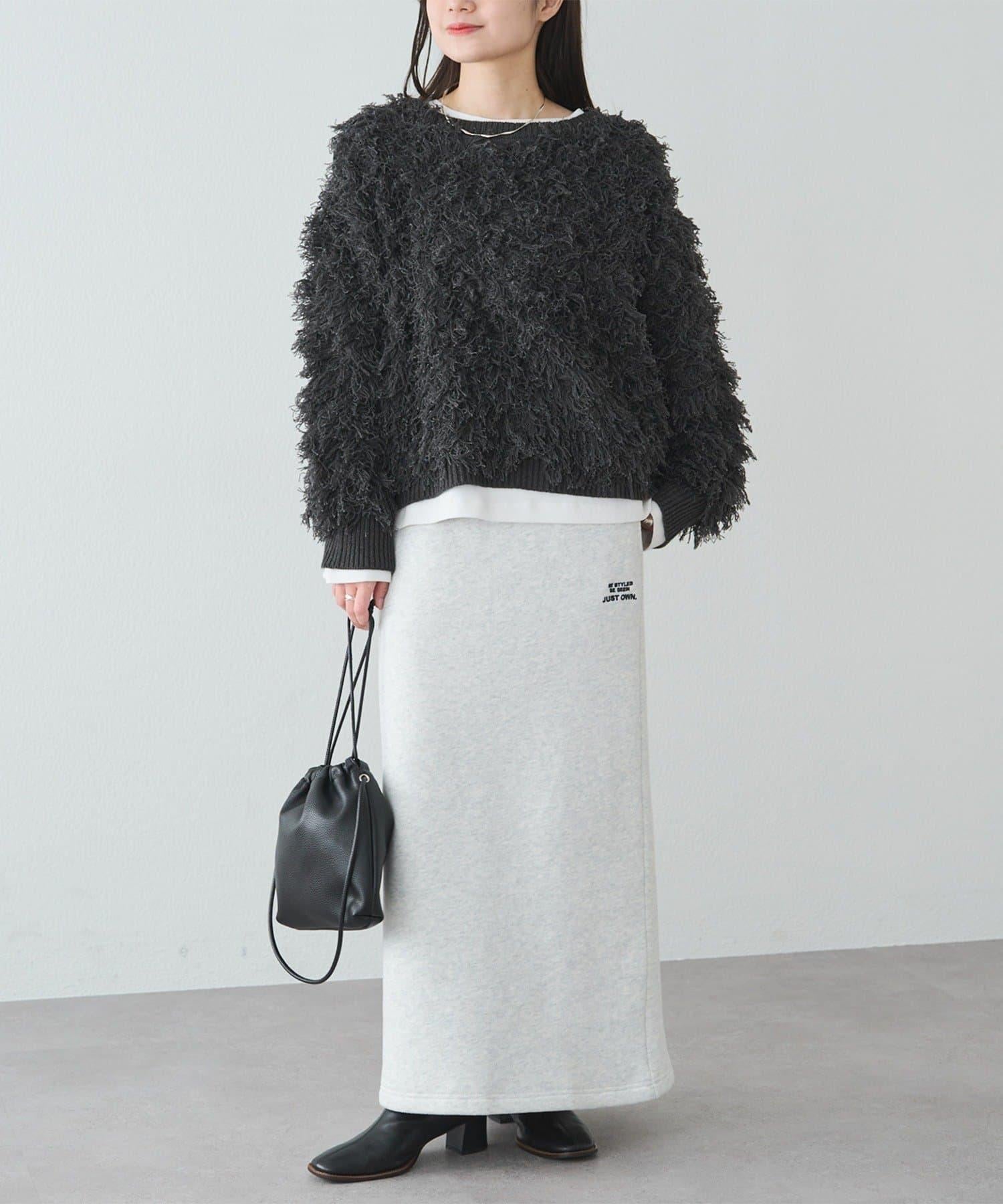 裙子的輪廓是直線型的,落腳整齊,因此可以搭配毛茸茸的針織衫或蟒蛇背心。