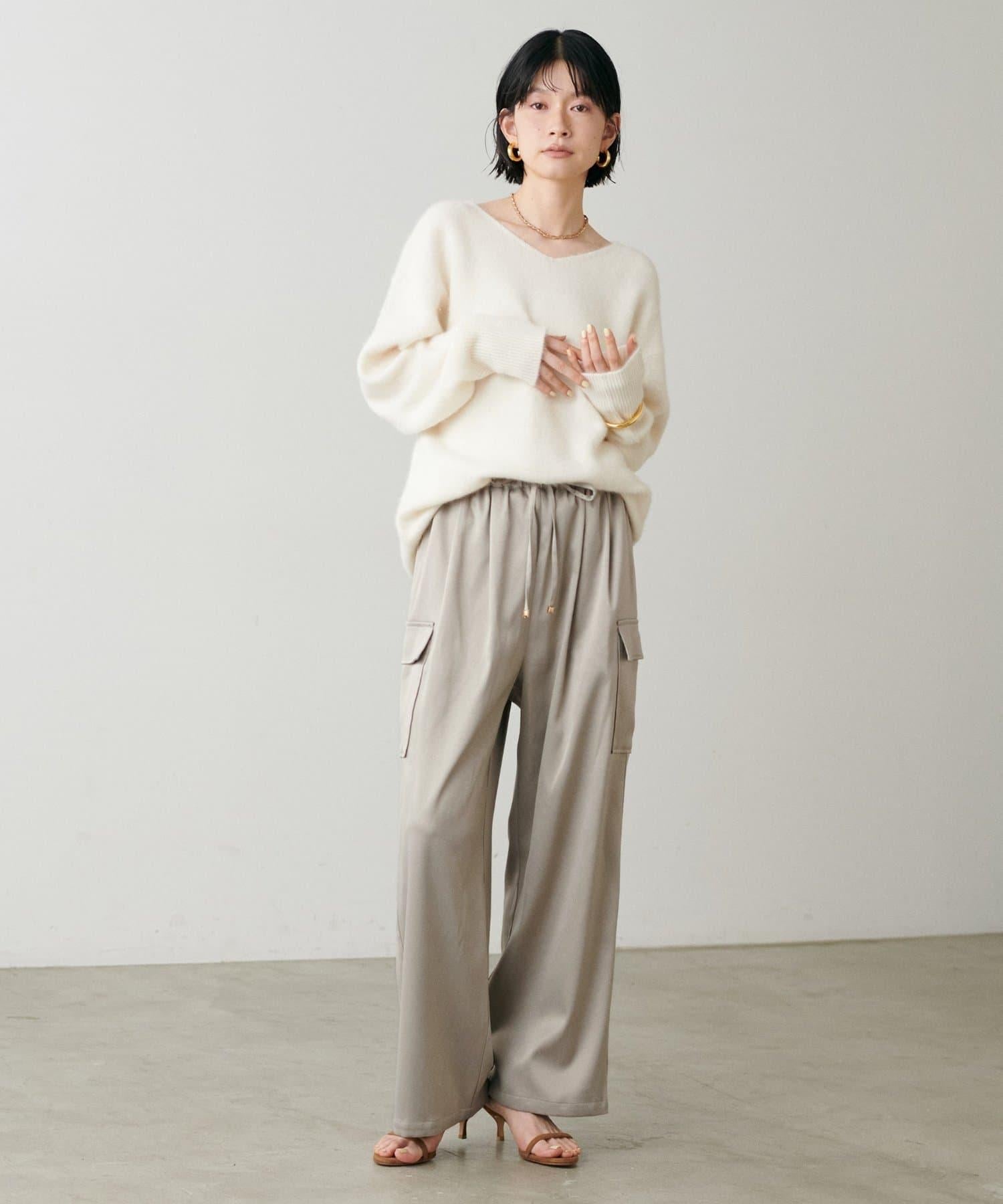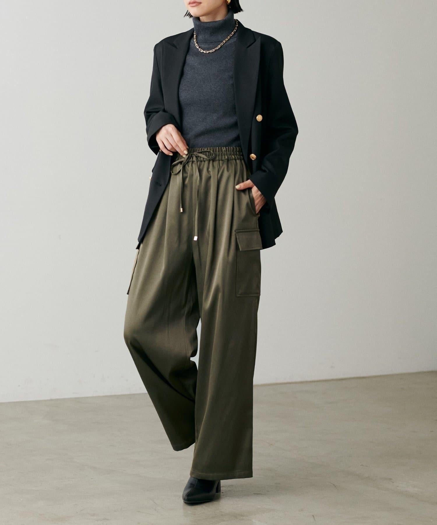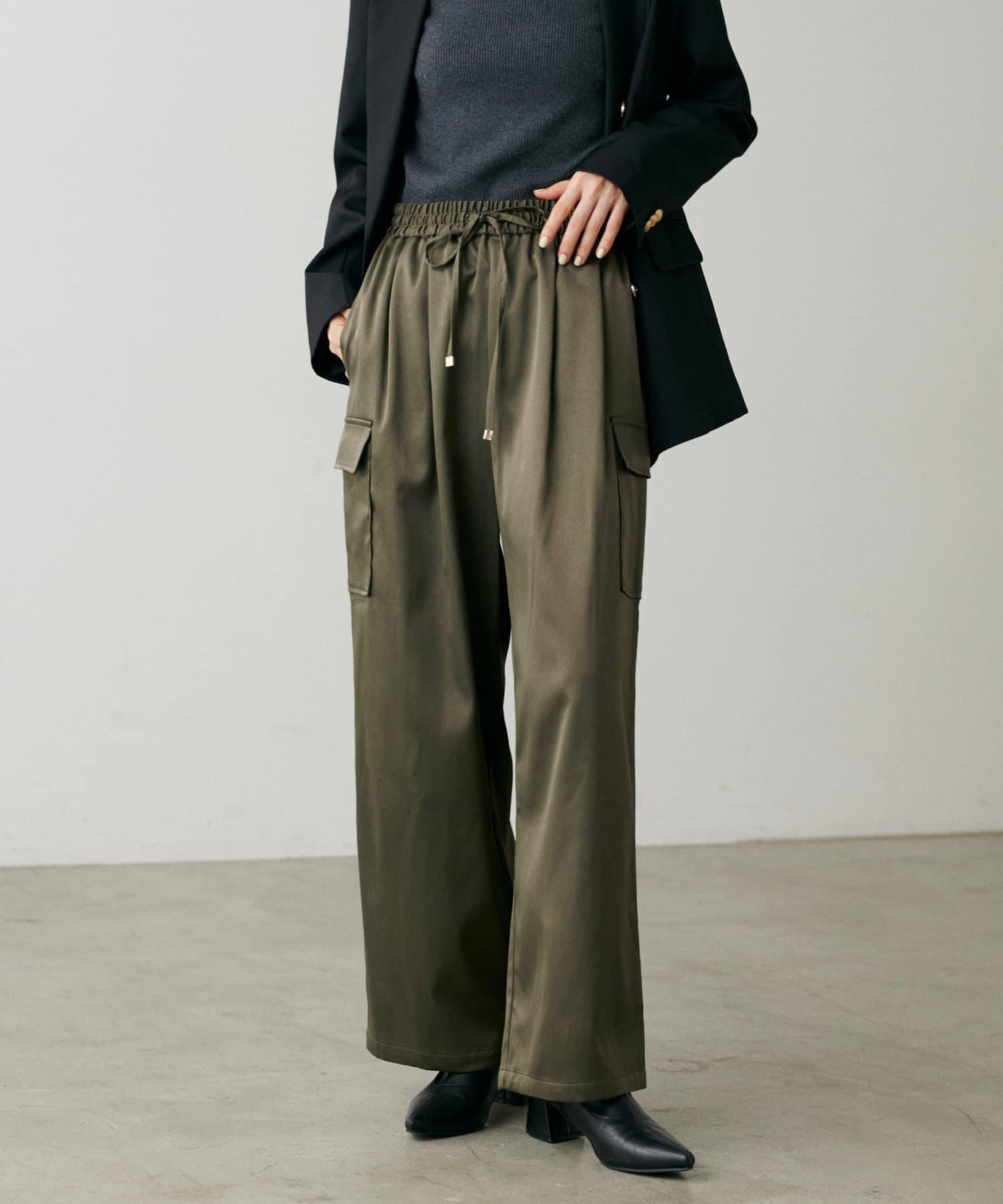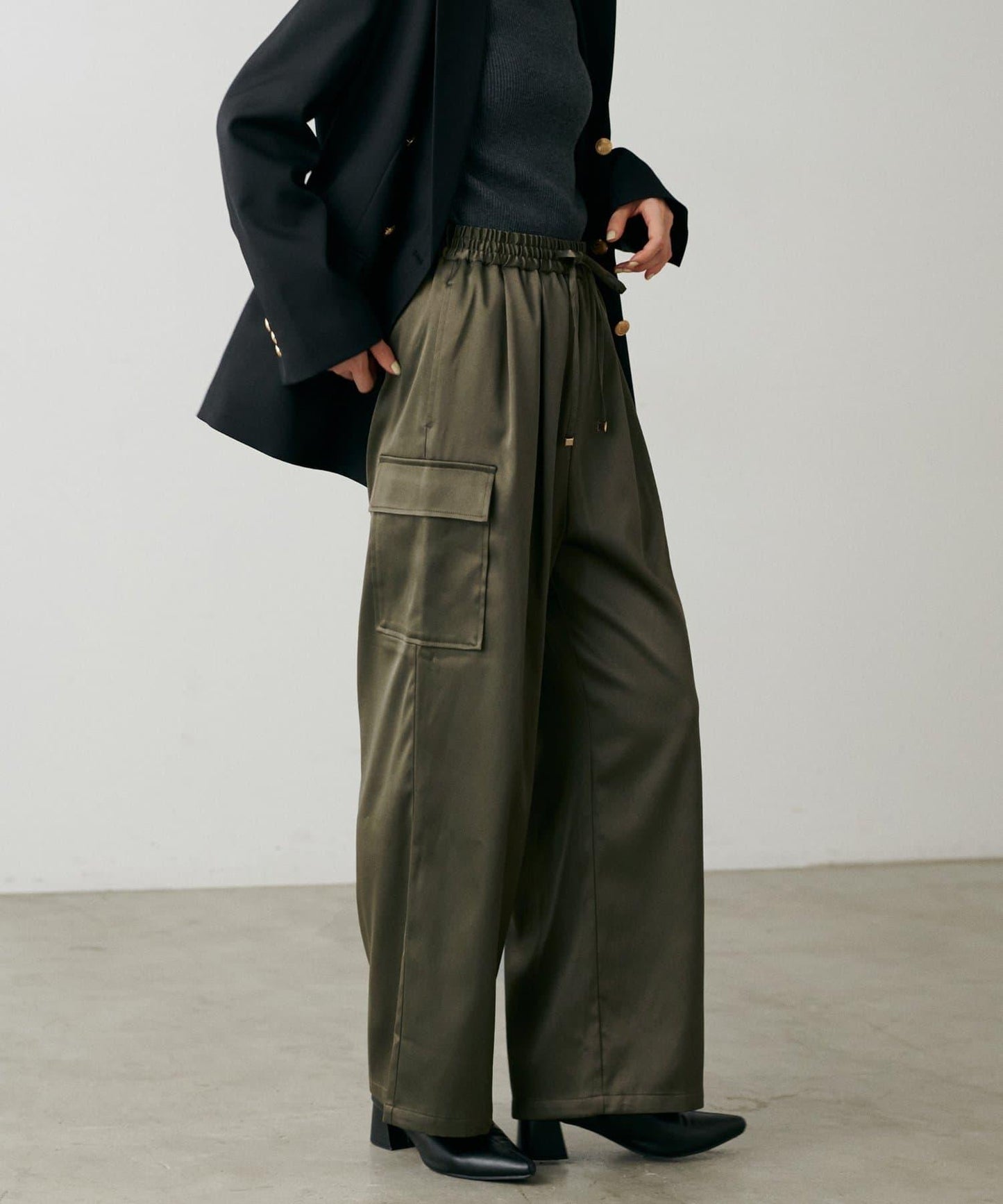 緞面襯裡、微拉絲緞面貨物抽繩長褲