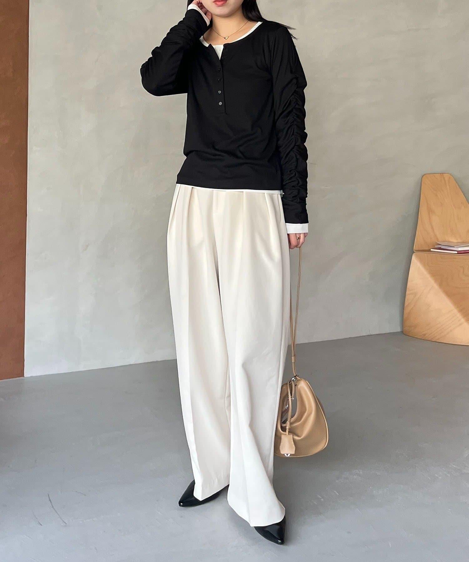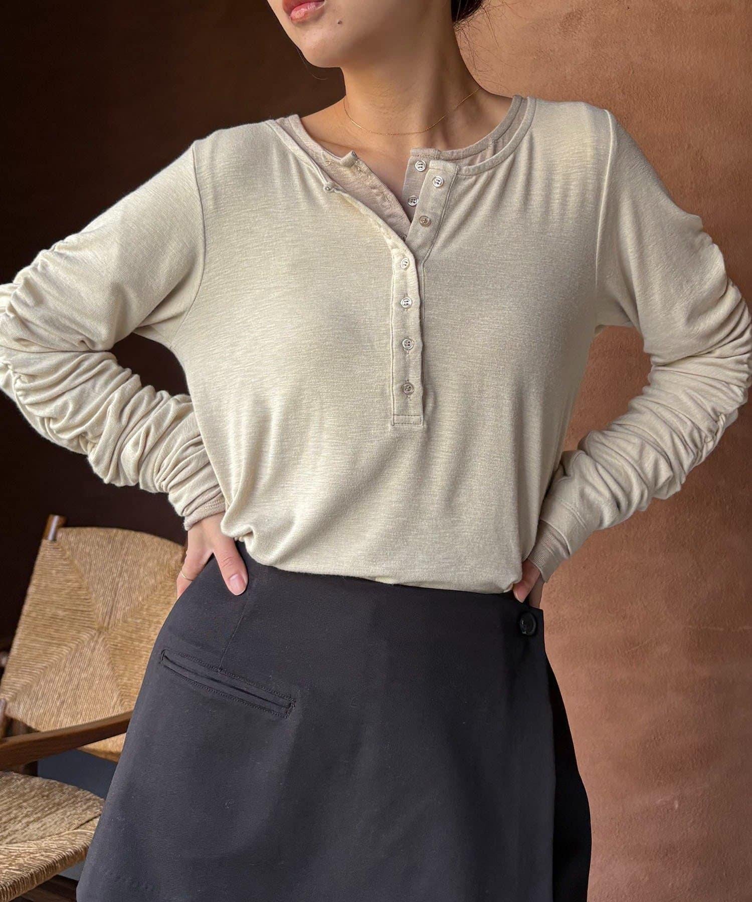 柔軟的面料具有墜感,即使疊穿也不會顯得僵硬。