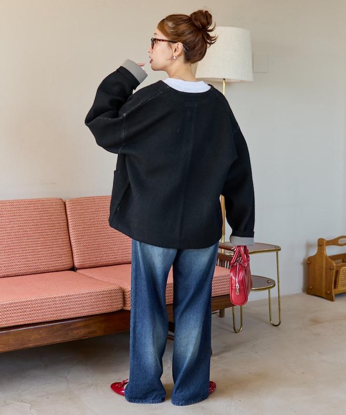 簡單而獨特的按扣開衫,背面採用純色設計。
