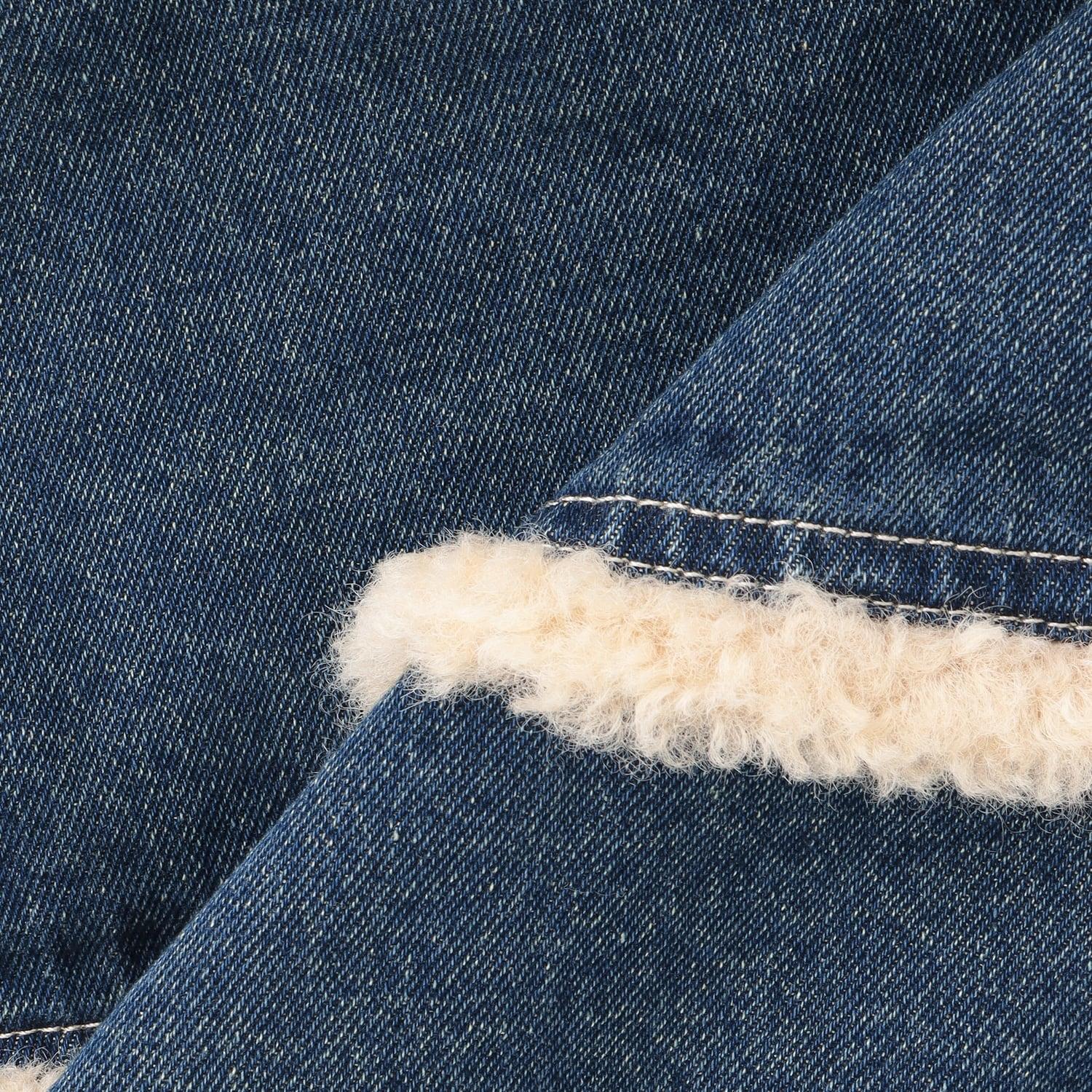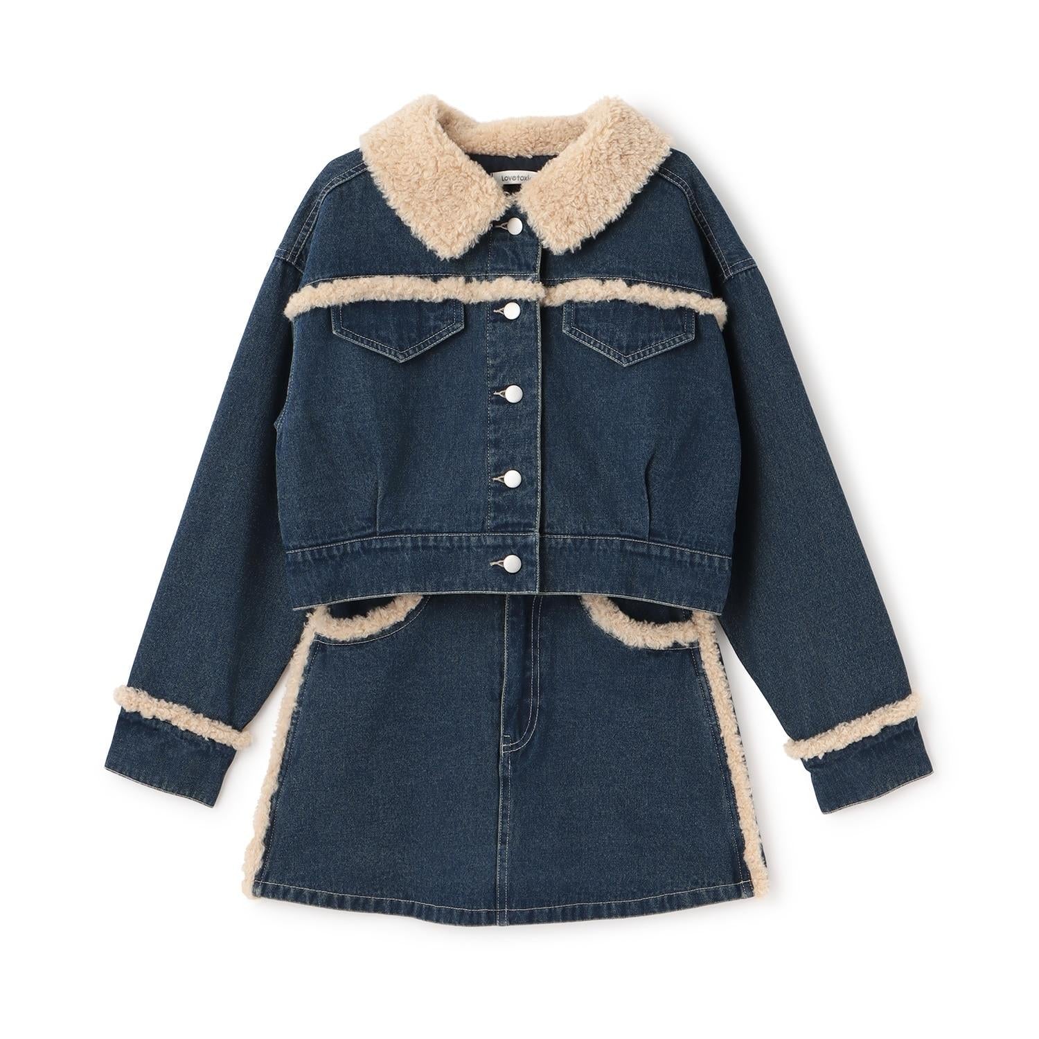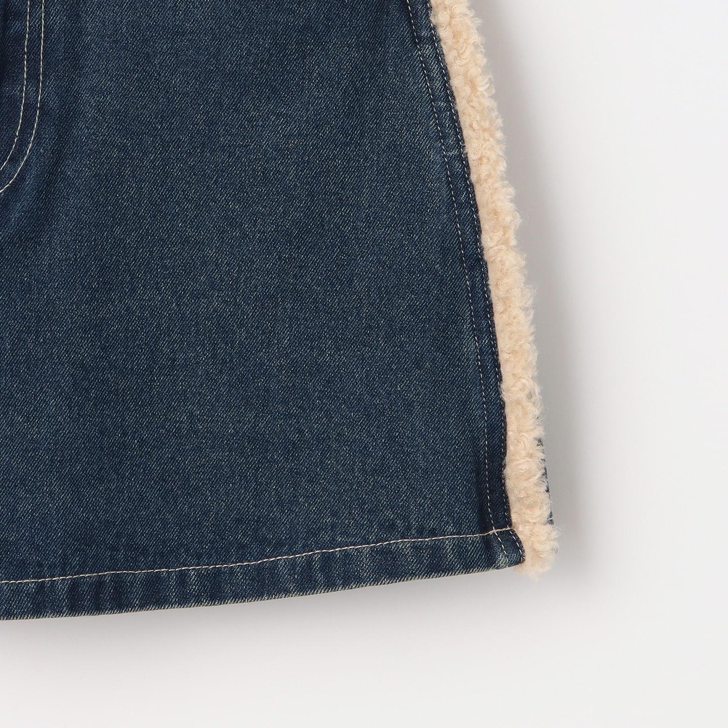 這款 G 字褲和梯形裙套裝採用牛仔面料剪裁而成。