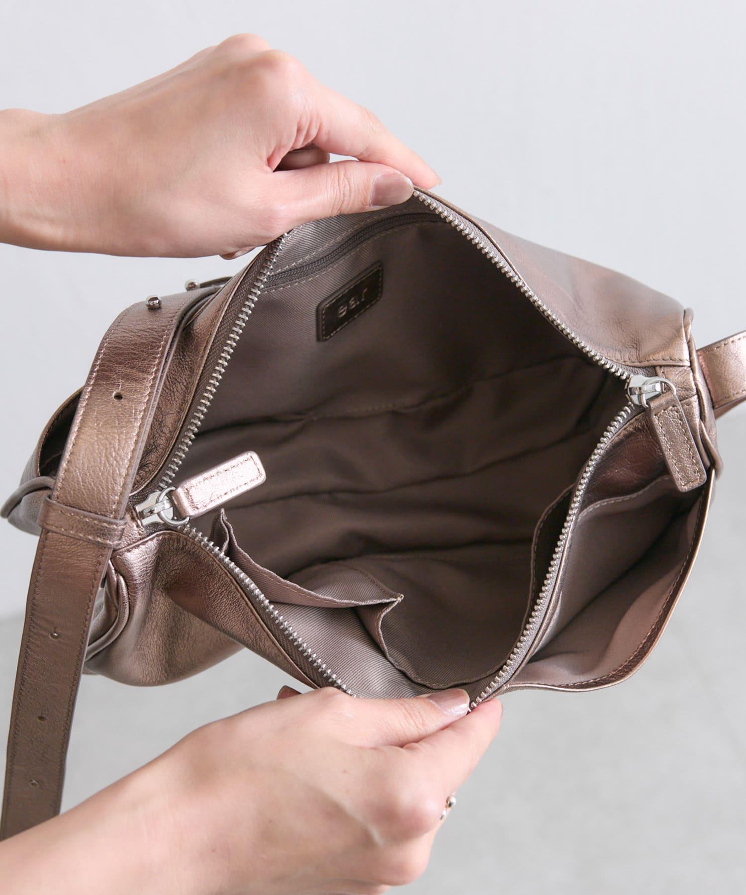 兩個外斜袋、一個拉鍊內袋和兩個內斜袋。