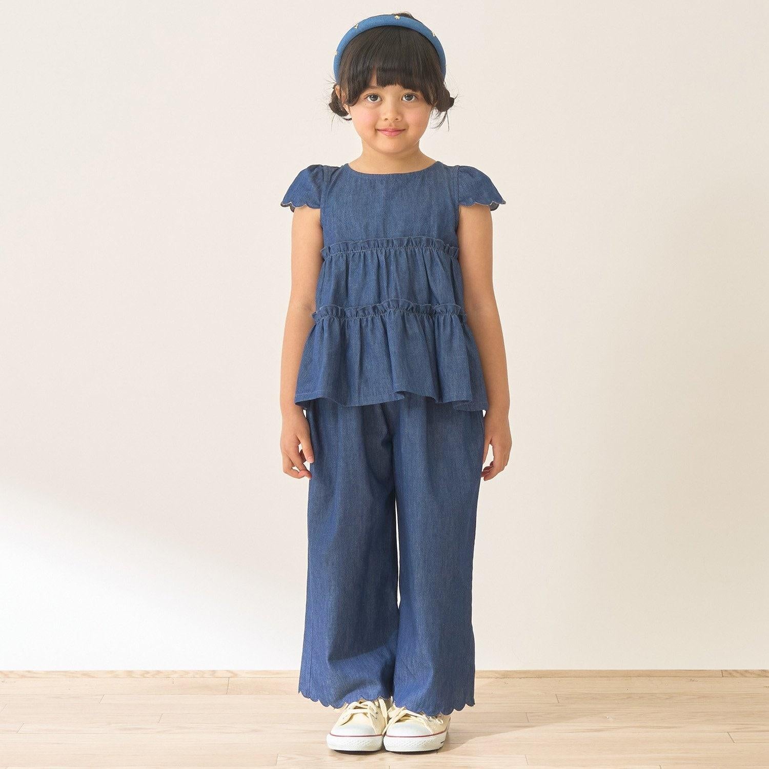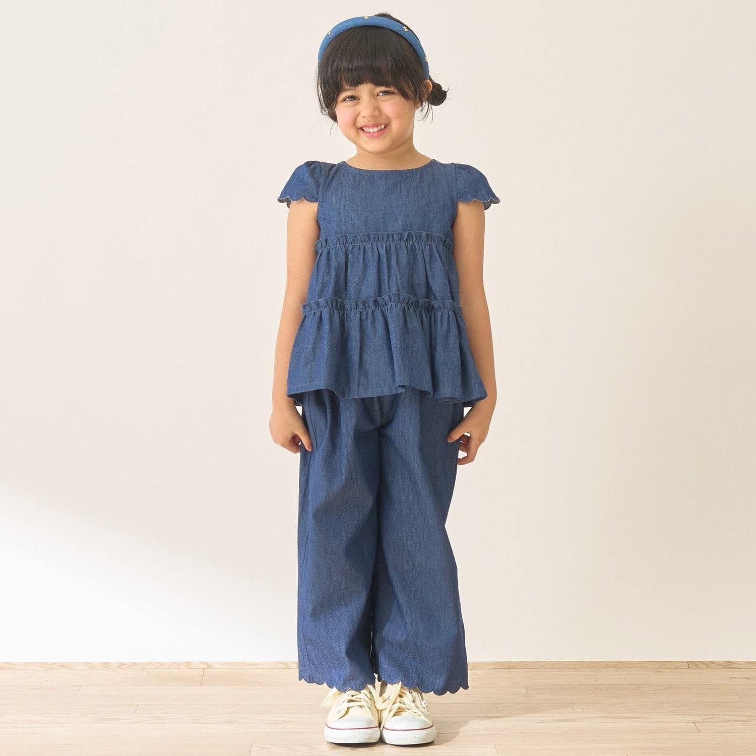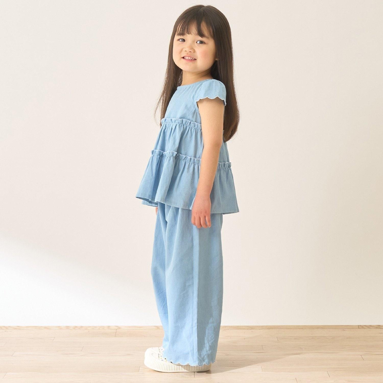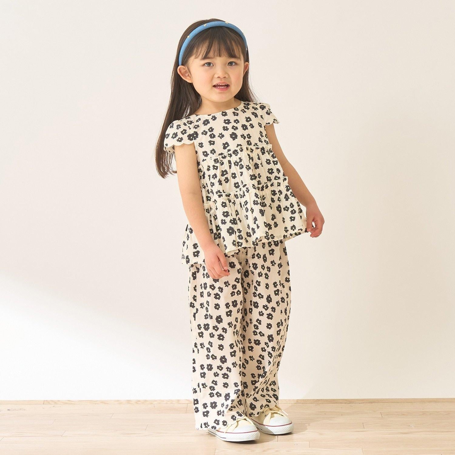 長褲採用可愛的扇形下襬,更顯優雅。