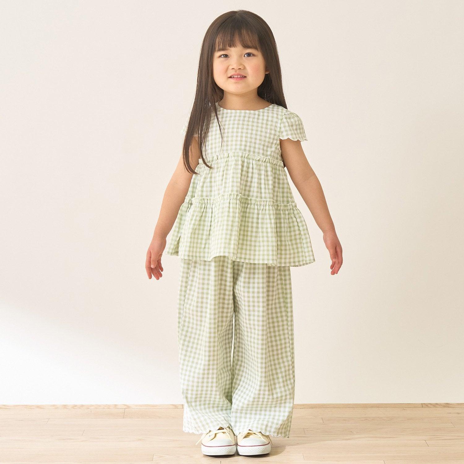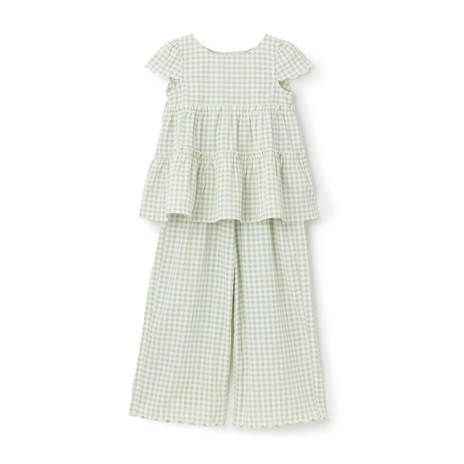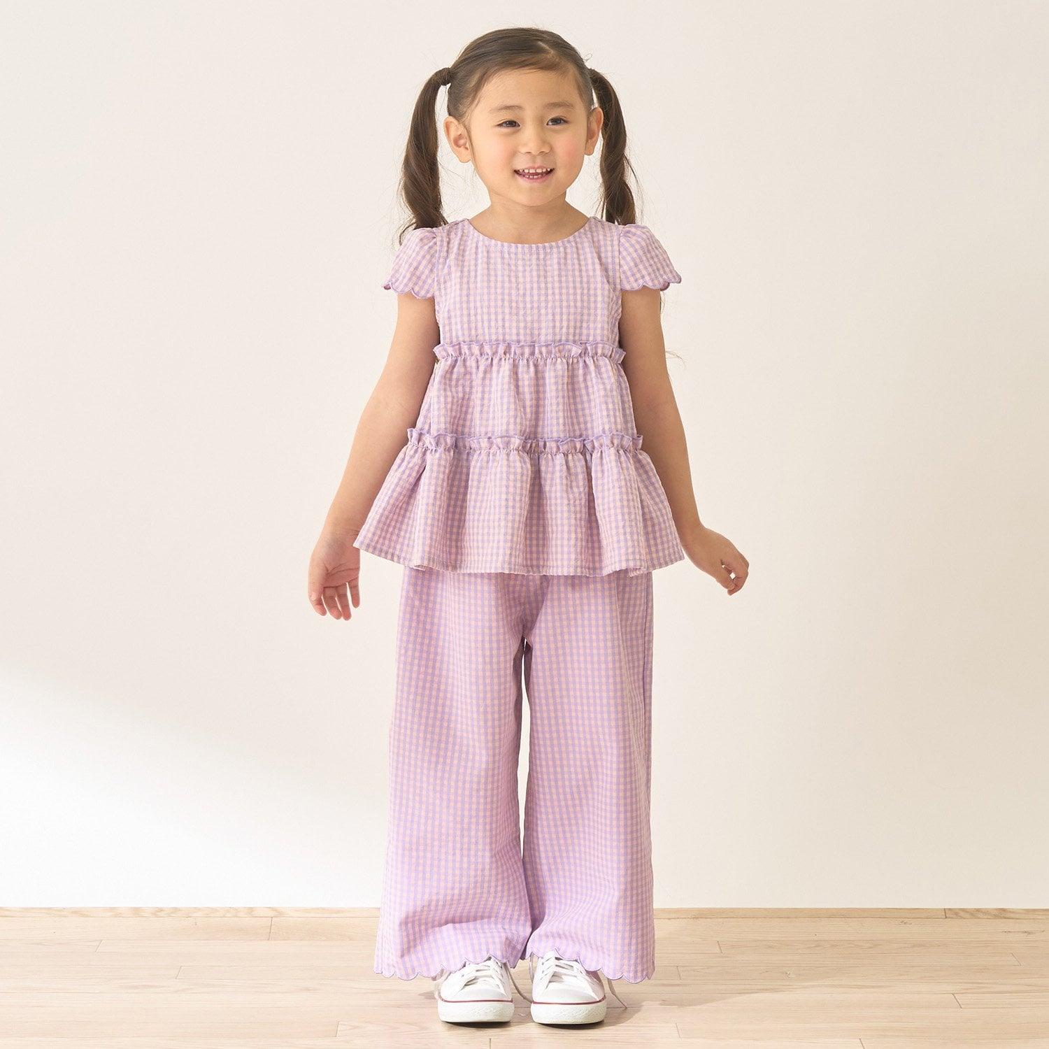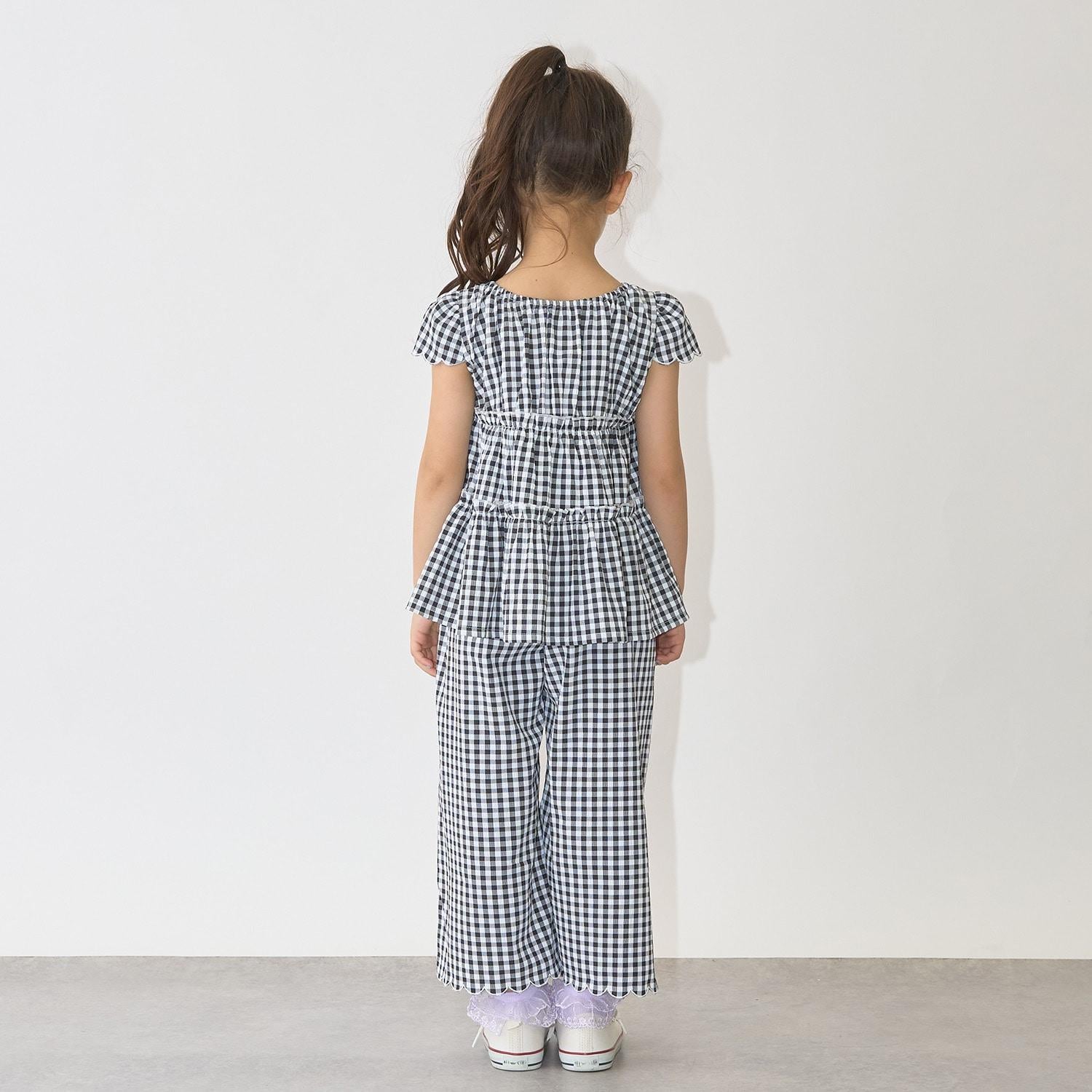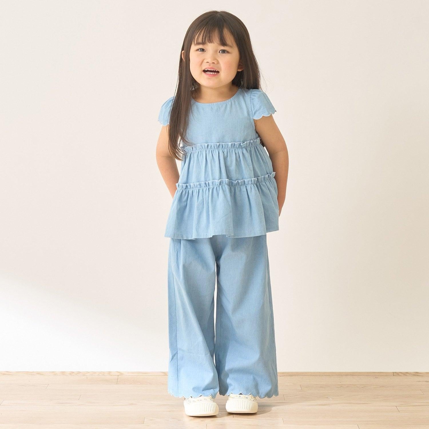 長褲採用可愛的扇形下襬,更顯優雅。