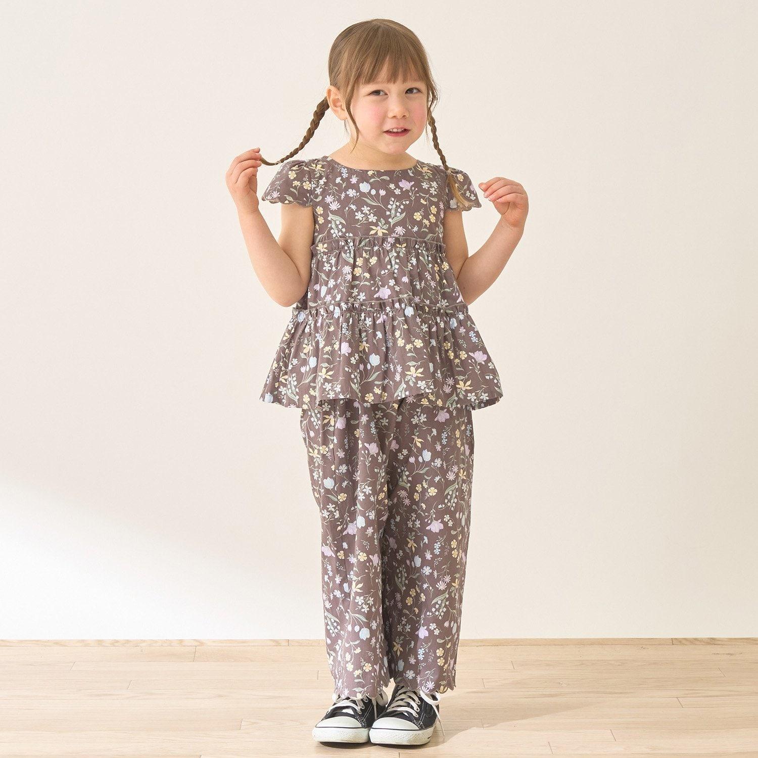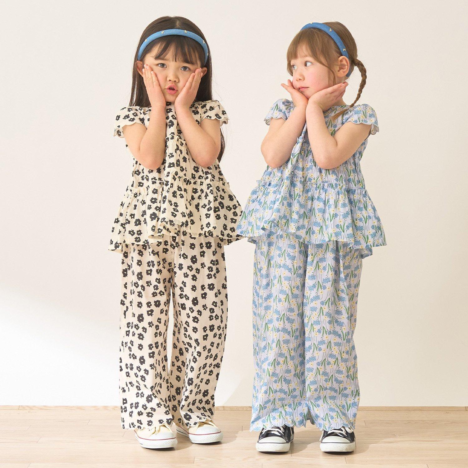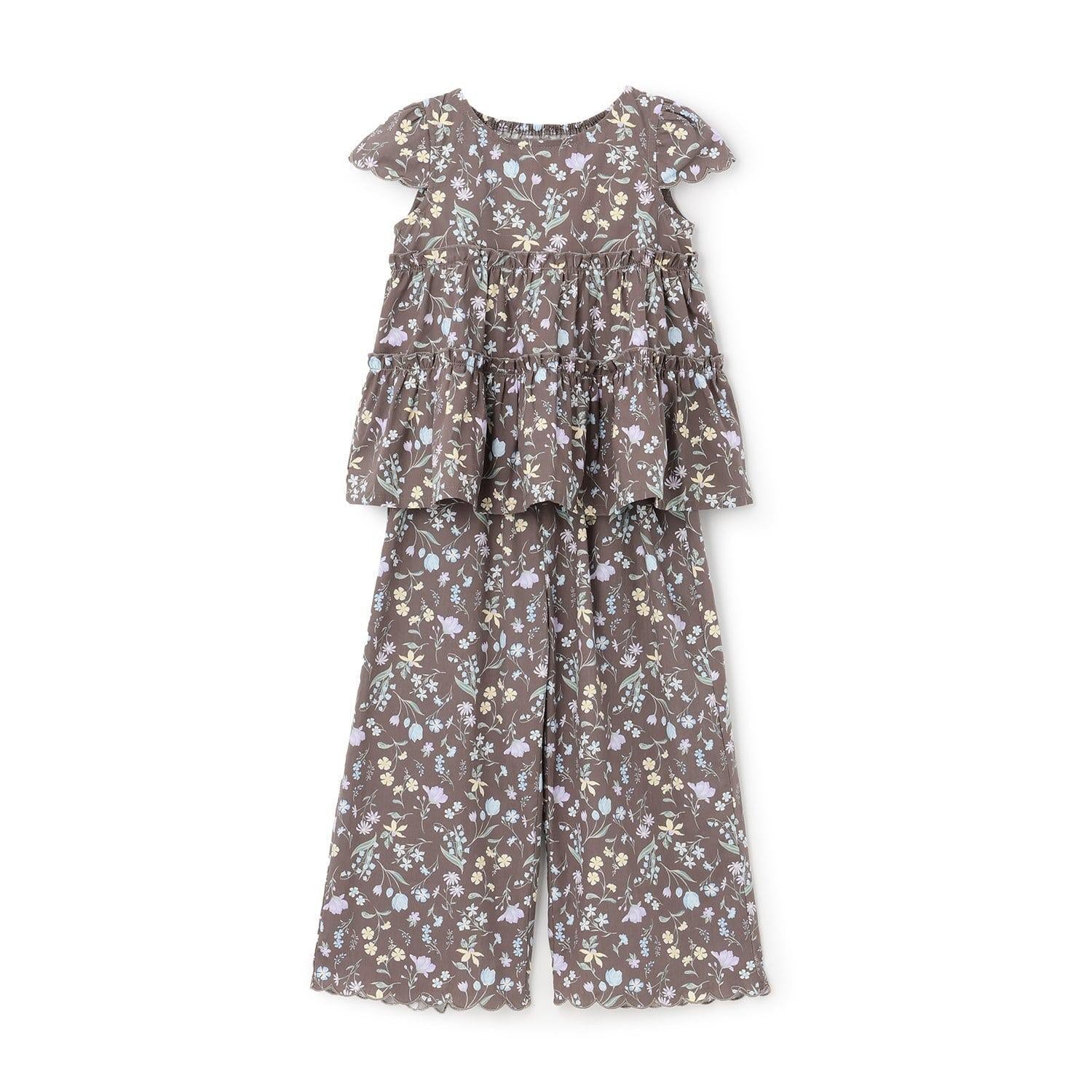 全面印花荷葉層疊上衣+波浪邊褲裝套裝