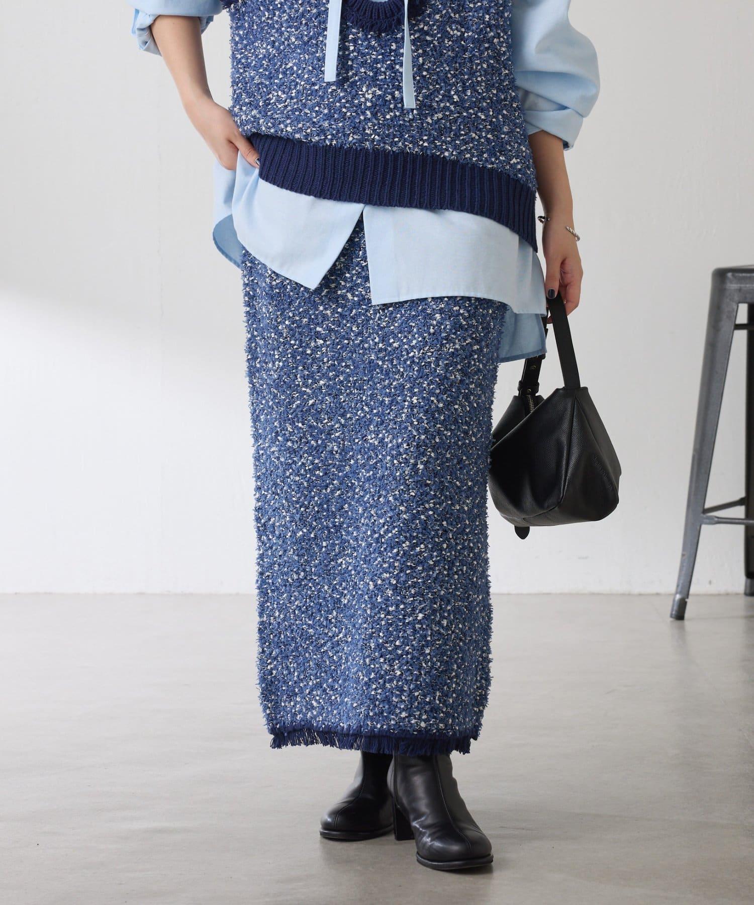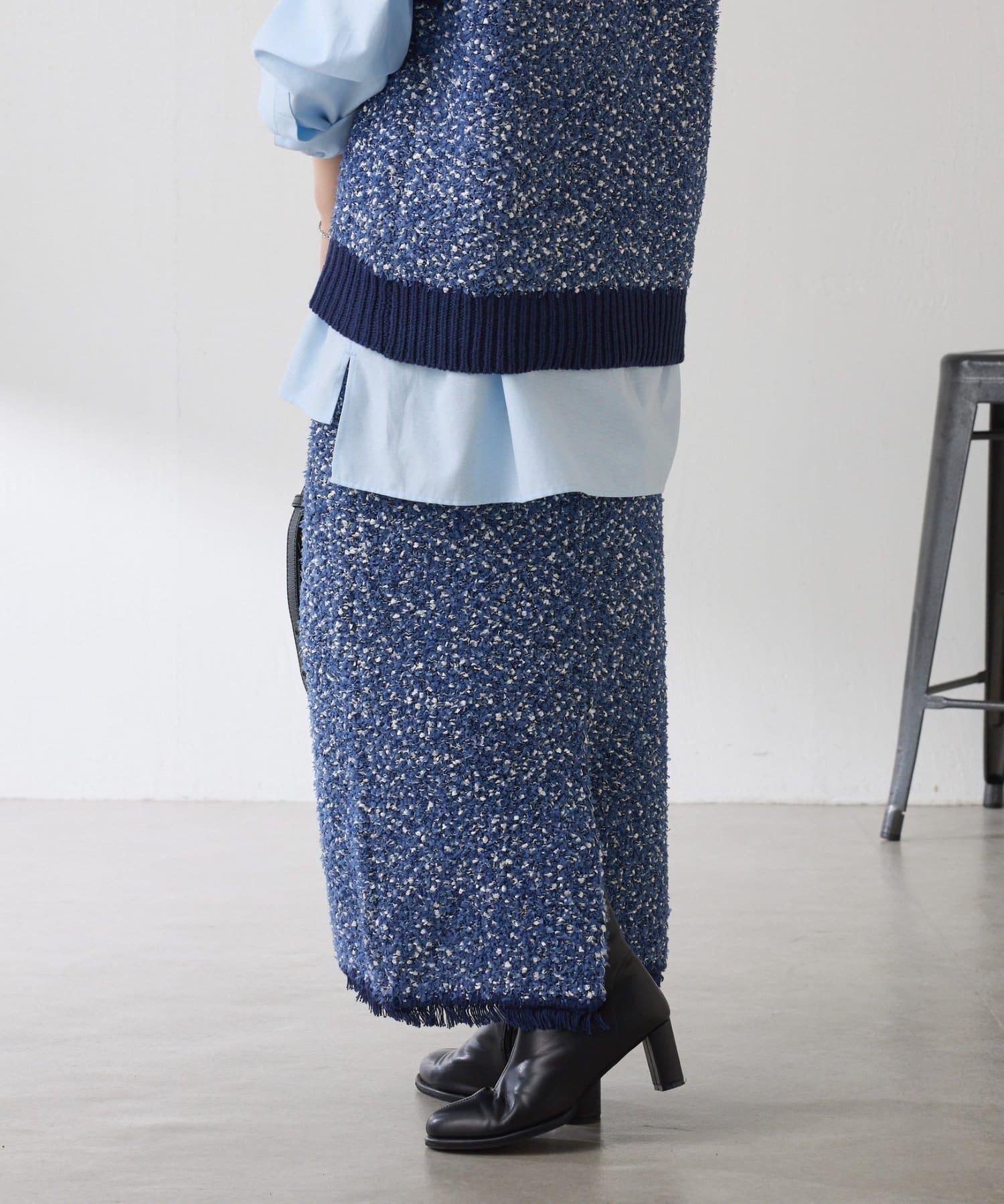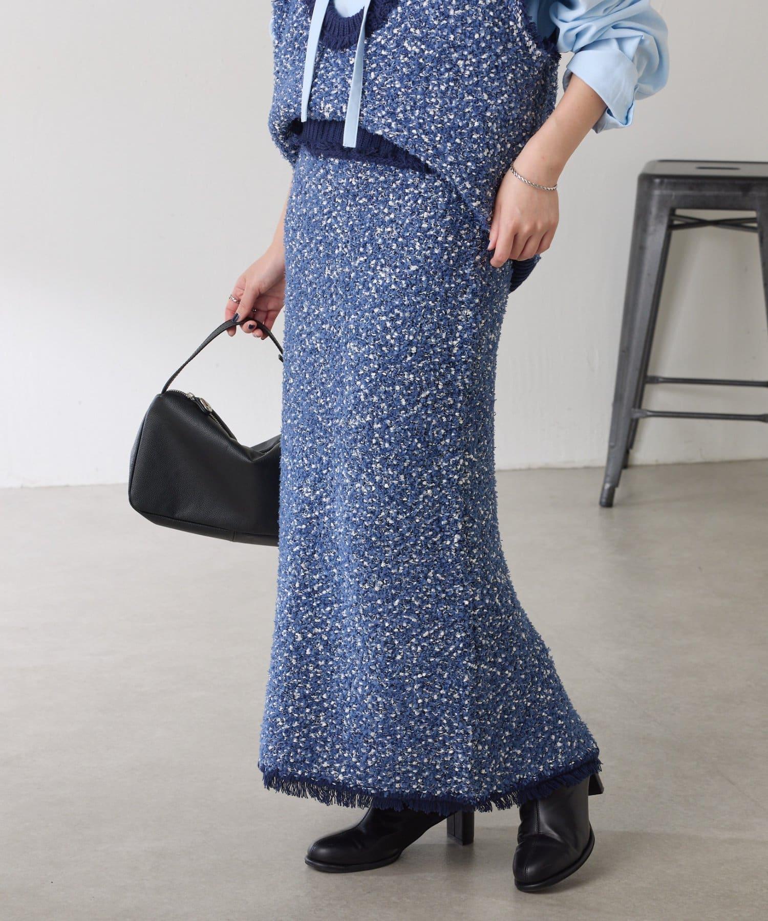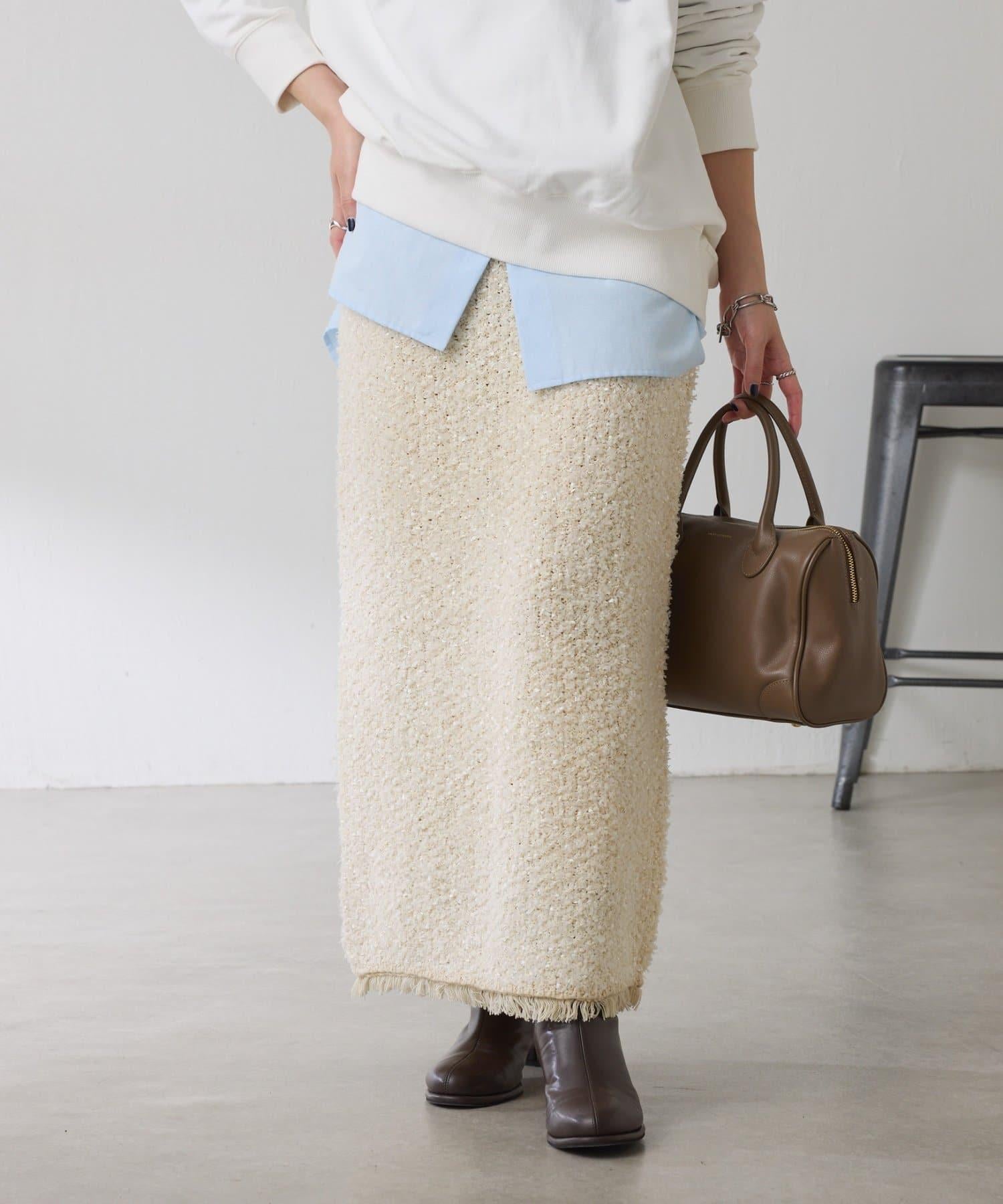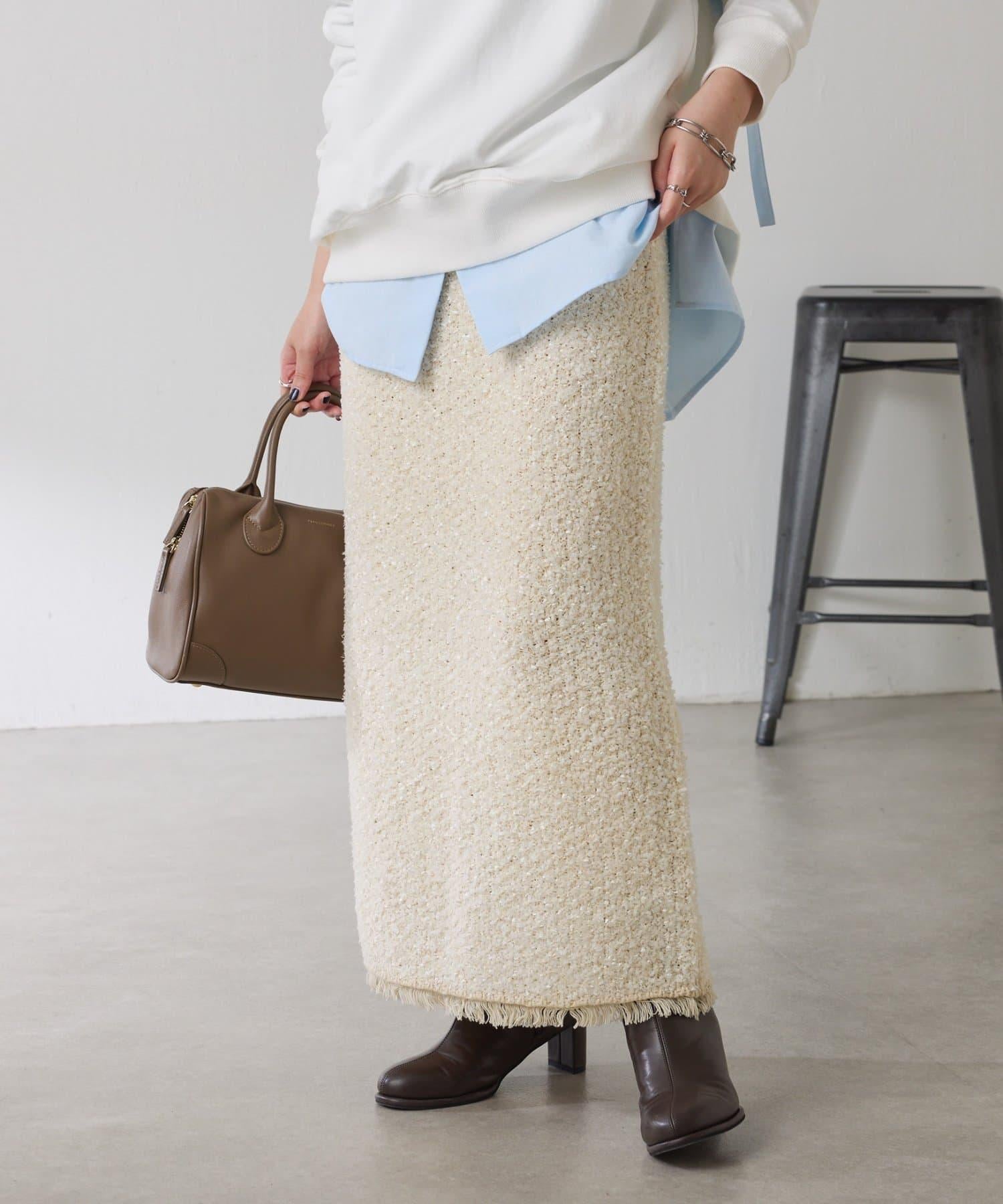 【全鬆緊腰】仿粗花呢針織半身裙/可成套搭配