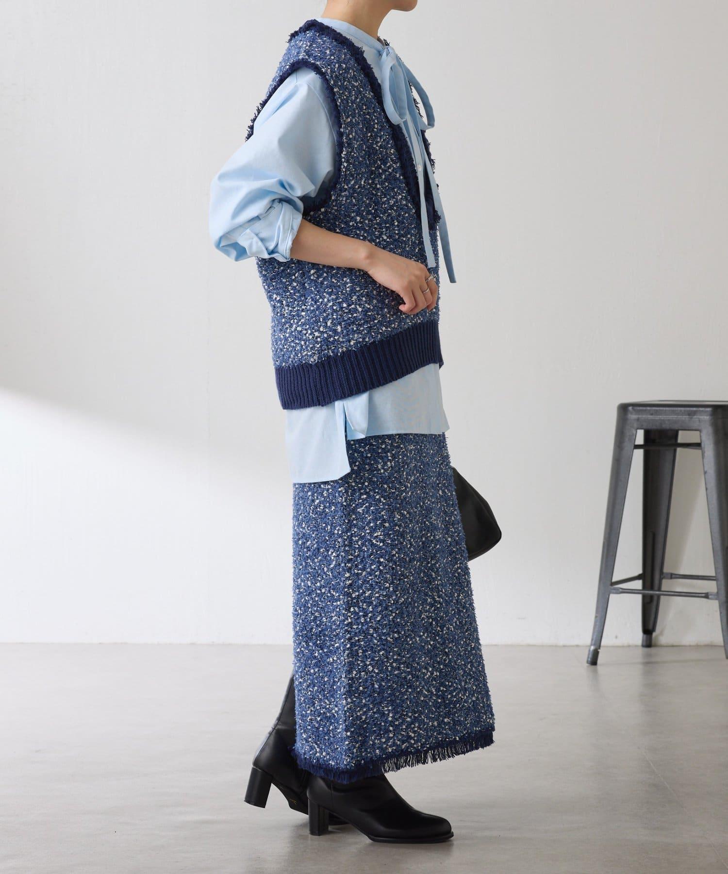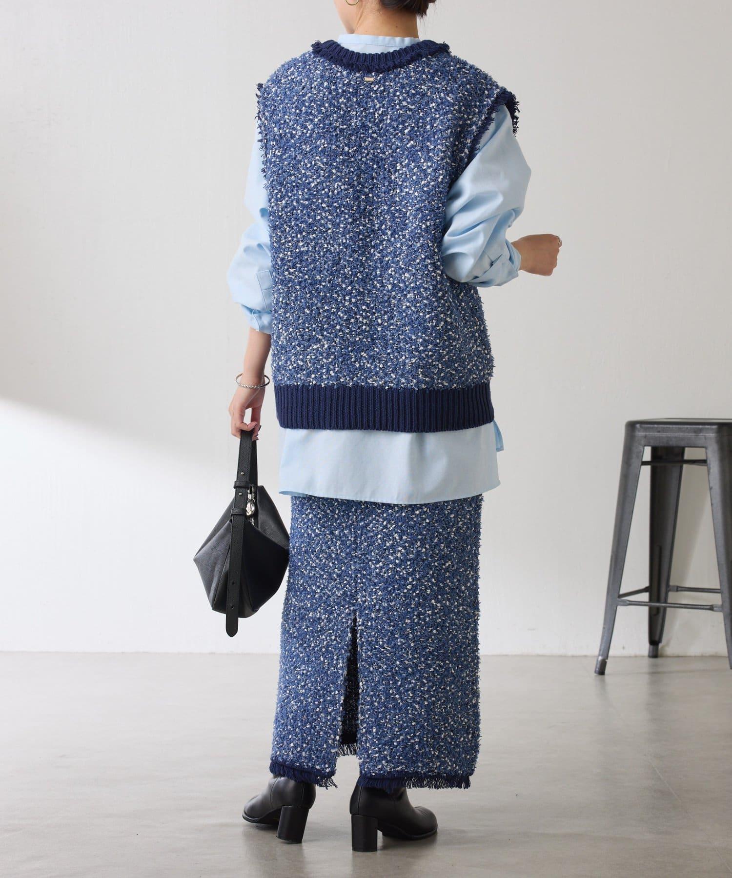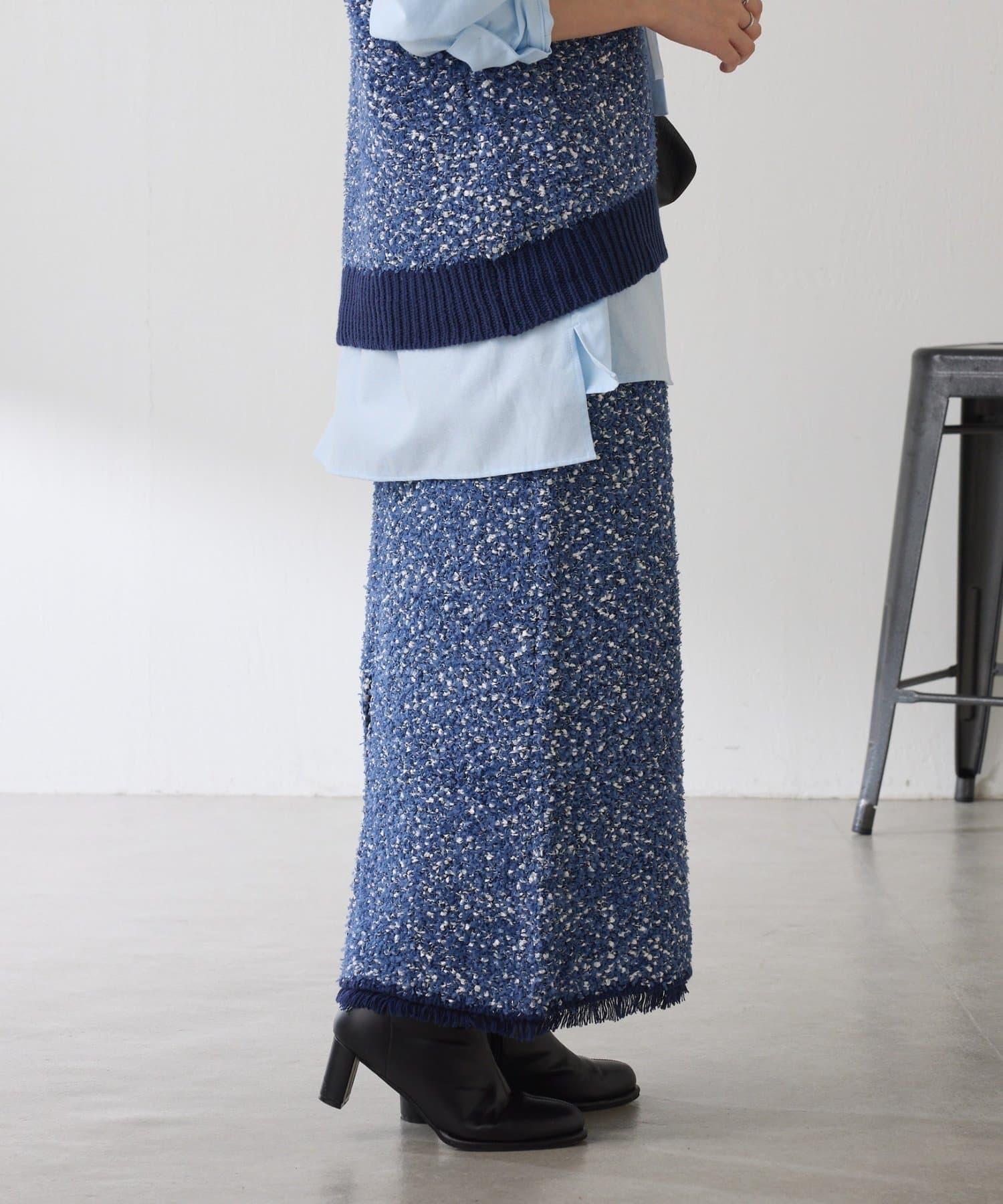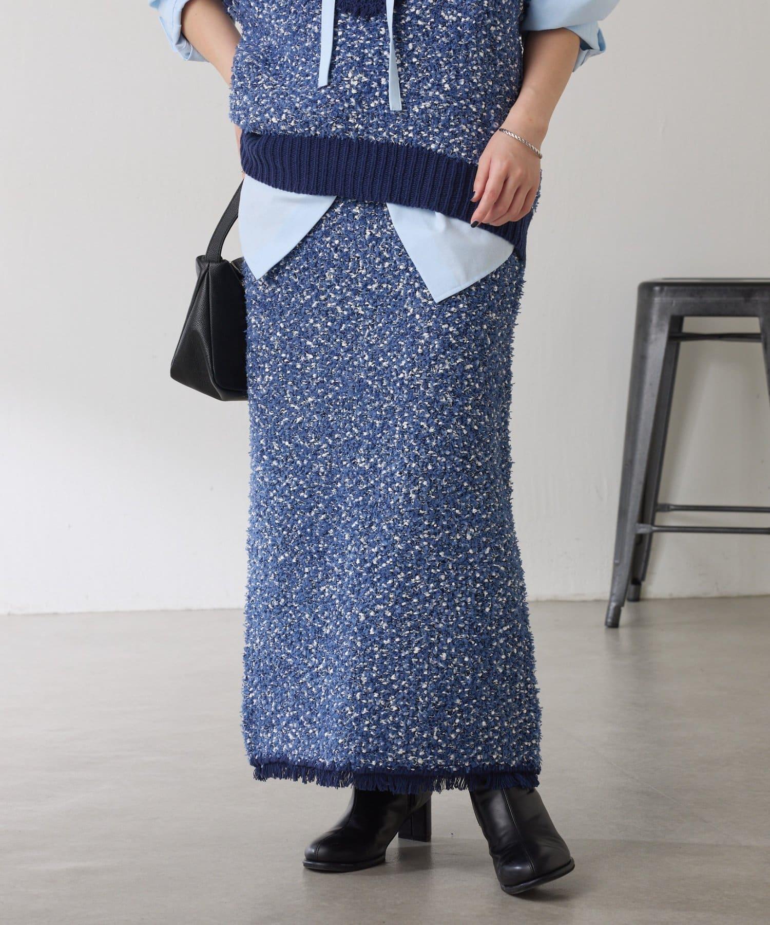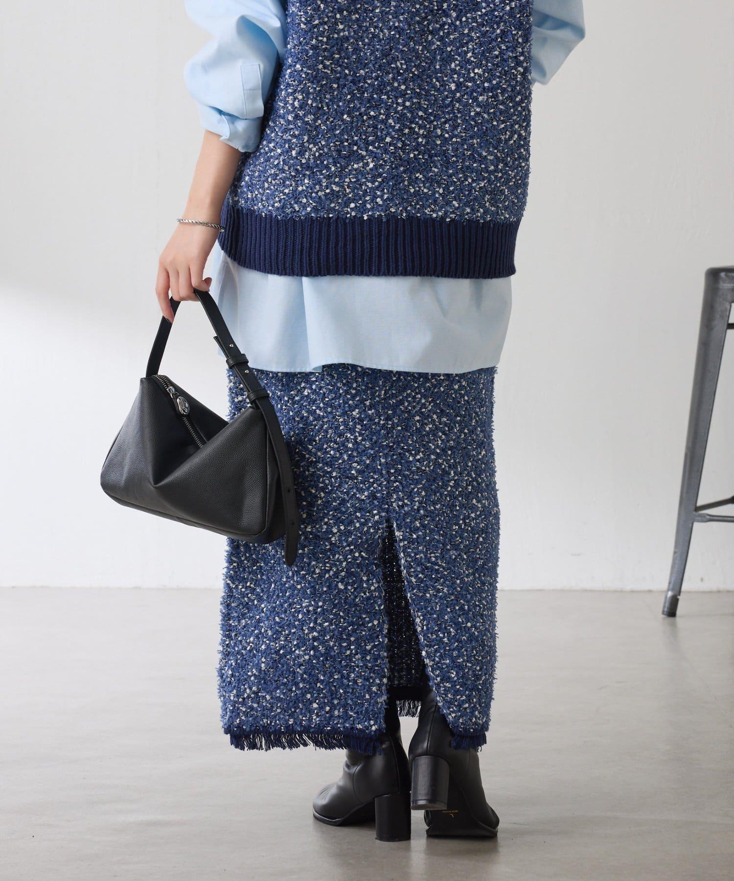 【全鬆緊腰】仿粗花呢針織半身裙/可成套搭配