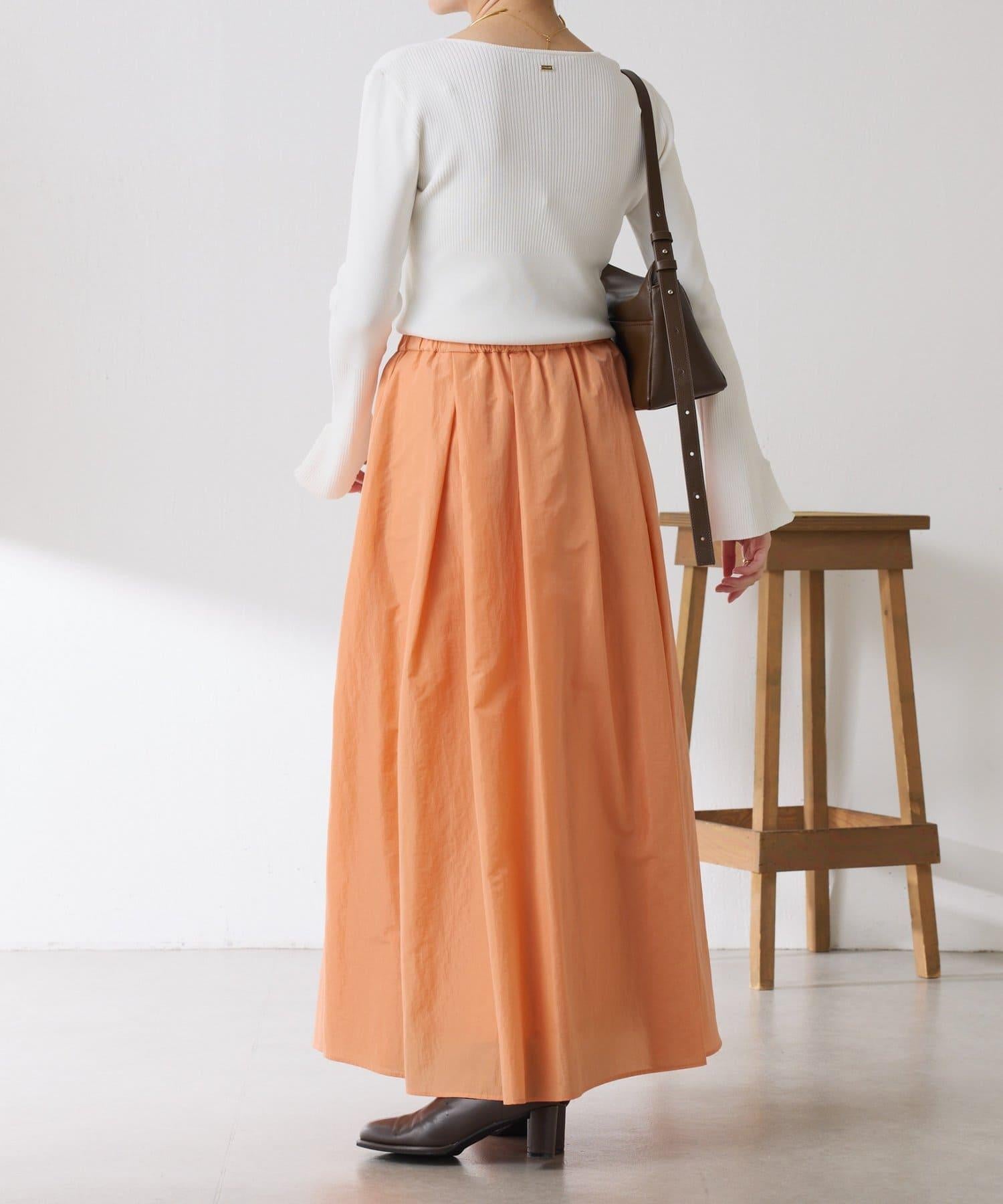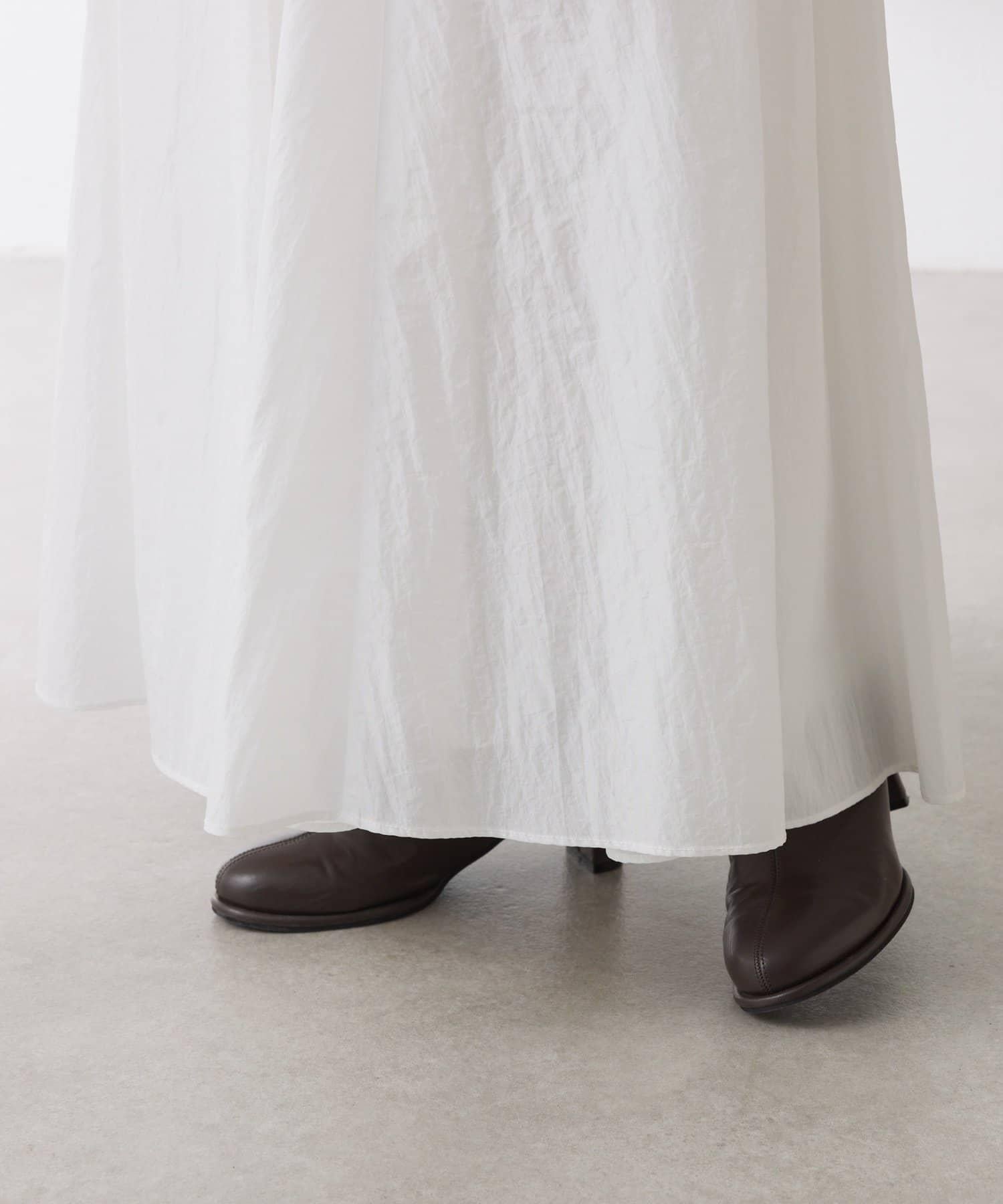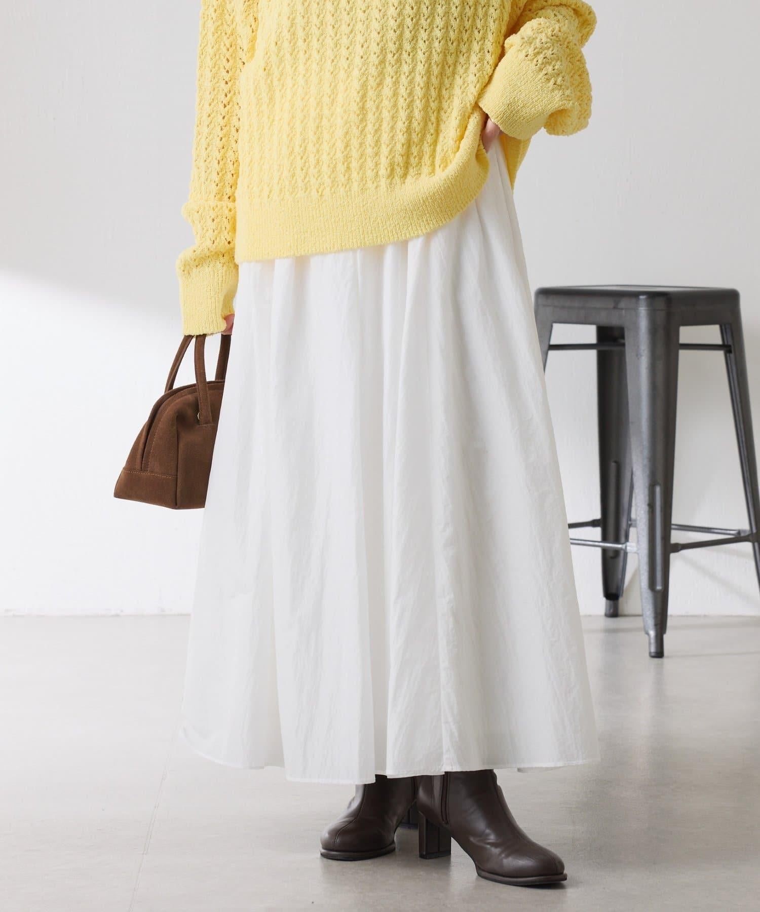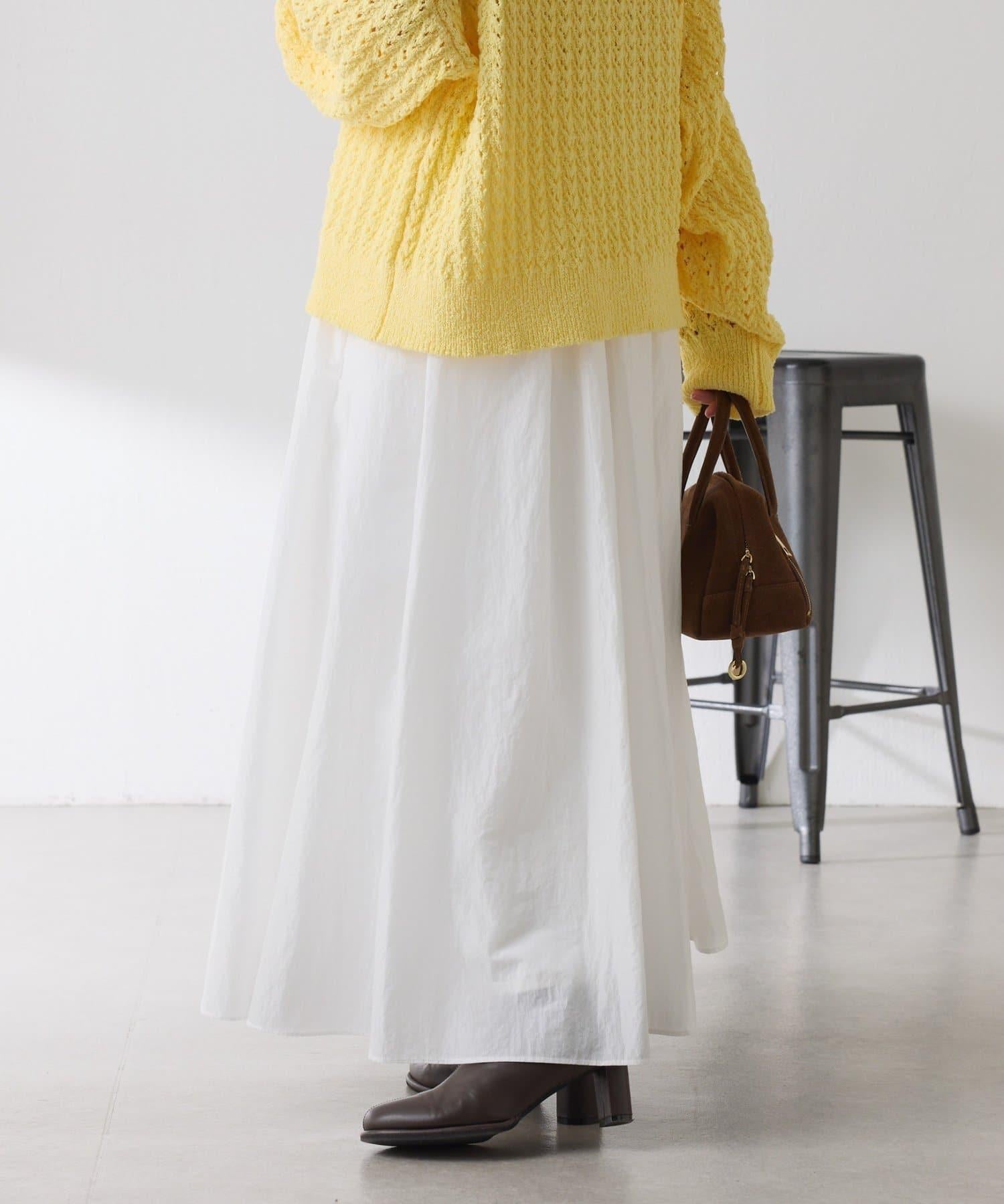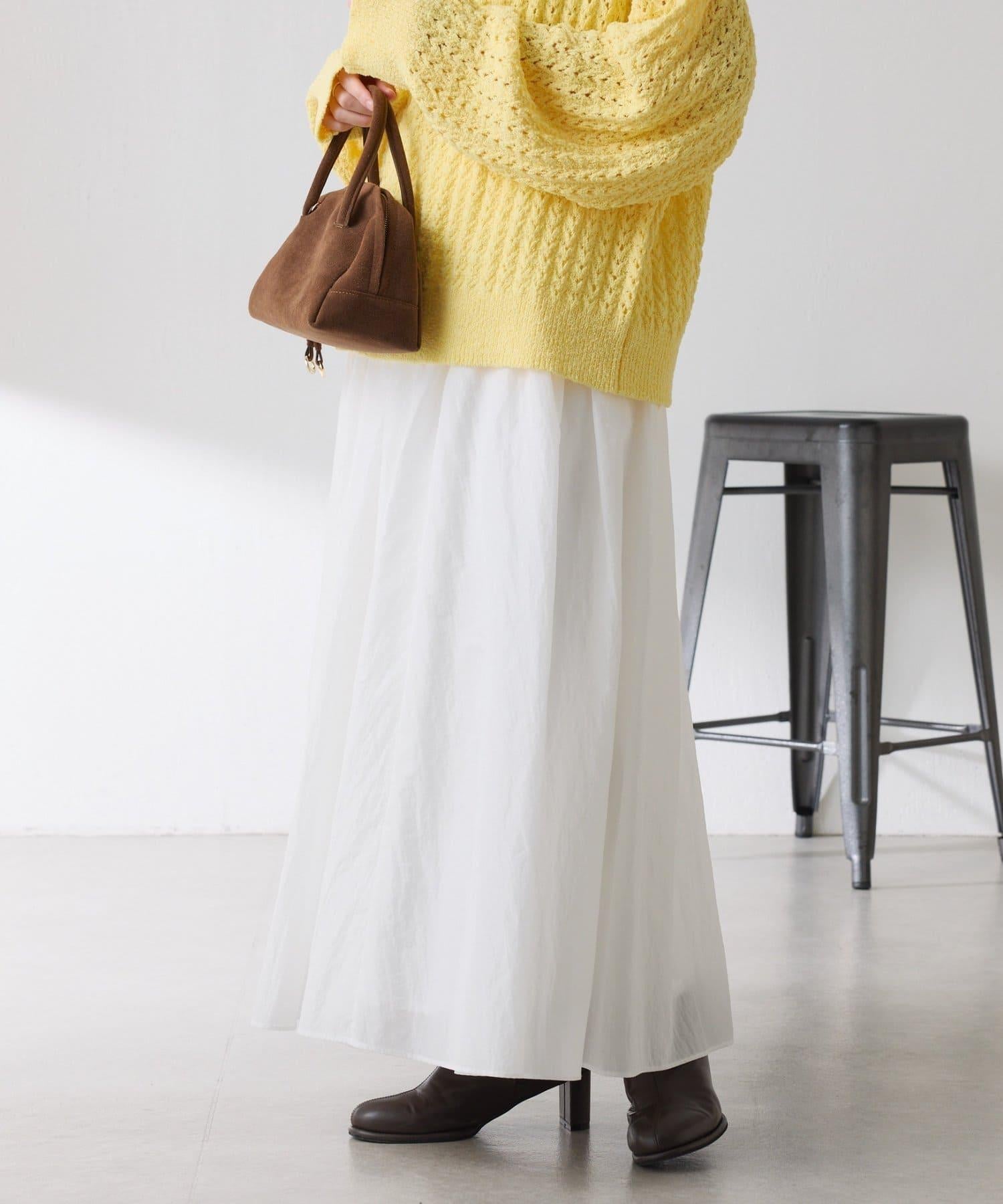 蓬鬆的裙襬閃耀著恰到好處的光澤,打造出輕鬆的造型。