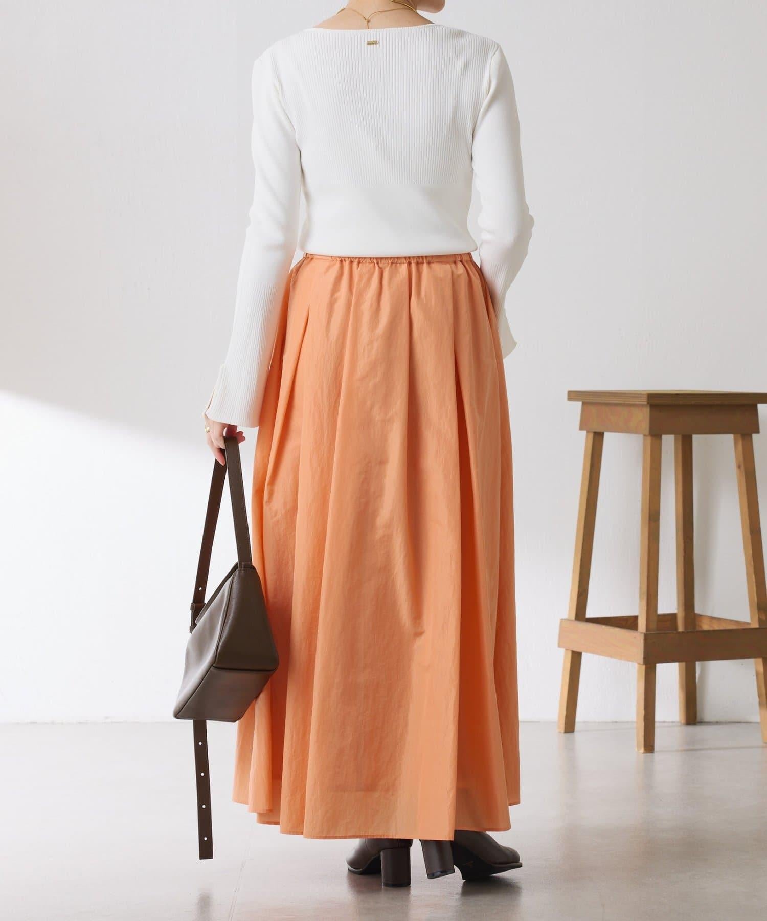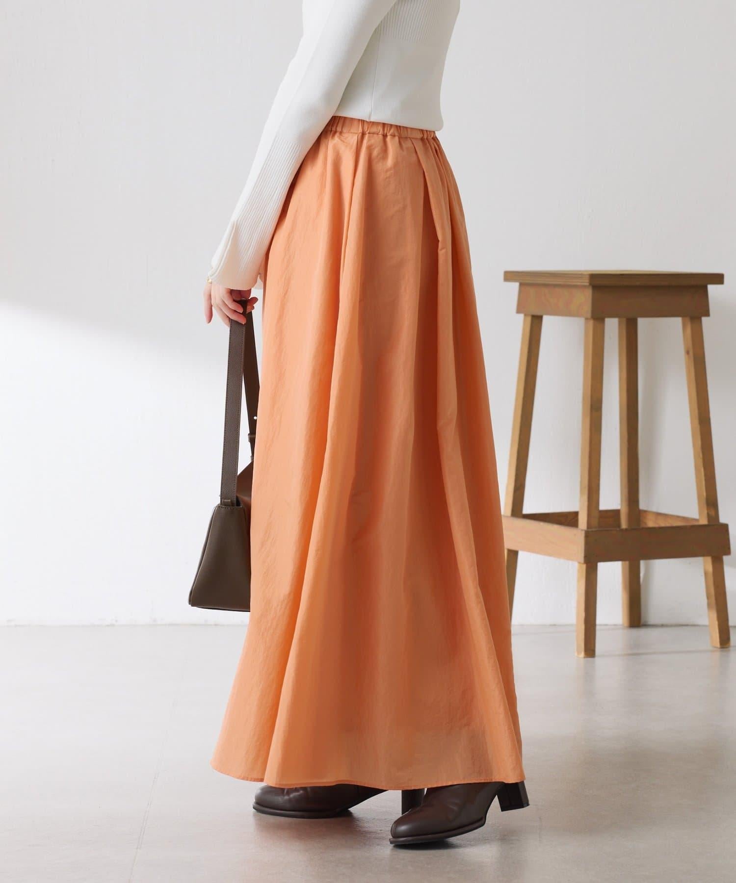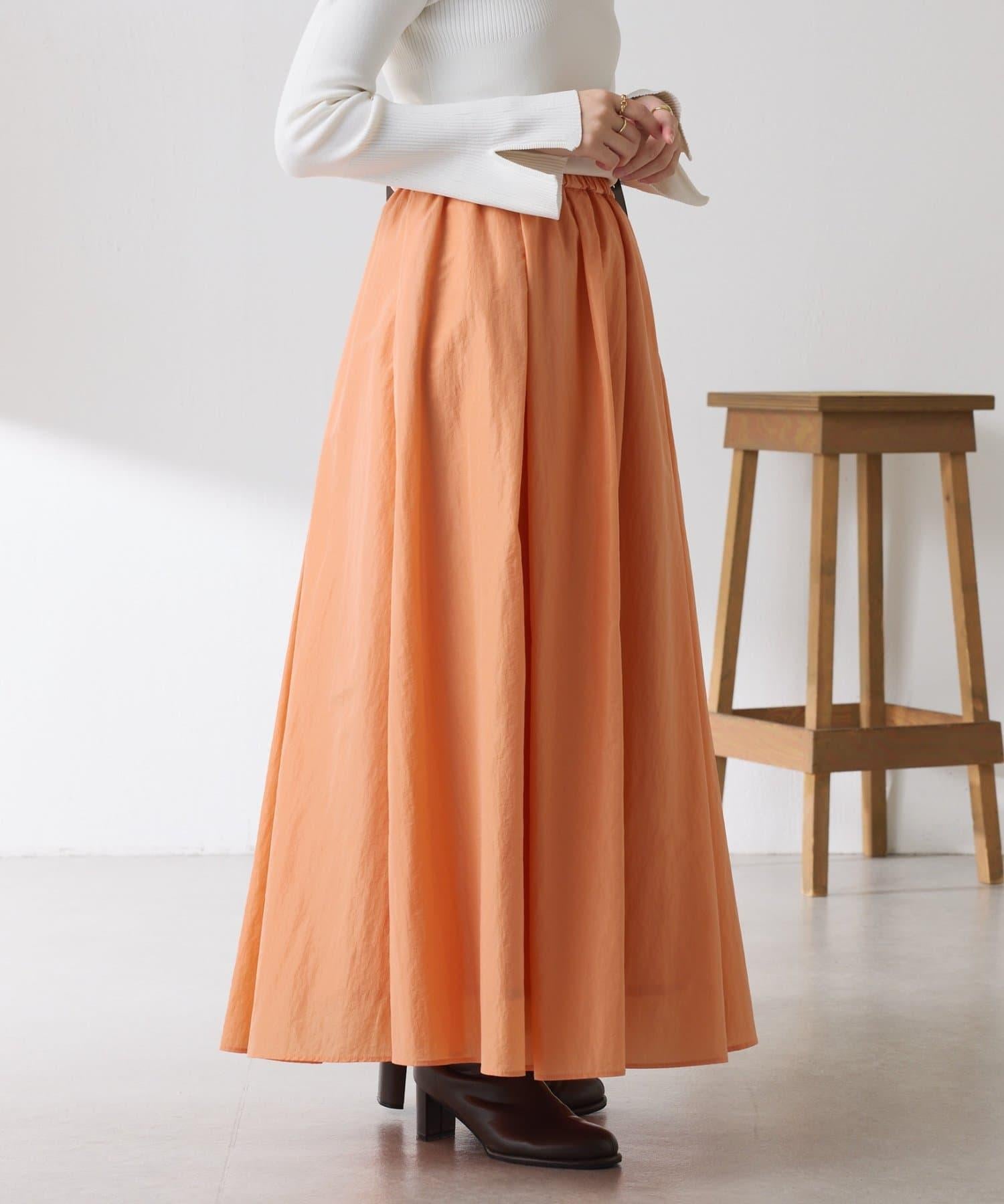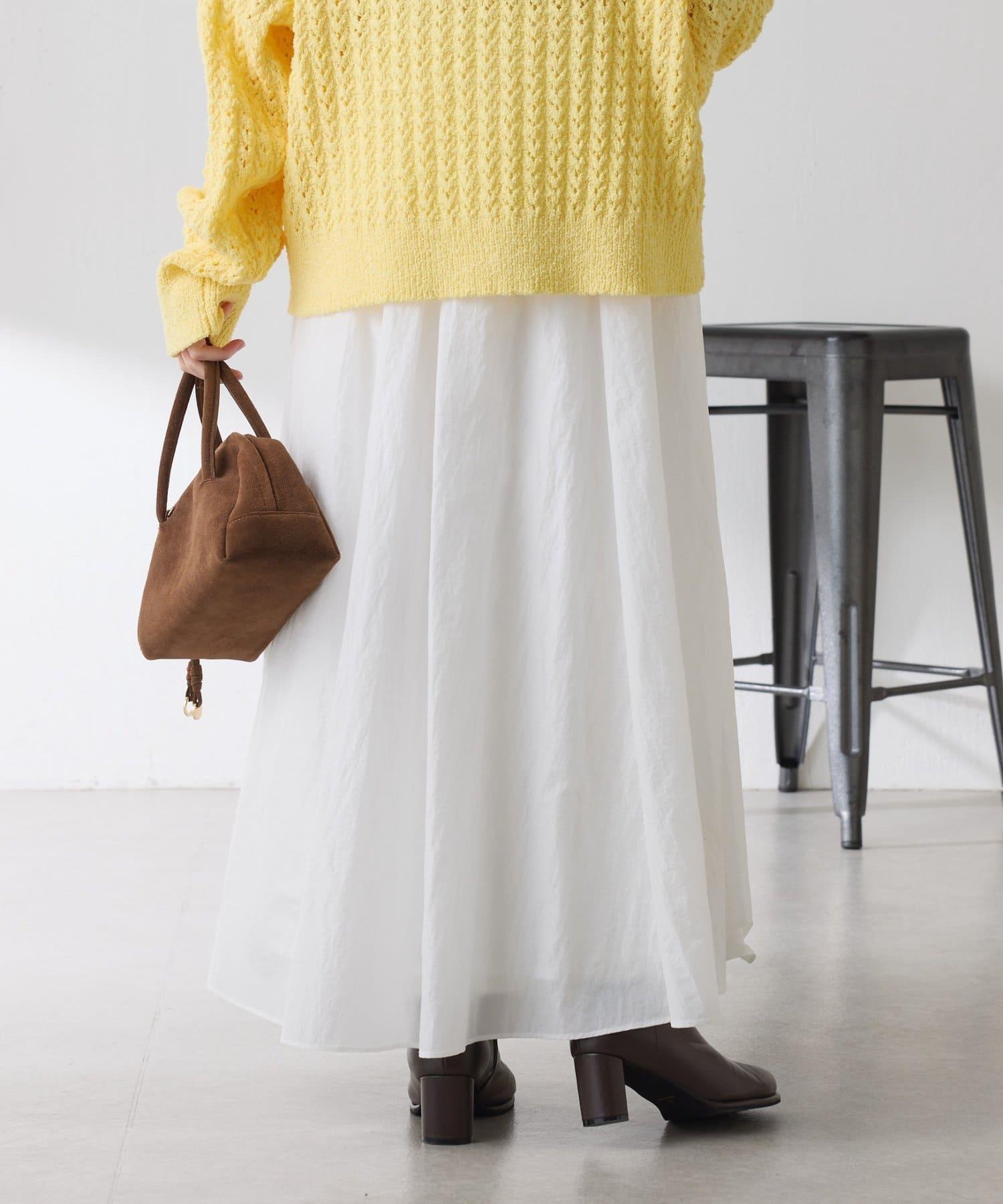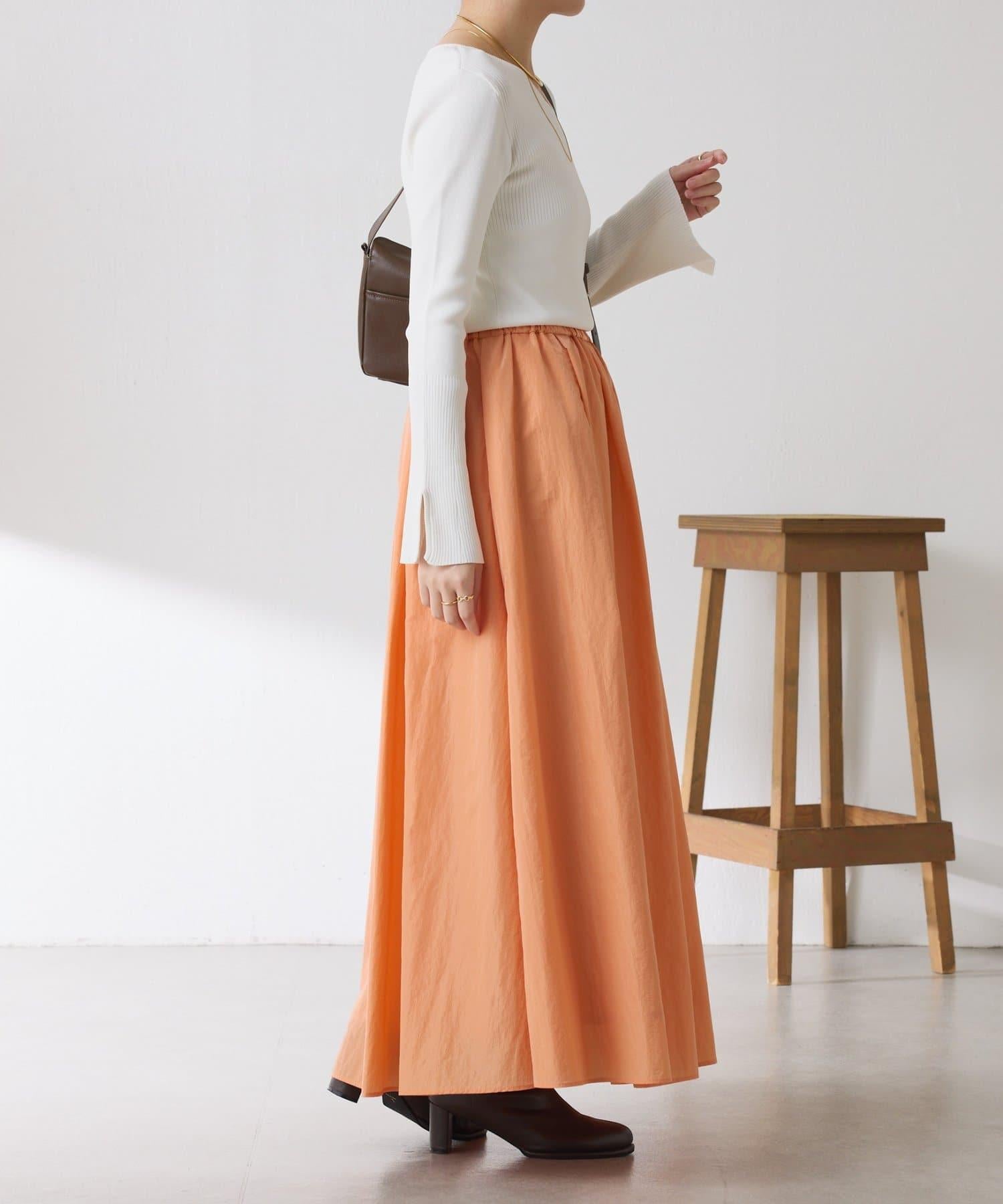 蓬鬆的裙襬閃耀著恰到好處的光澤,打造出輕鬆的造型。