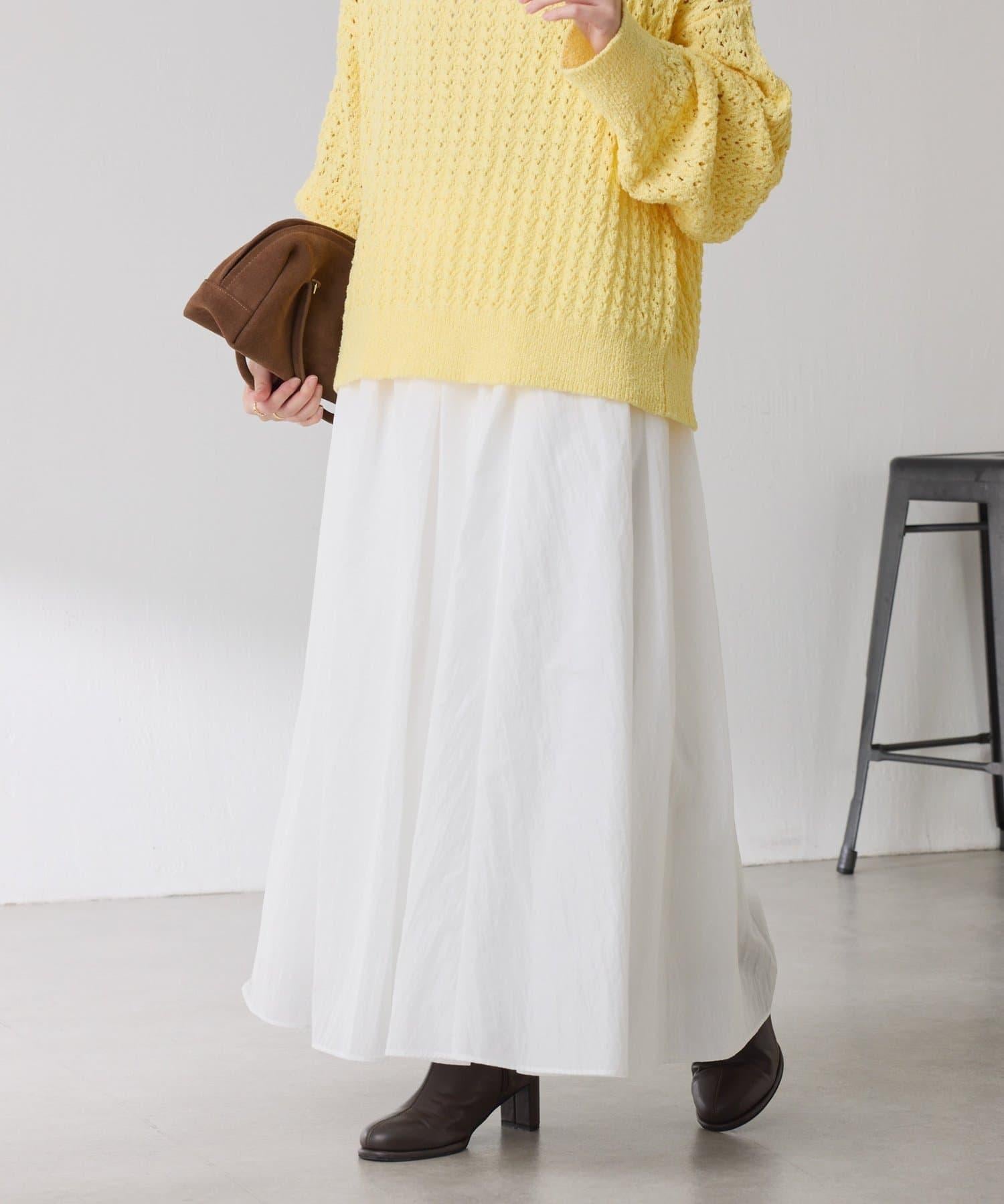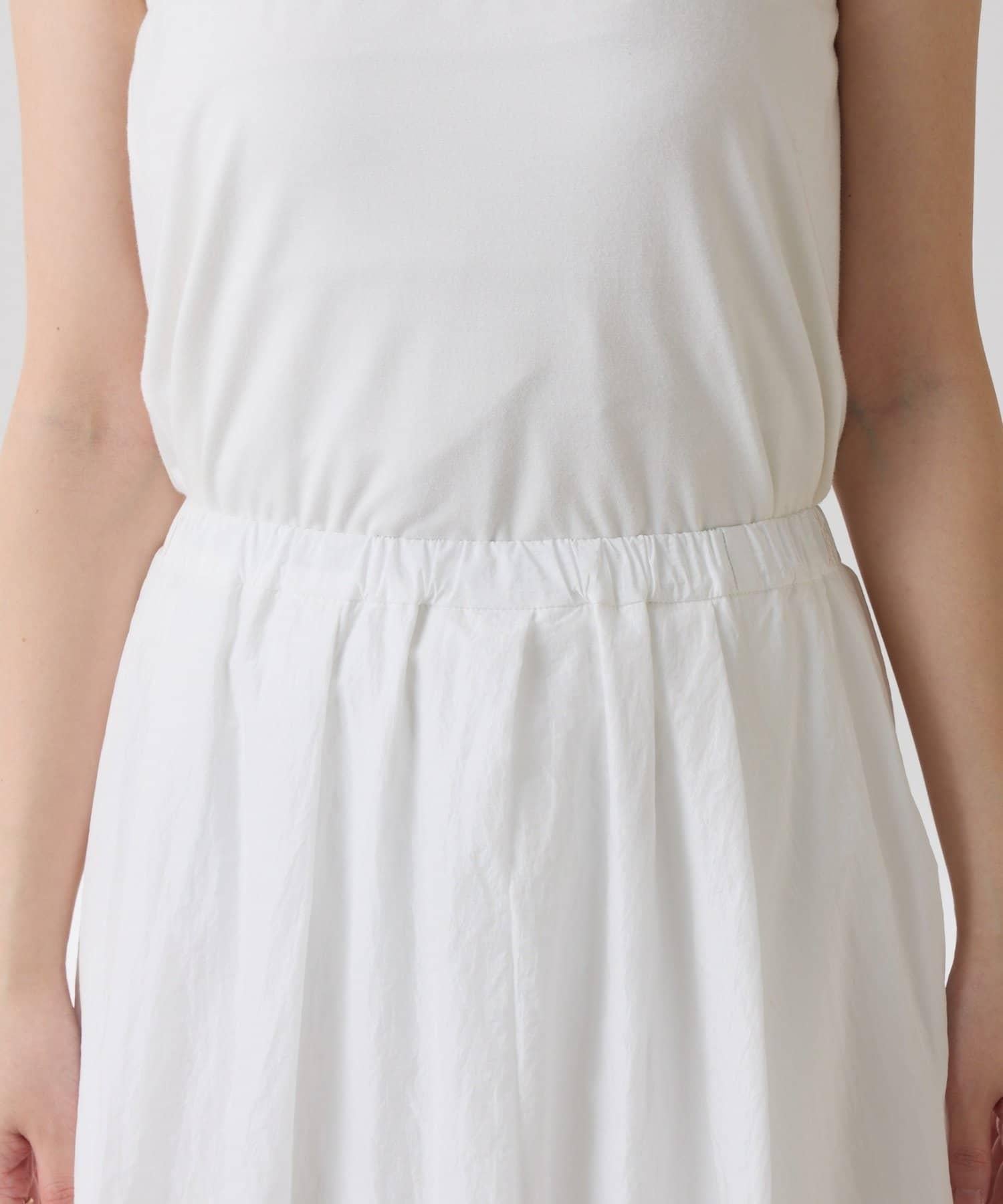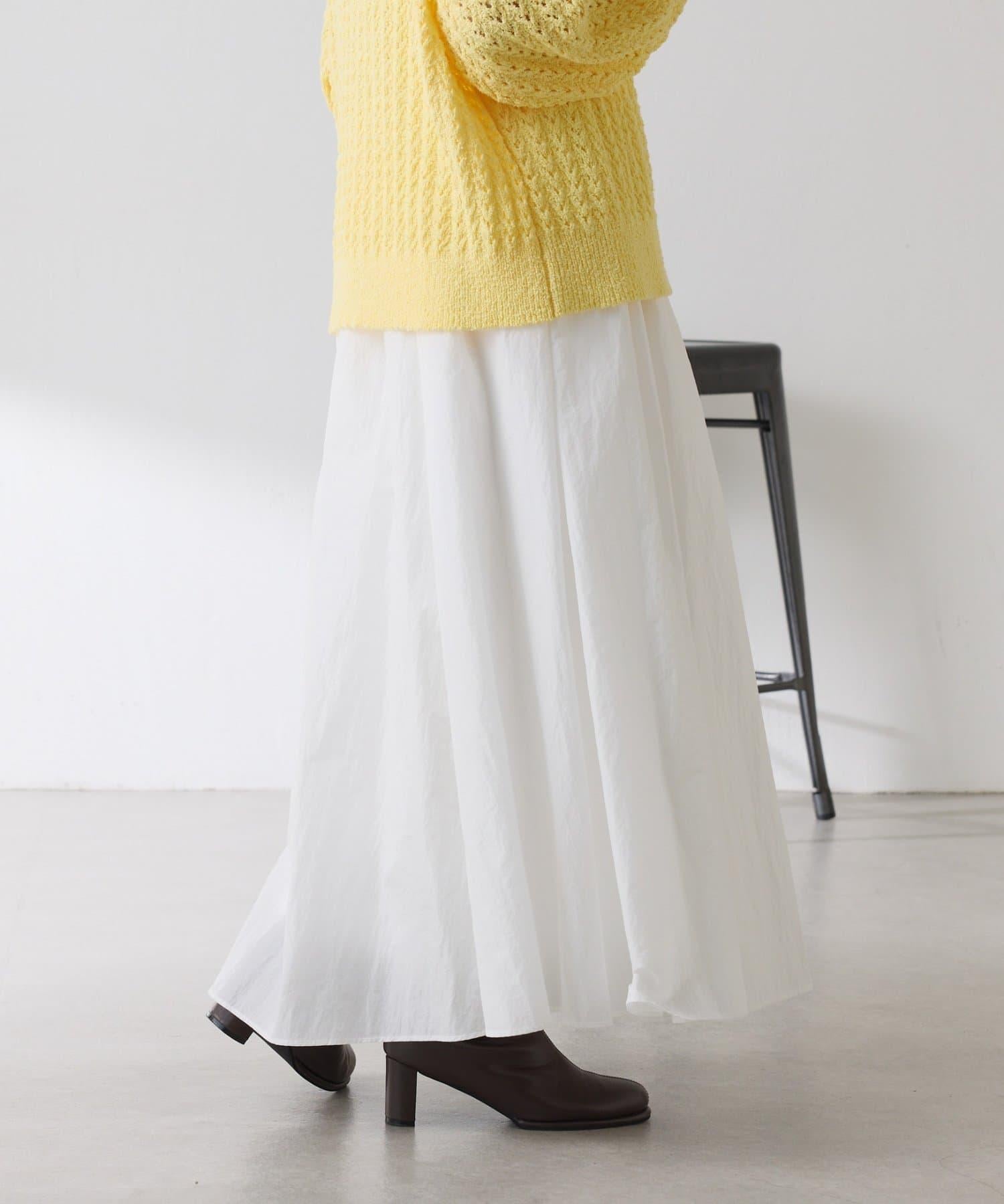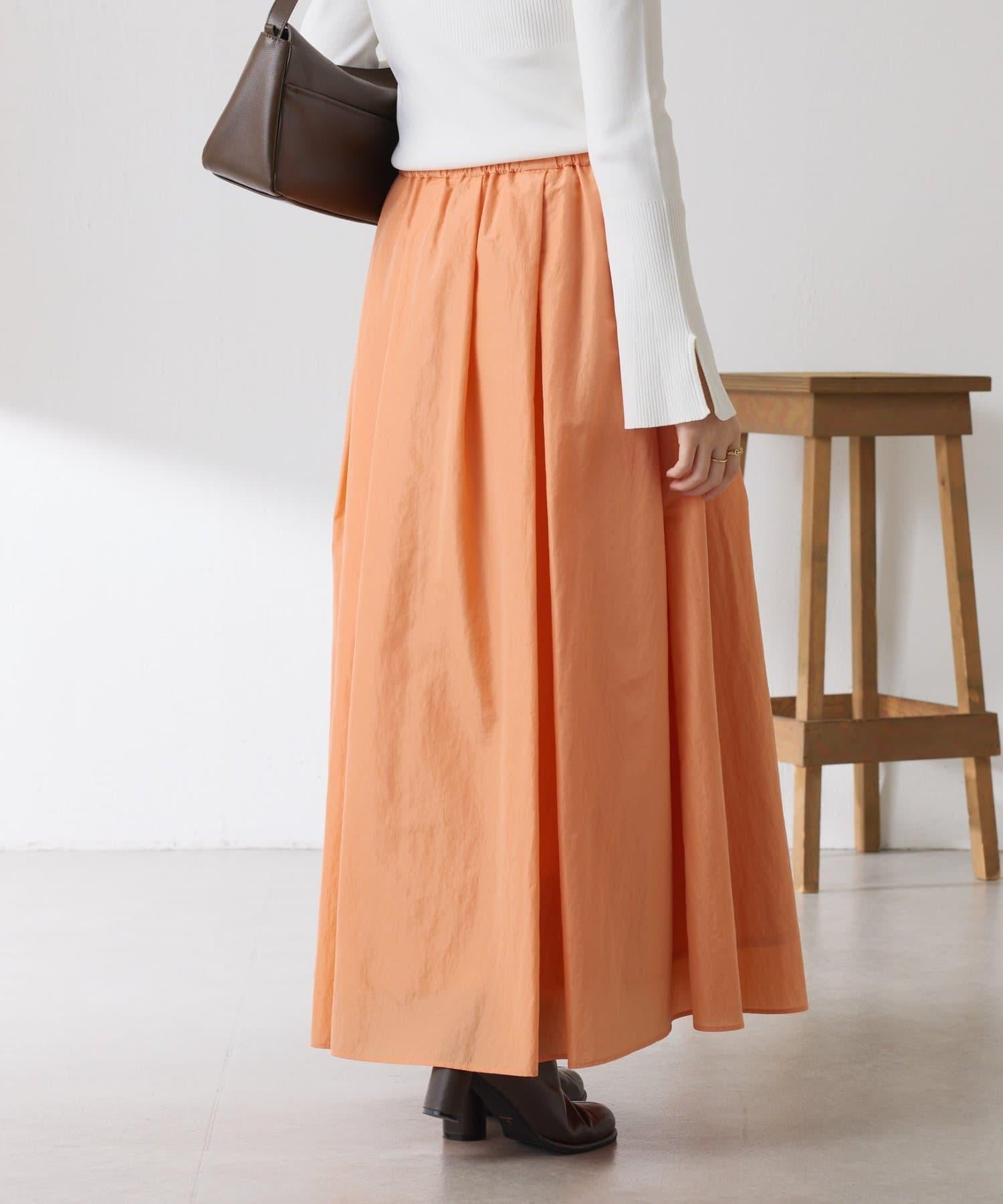 蓬鬆的裙襬閃耀著恰到好處的光澤,打造出輕鬆的造型。