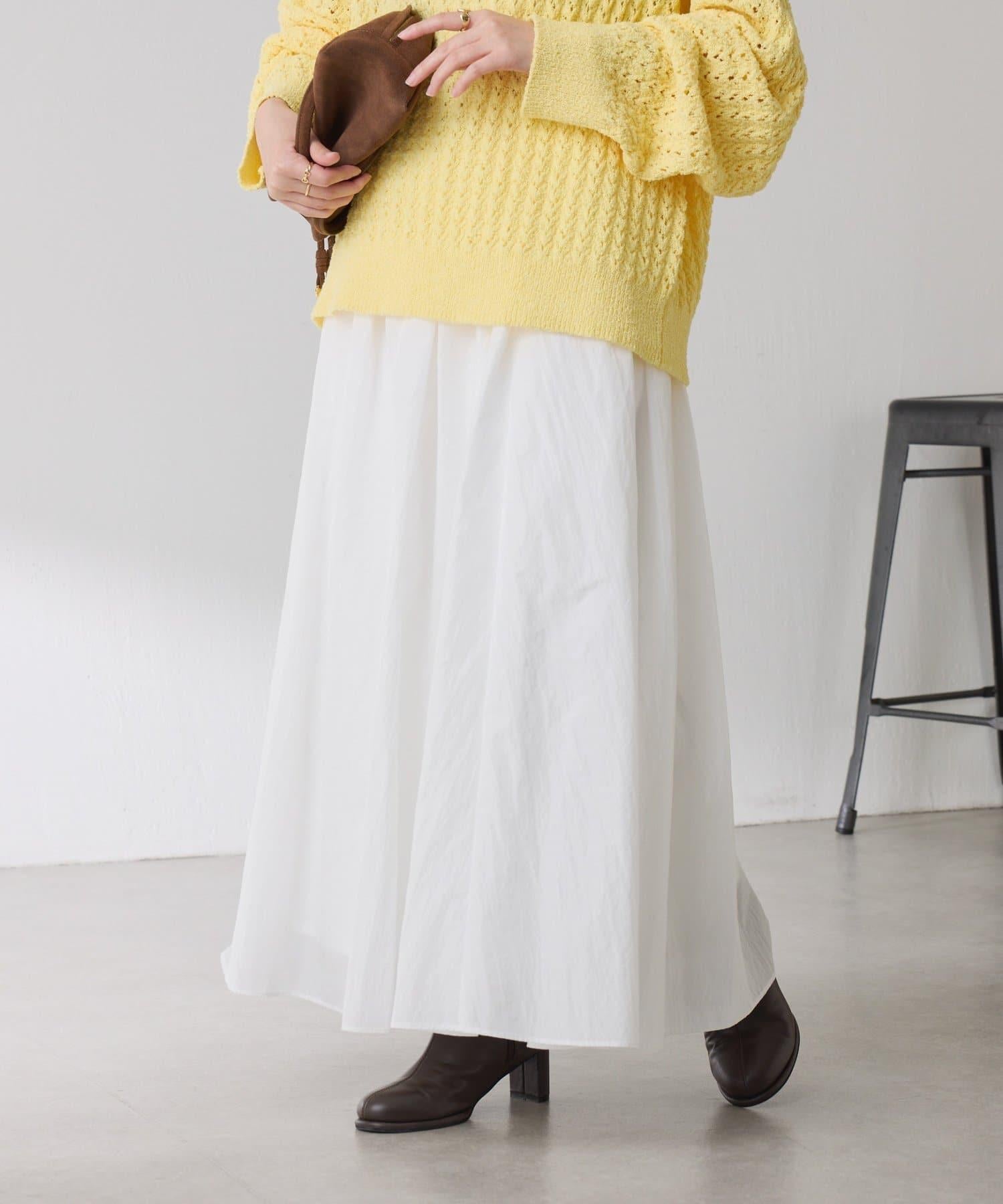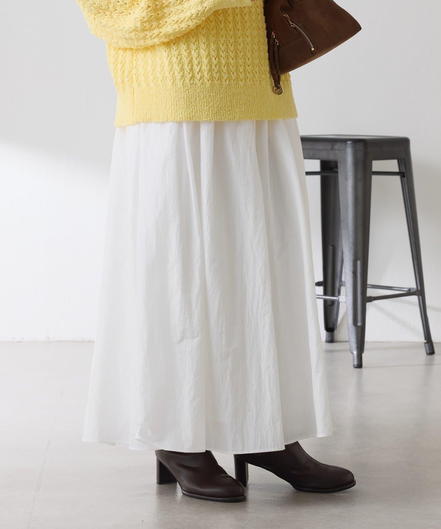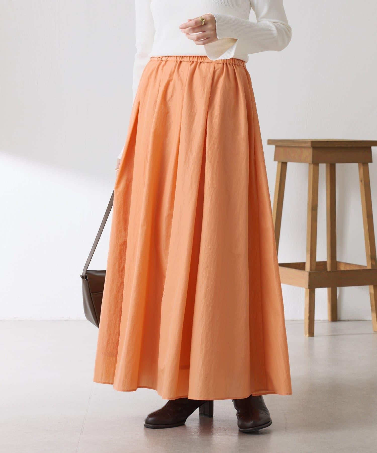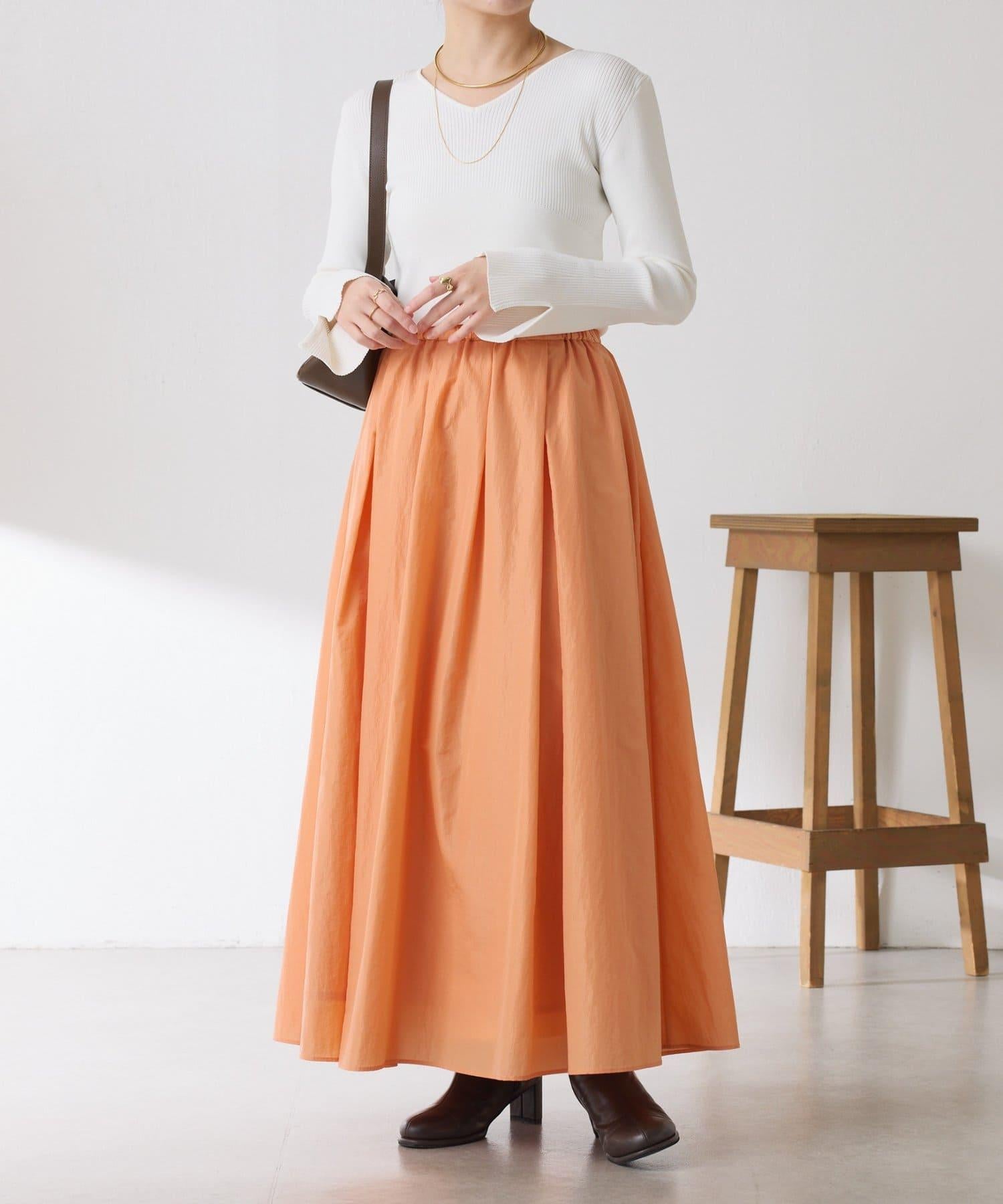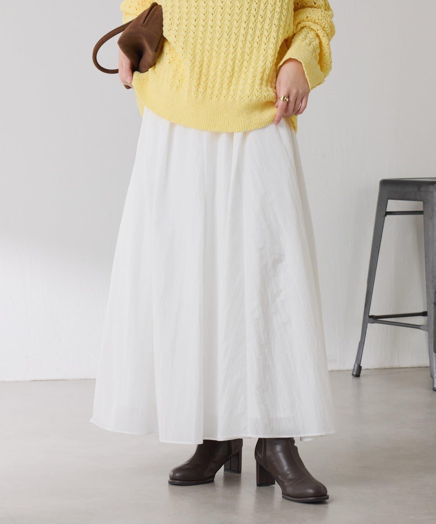 蓬鬆的裙襬閃耀著恰到好處的光澤,打造出輕鬆的造型。