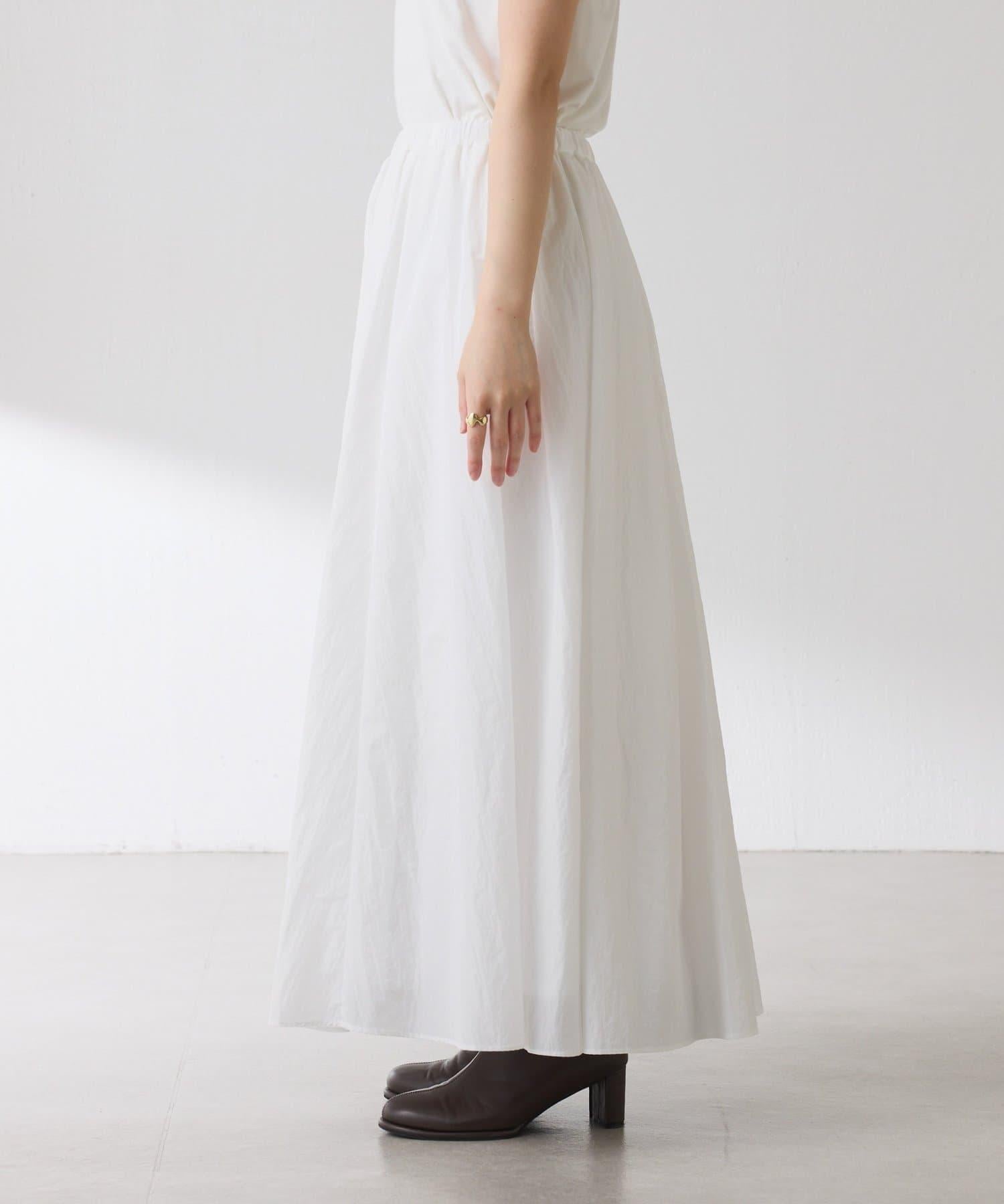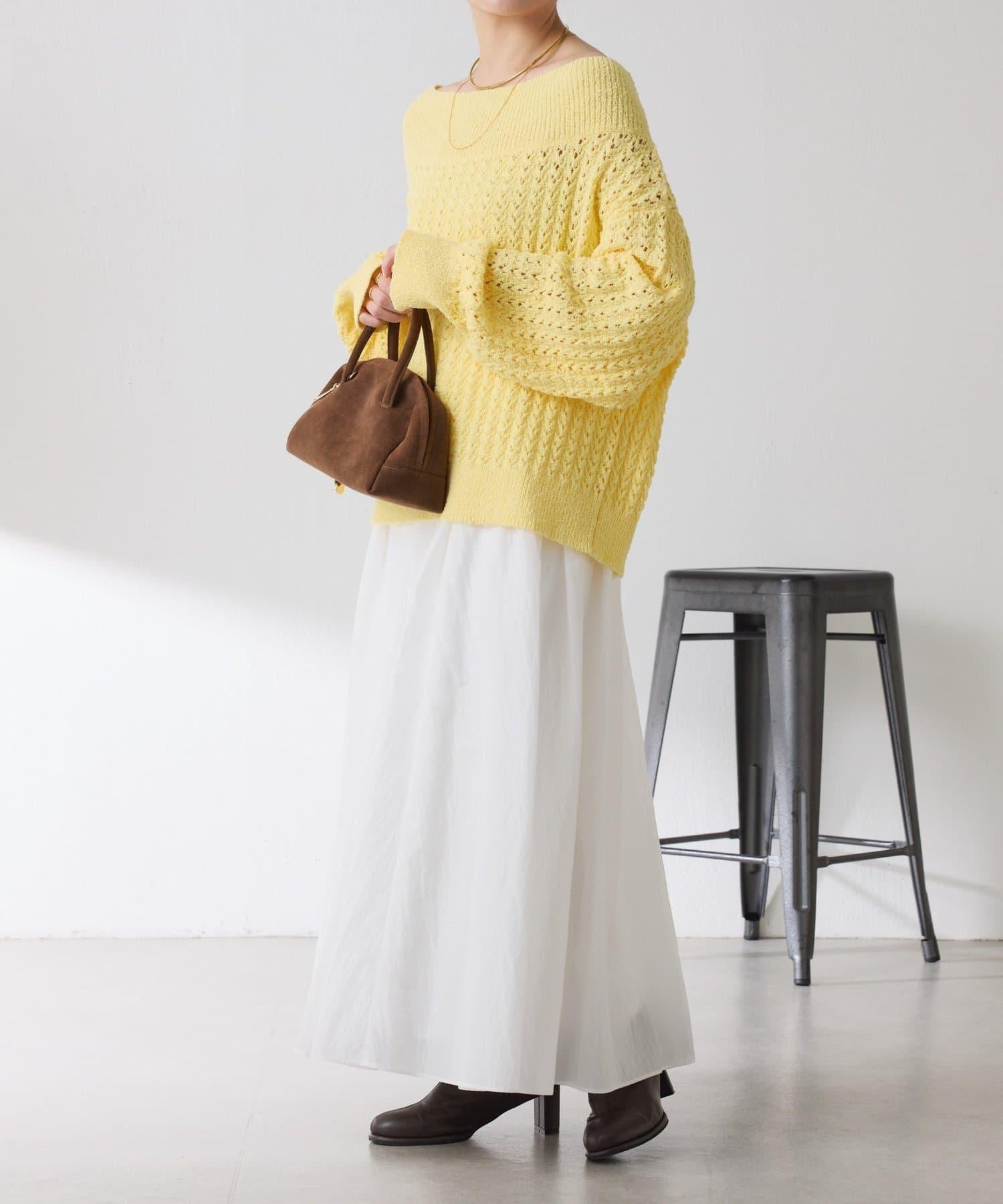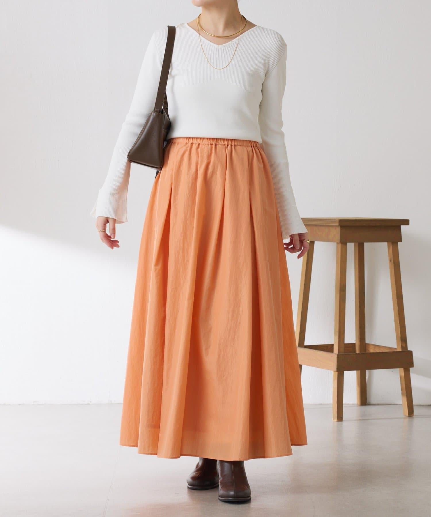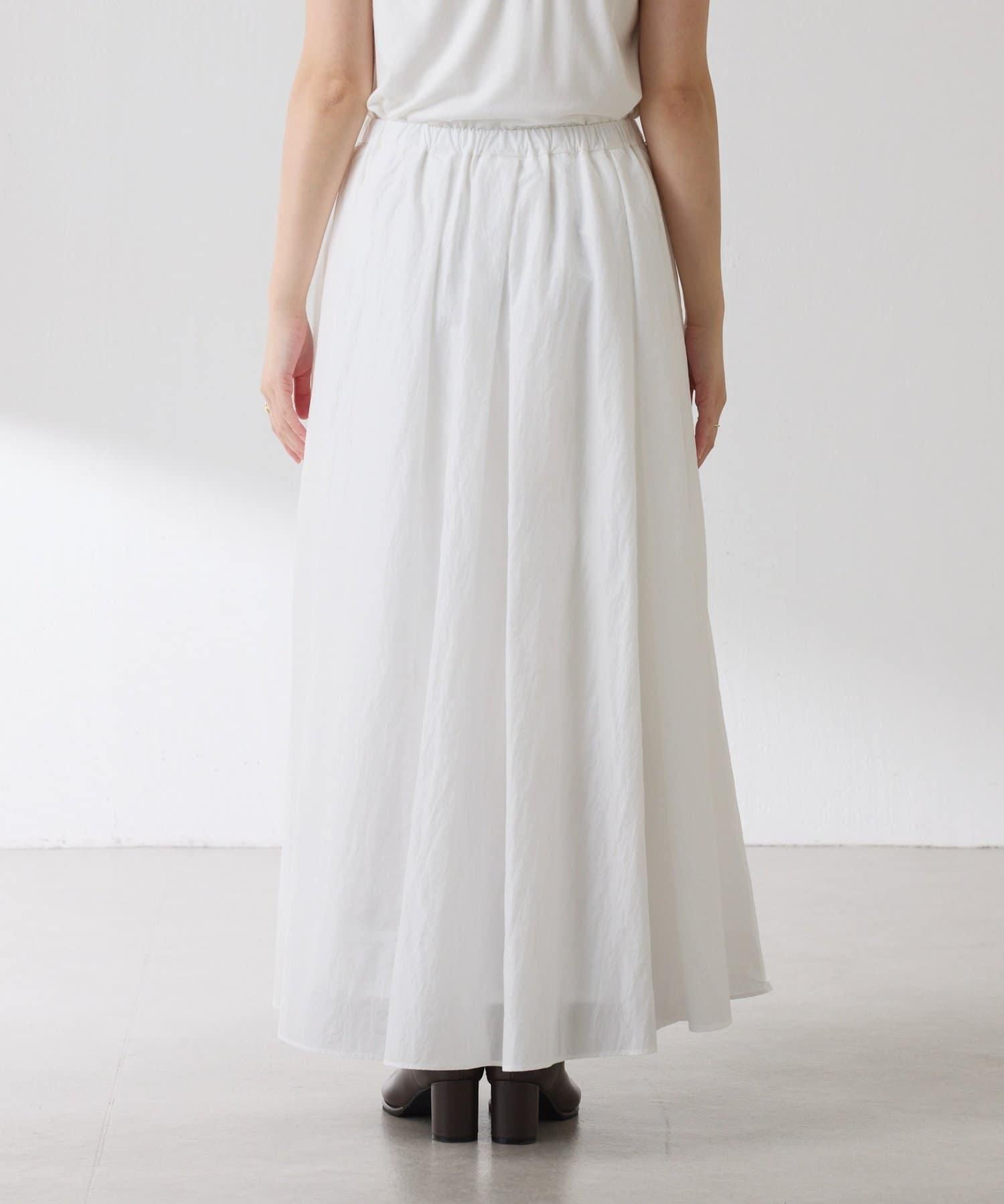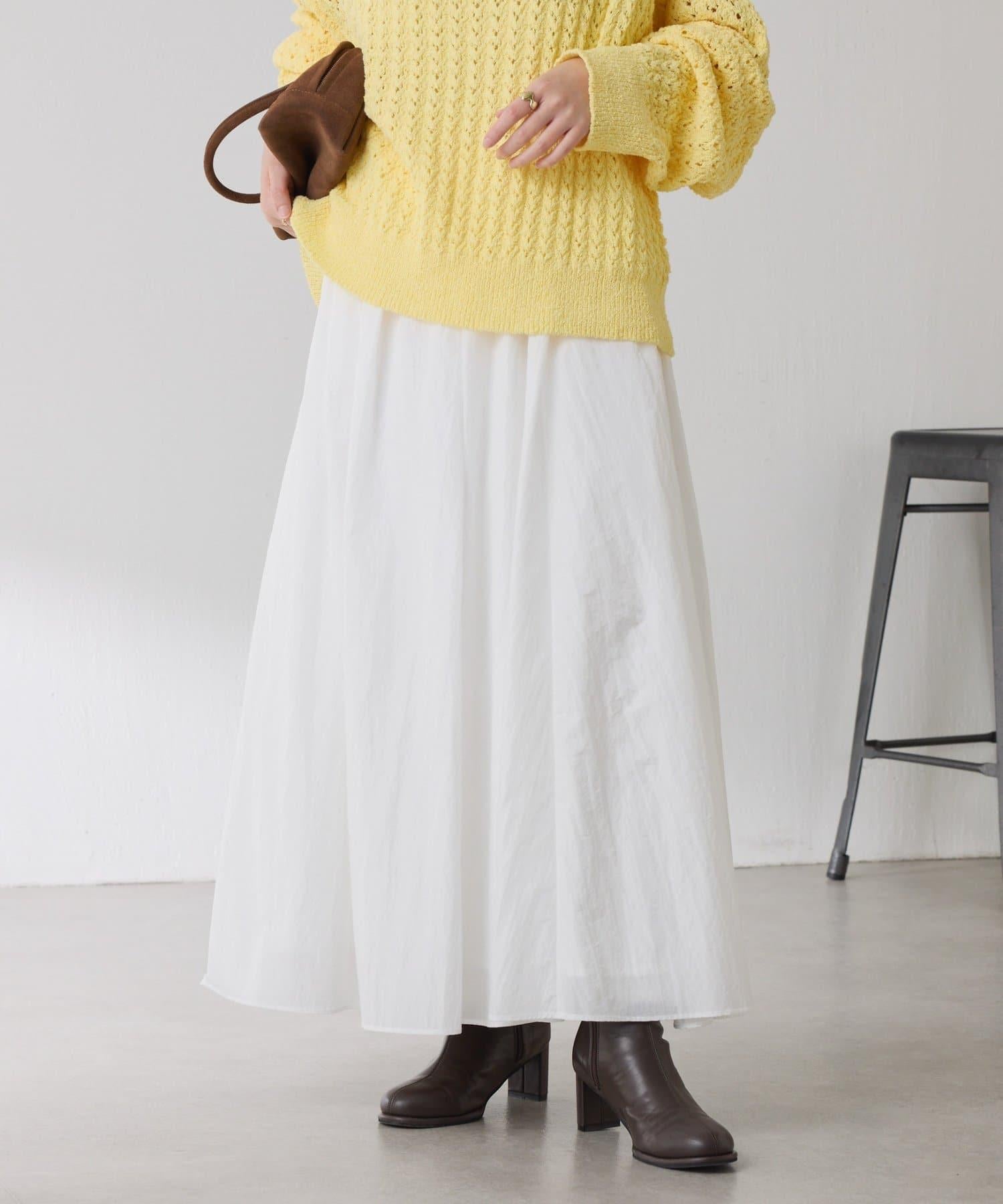 蓬鬆的裙襬閃耀著恰到好處的光澤,打造出輕鬆的造型。