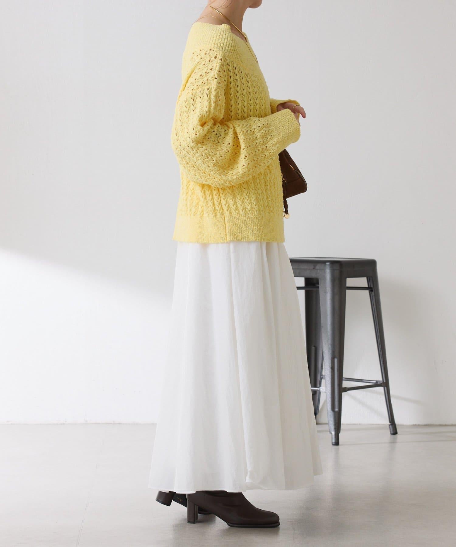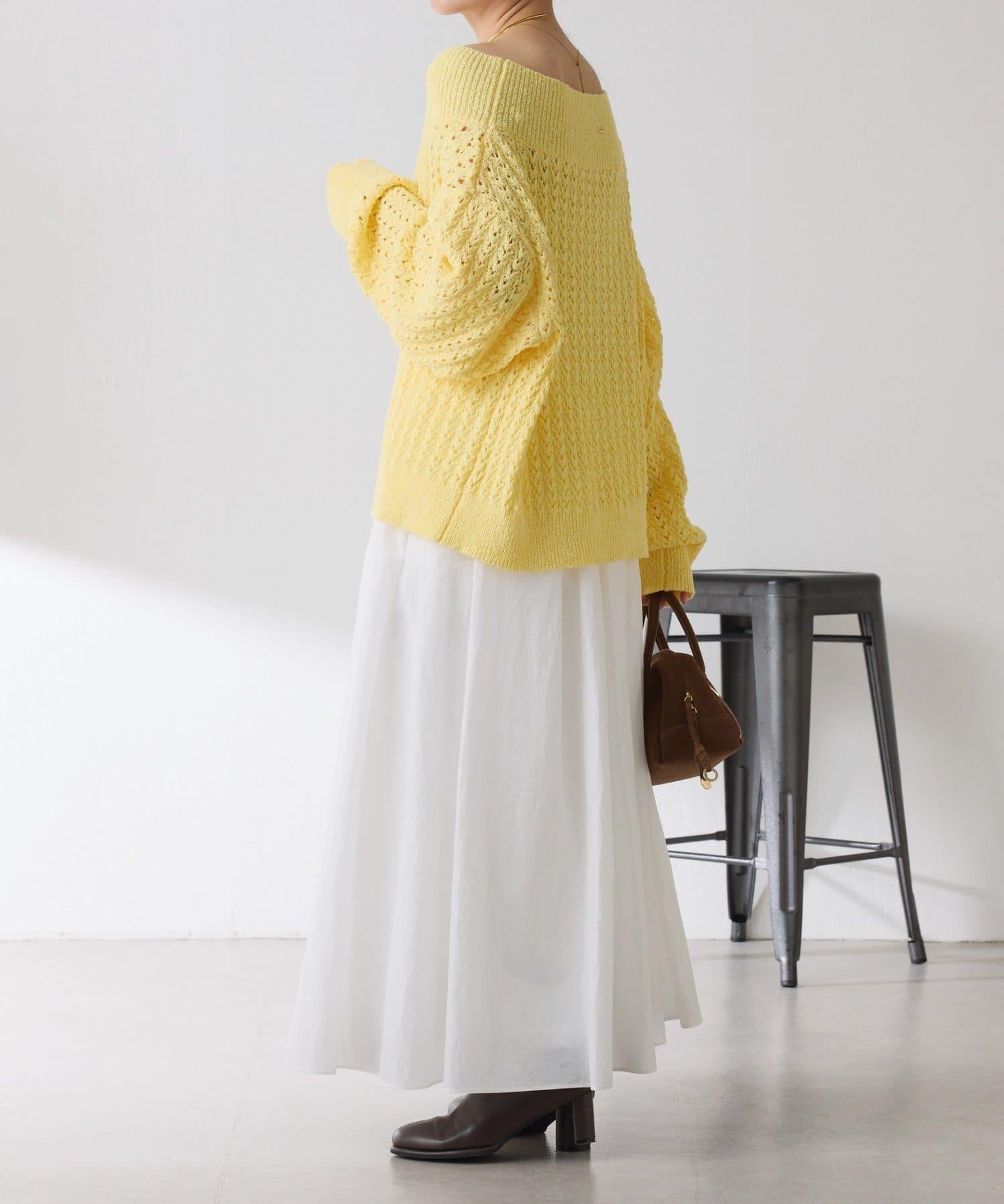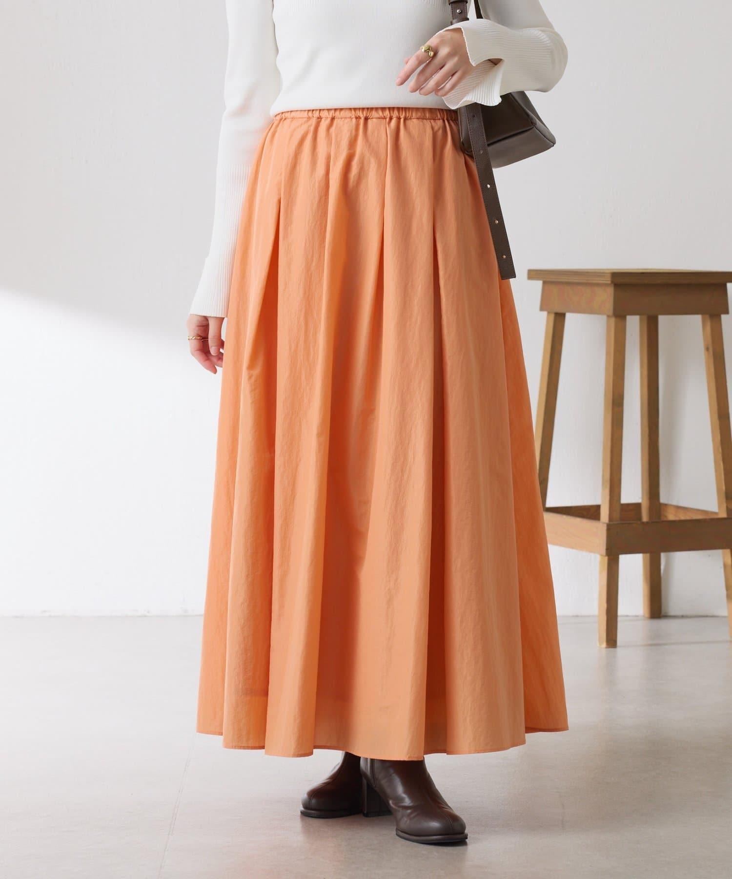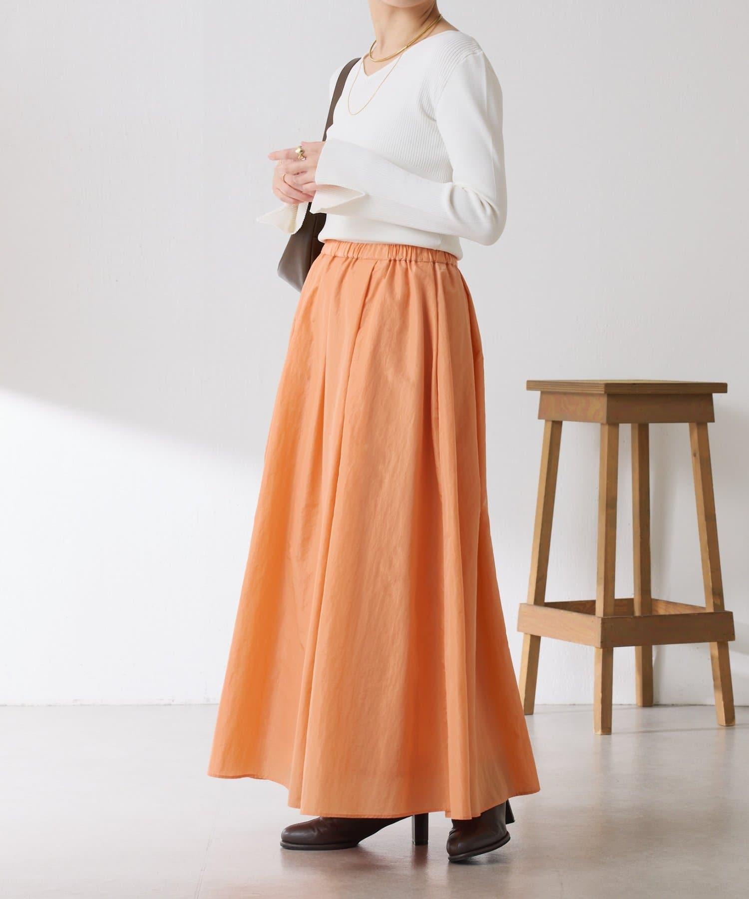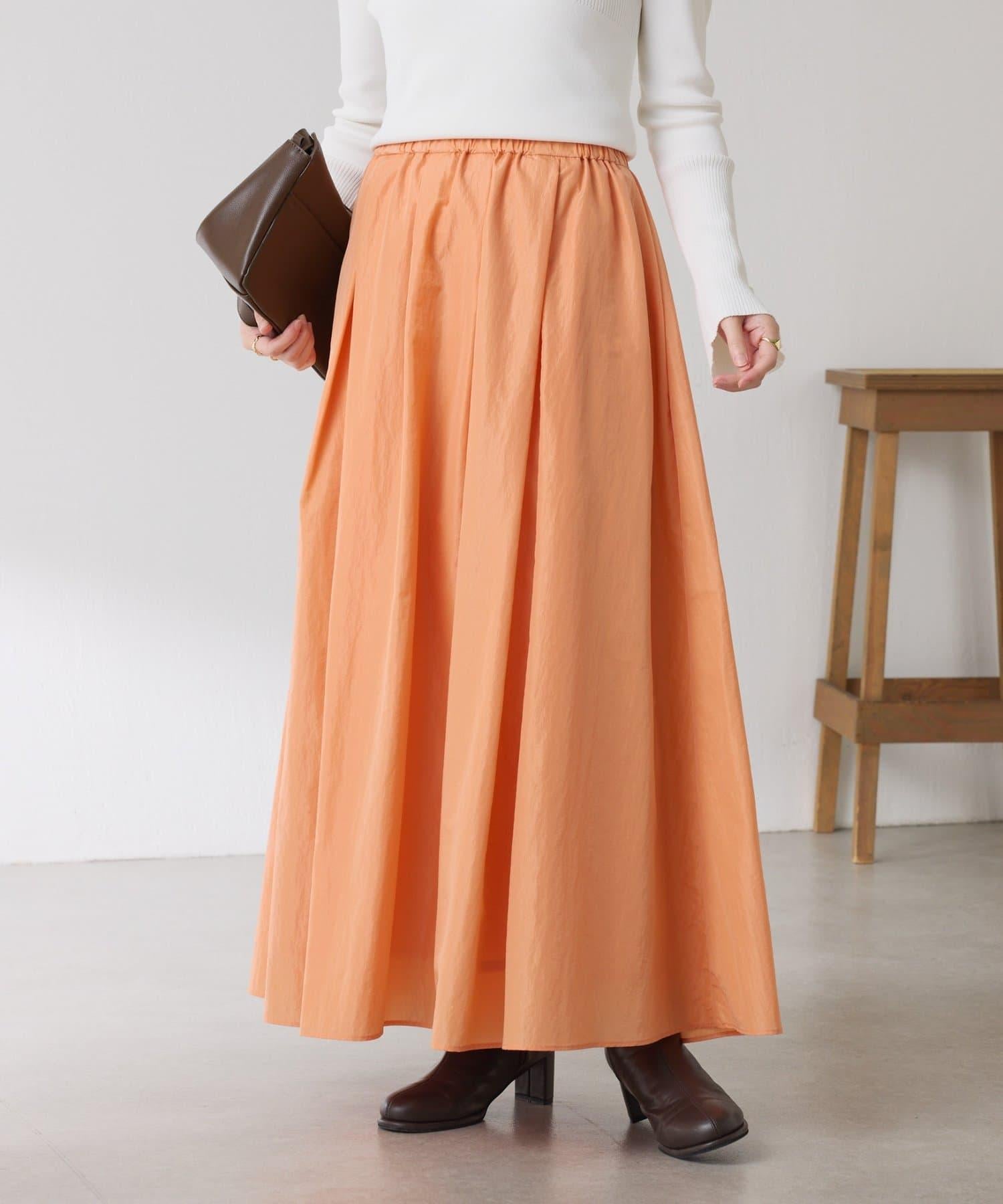 蓬鬆的裙襬閃耀著恰到好處的光澤,打造出輕鬆的造型。