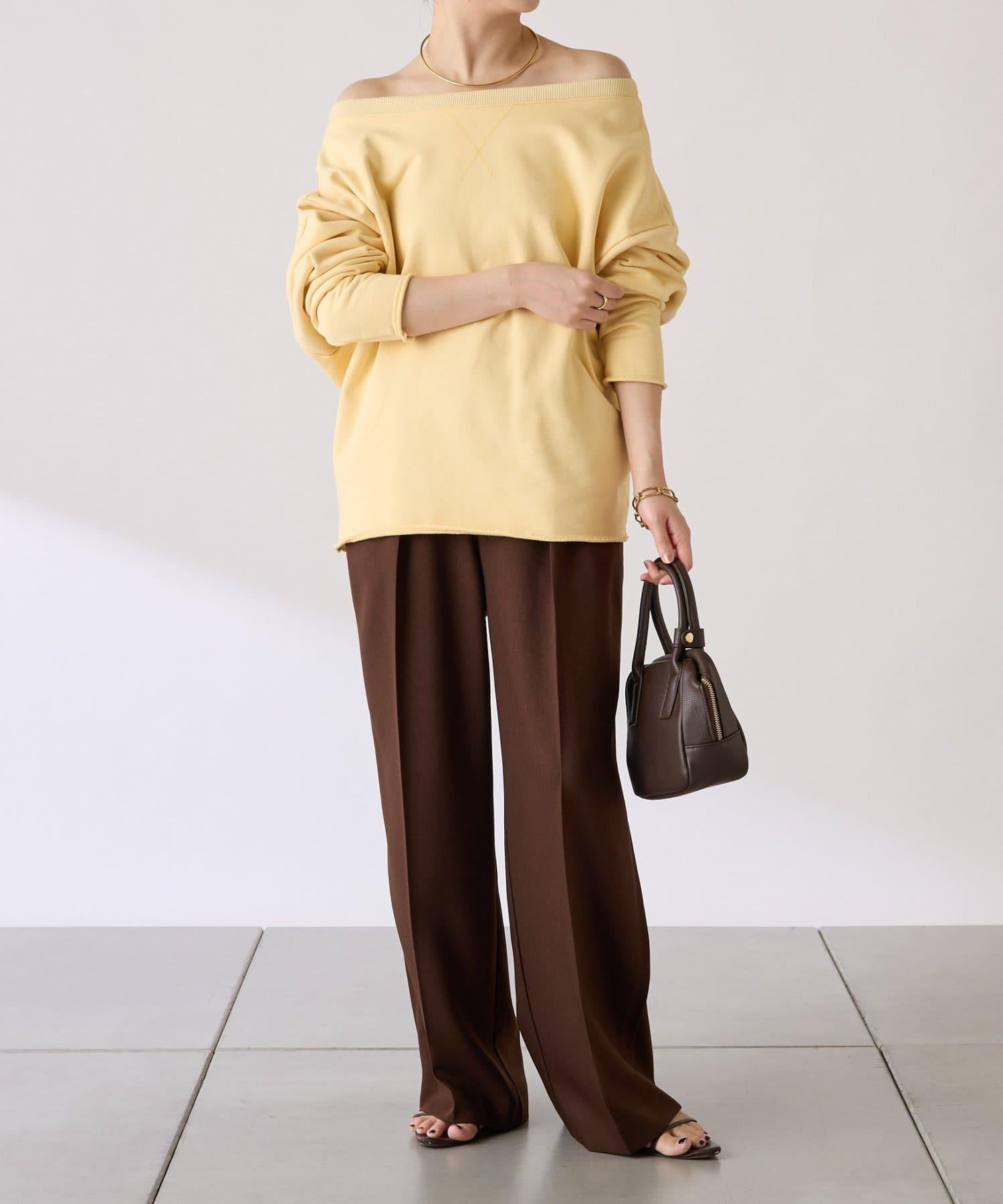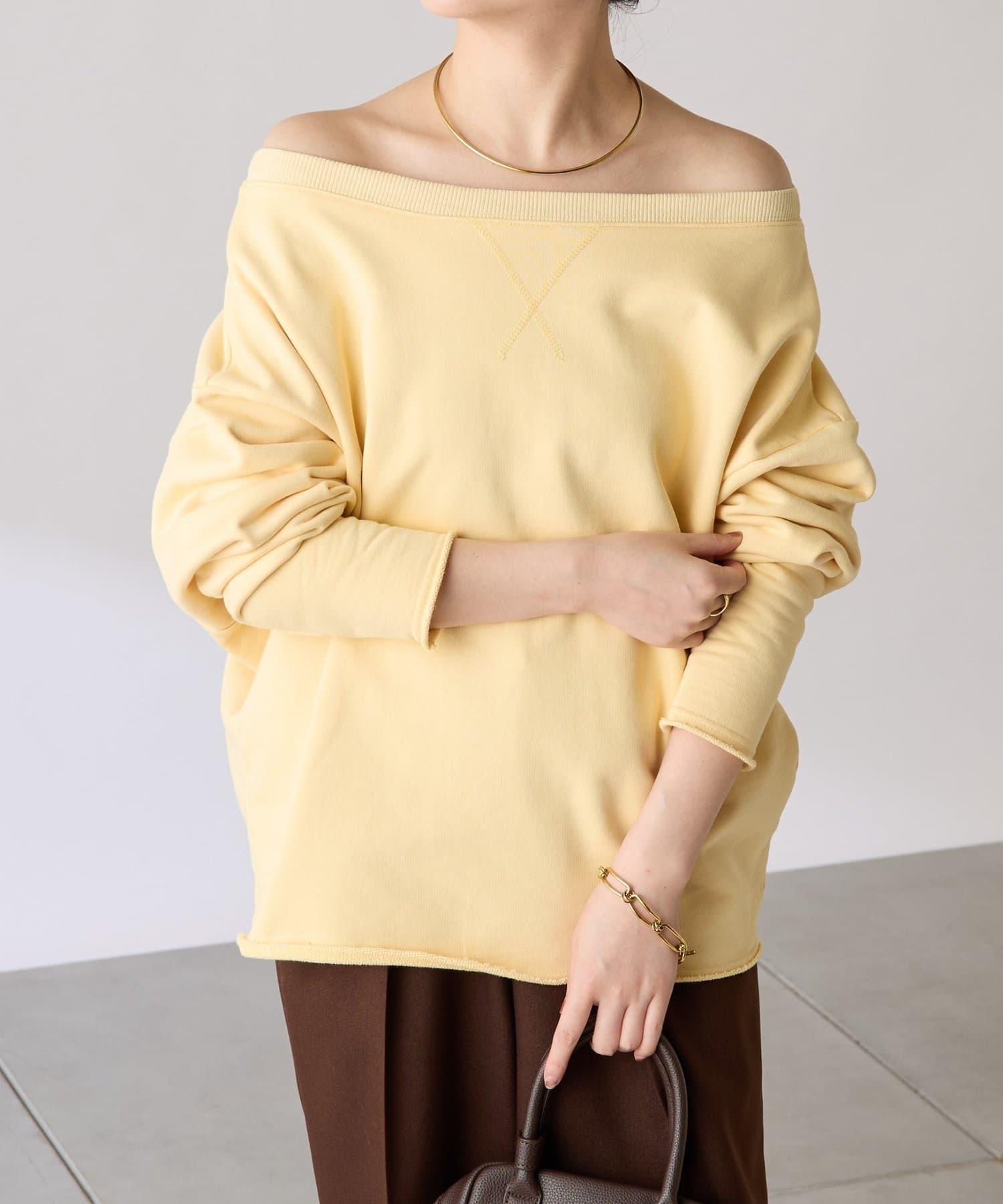 領子寬大,採用羅紋設計,因此可以移肩和露肩穿著。