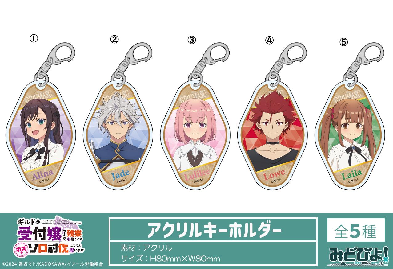 來自電視動畫片《我是公會接待員,但我不想加班,所以我想單槍匹馬打敗老闆》,共有五個不同的亞克力鑰匙圈!