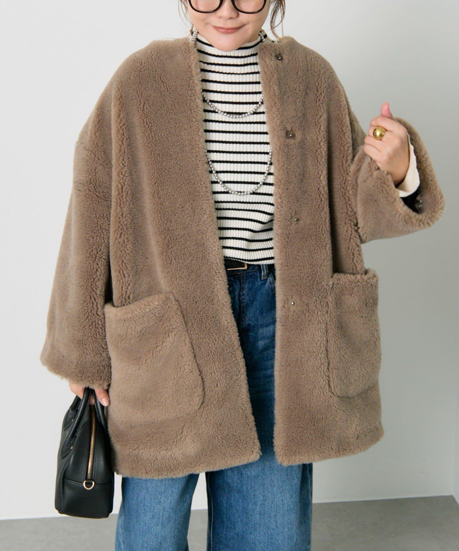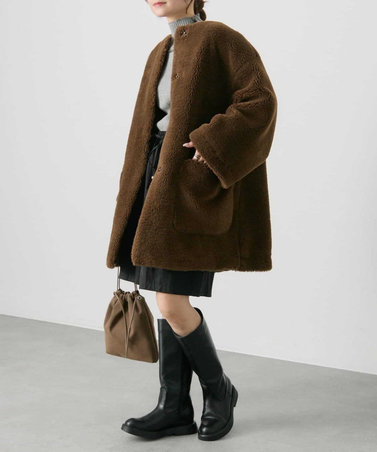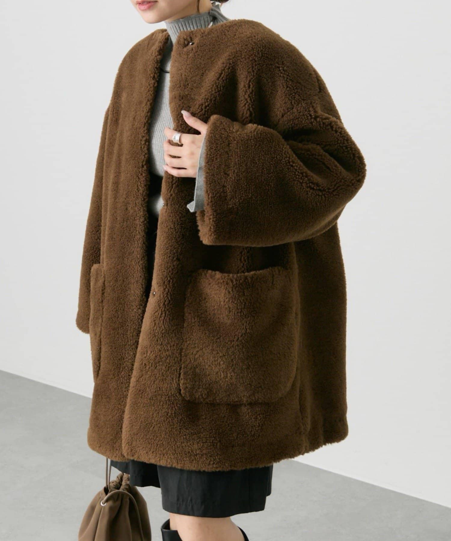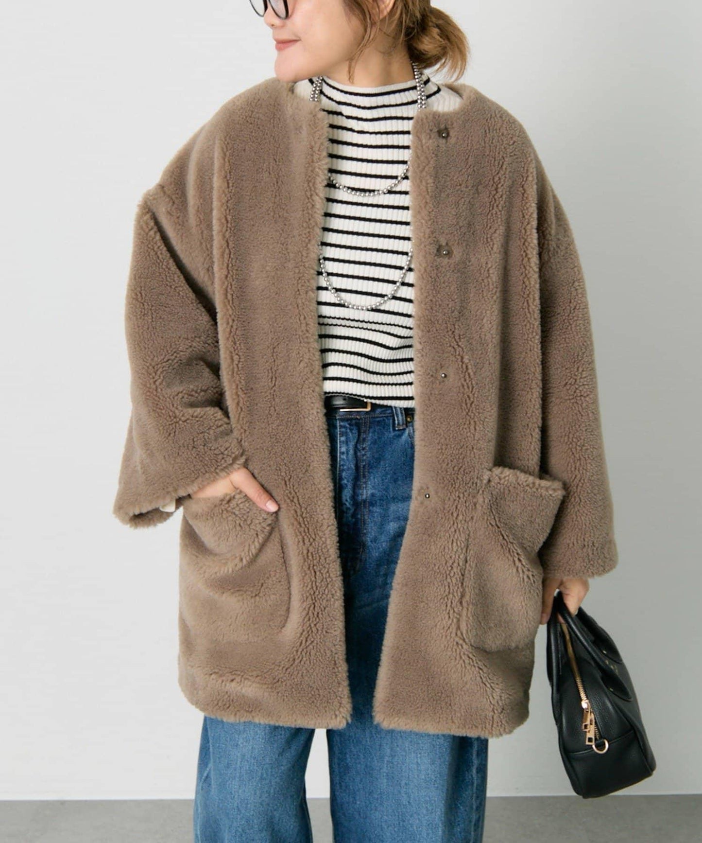 即使在寒冷的冬天也能保暖的蓬鬆材質成人可愛中層大衣◇