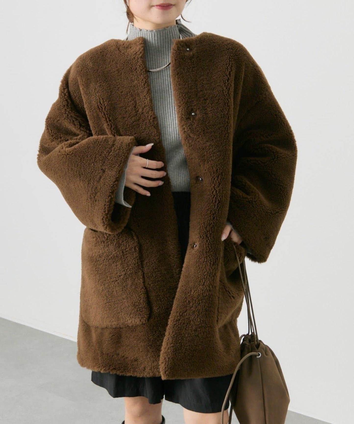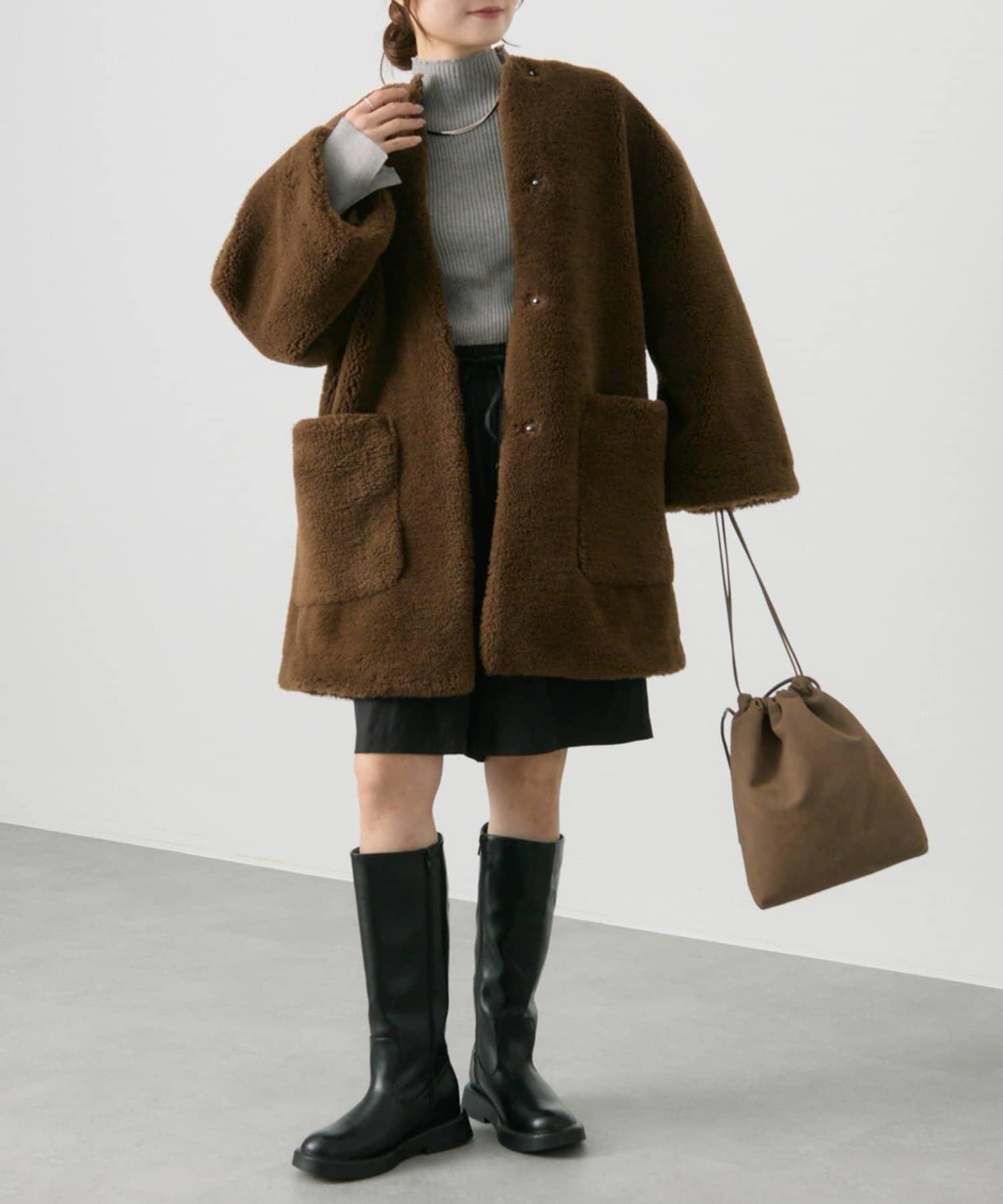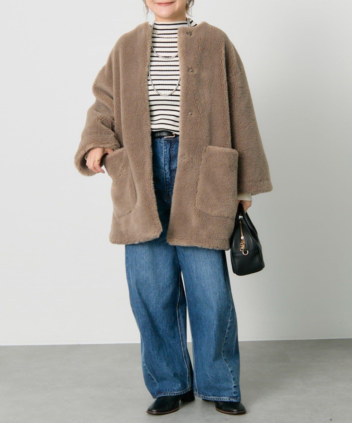 即使在寒冷的冬天也能保暖的蓬鬆材質成人可愛中層大衣◇