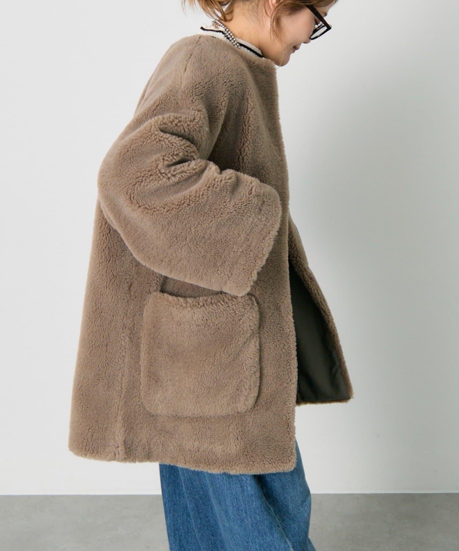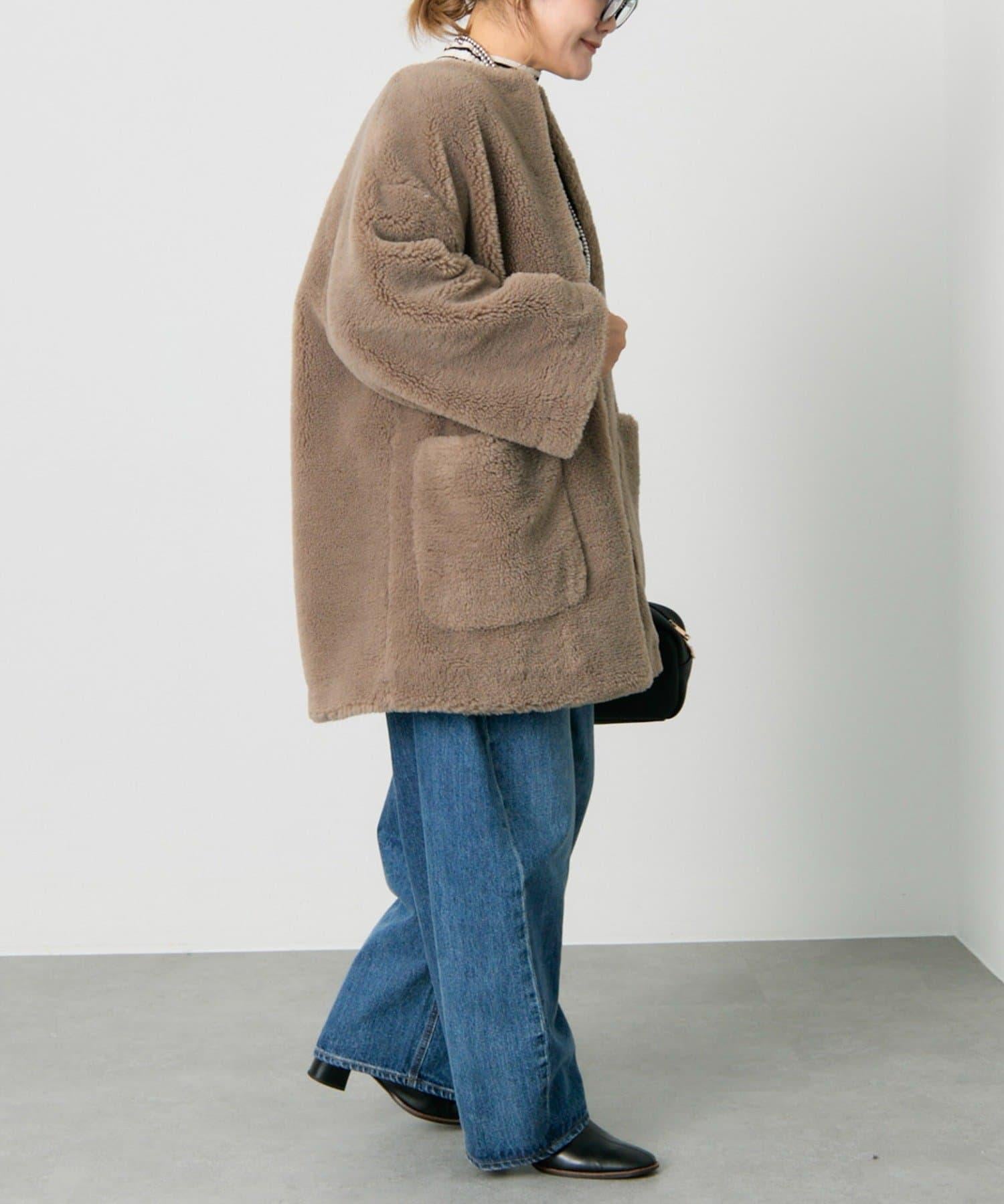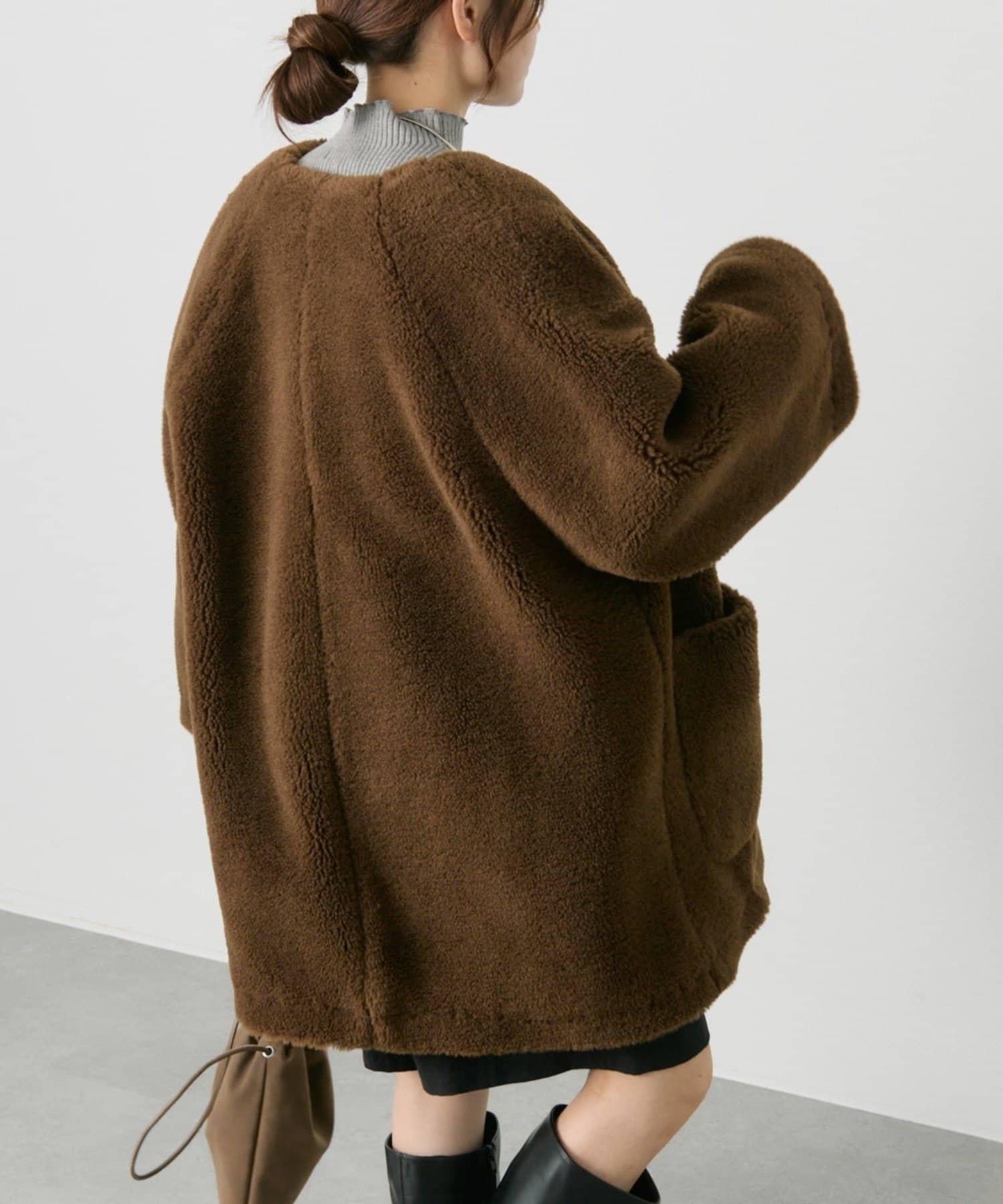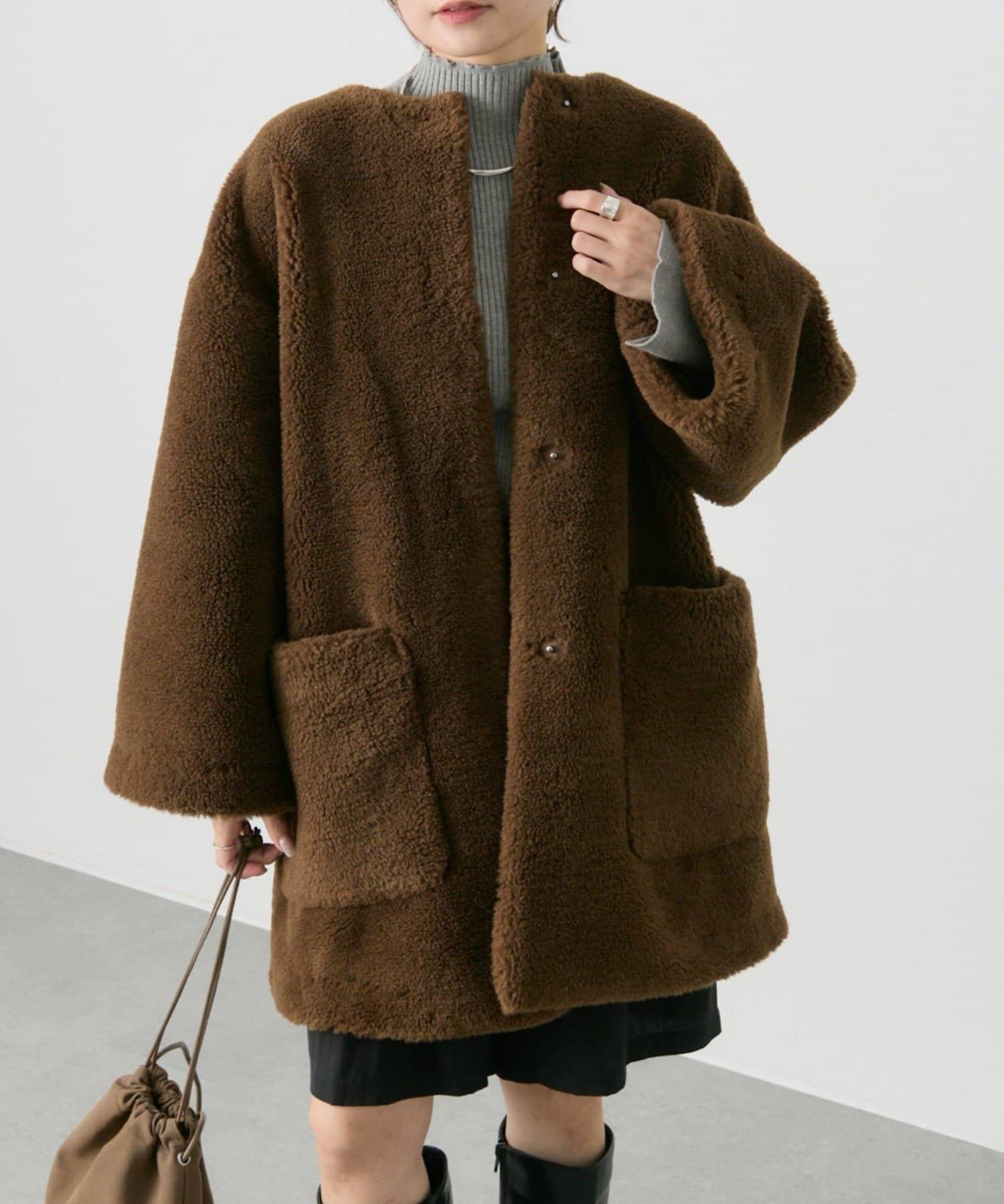 即使在寒冷的冬天也能保暖的蓬鬆材質成人可愛中層大衣◇