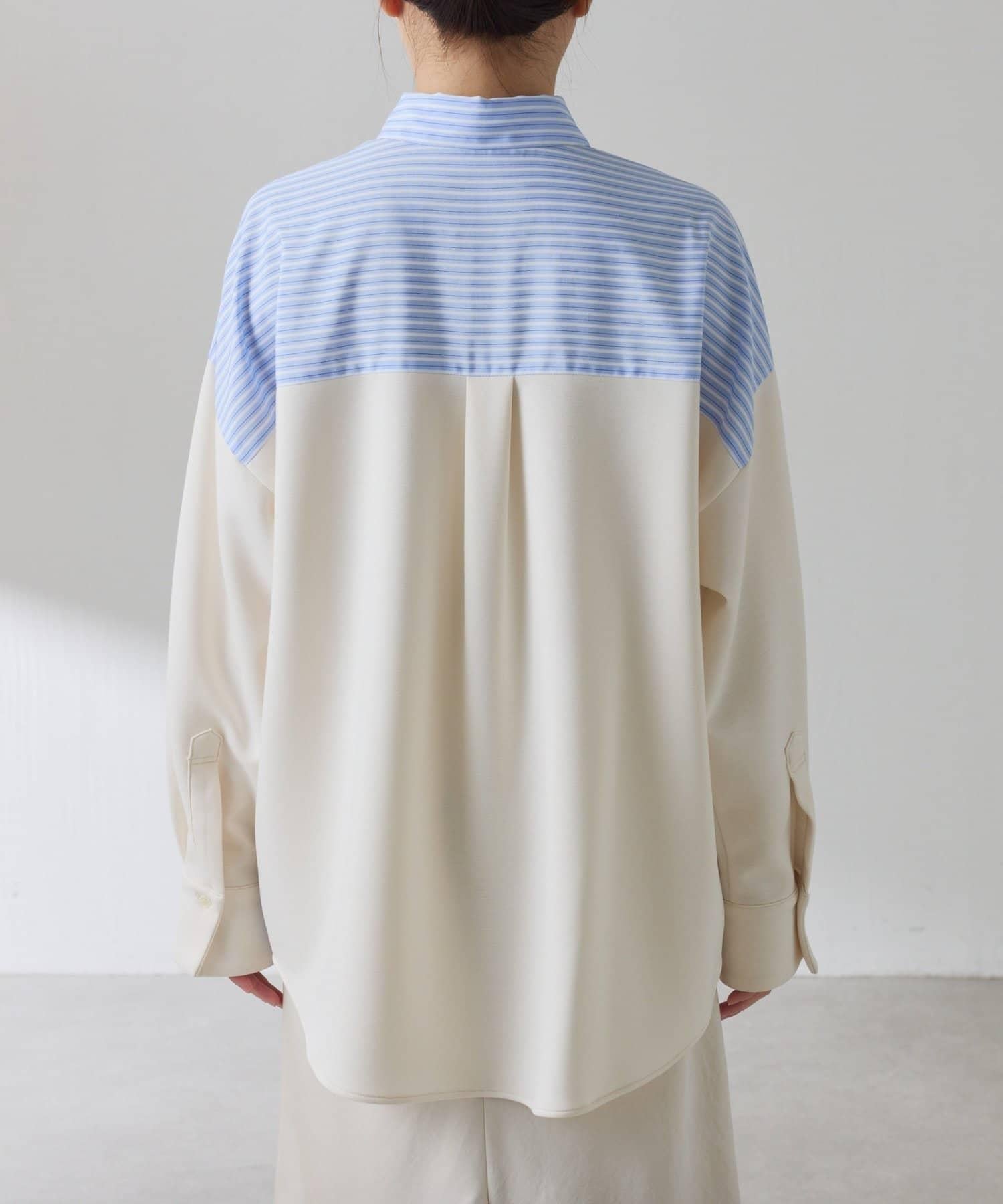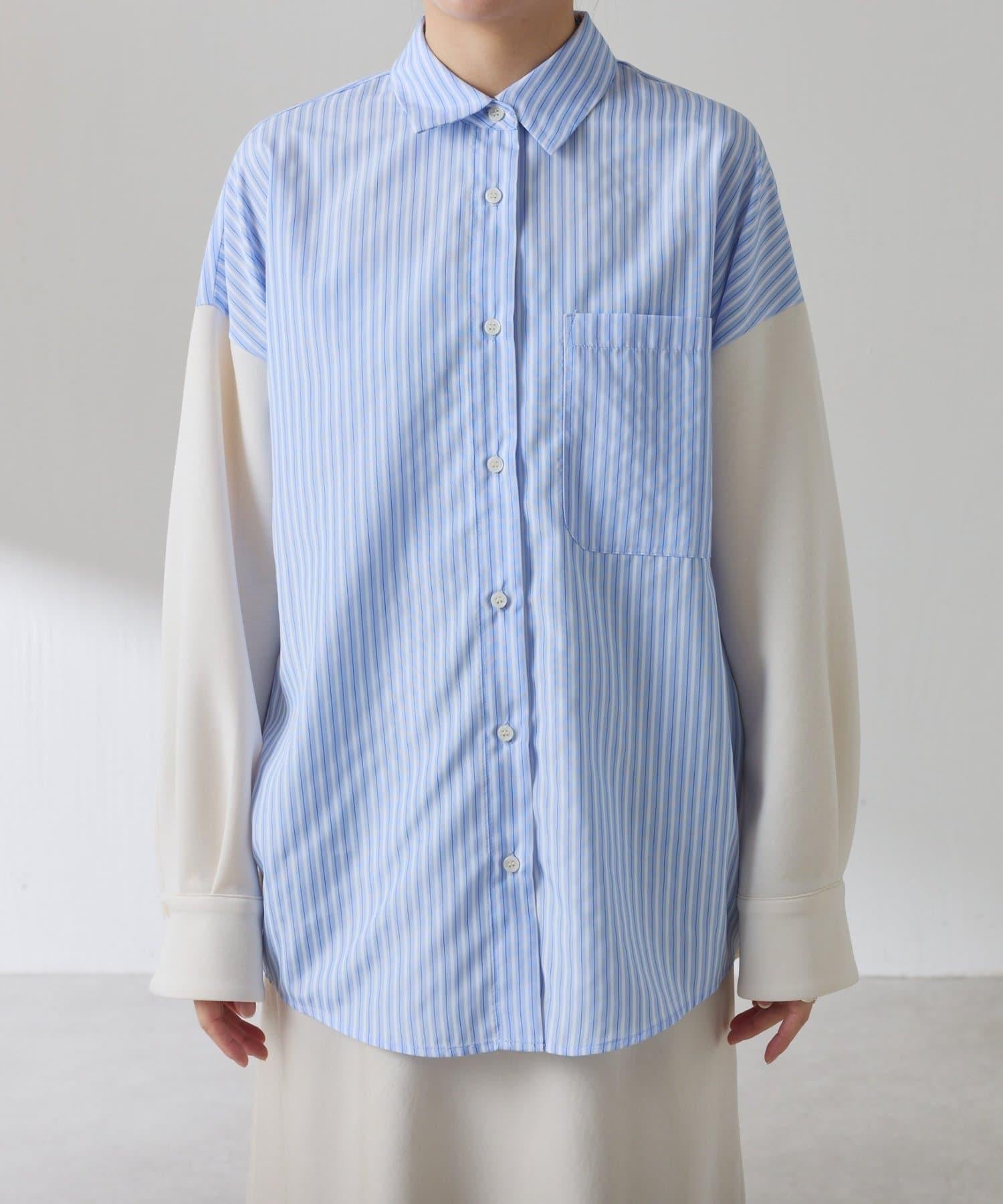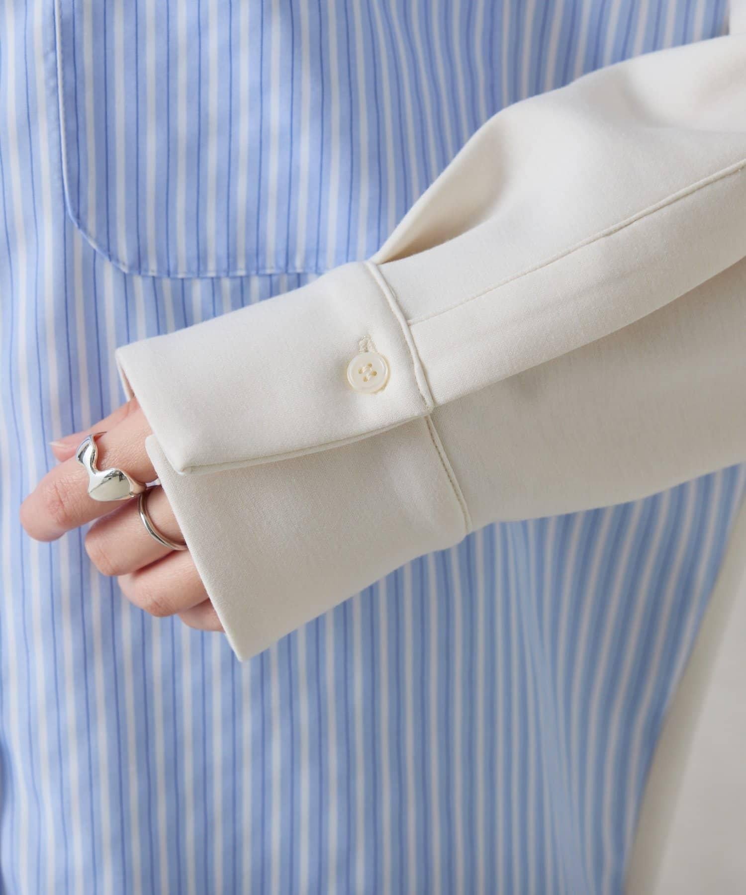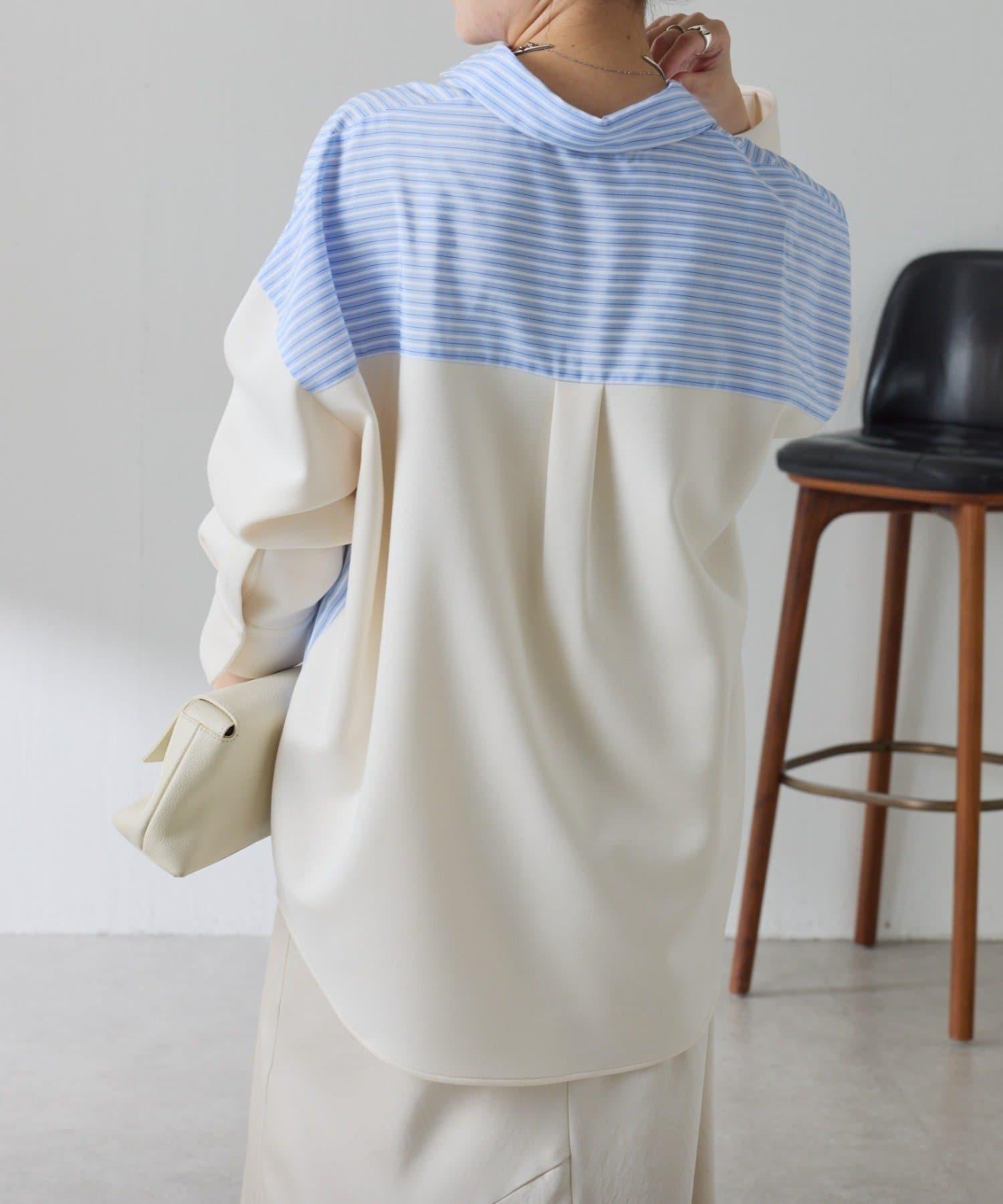 這是一款套頭衫,襯衫和披風的材質對接在一起,看起來很瀟灑。