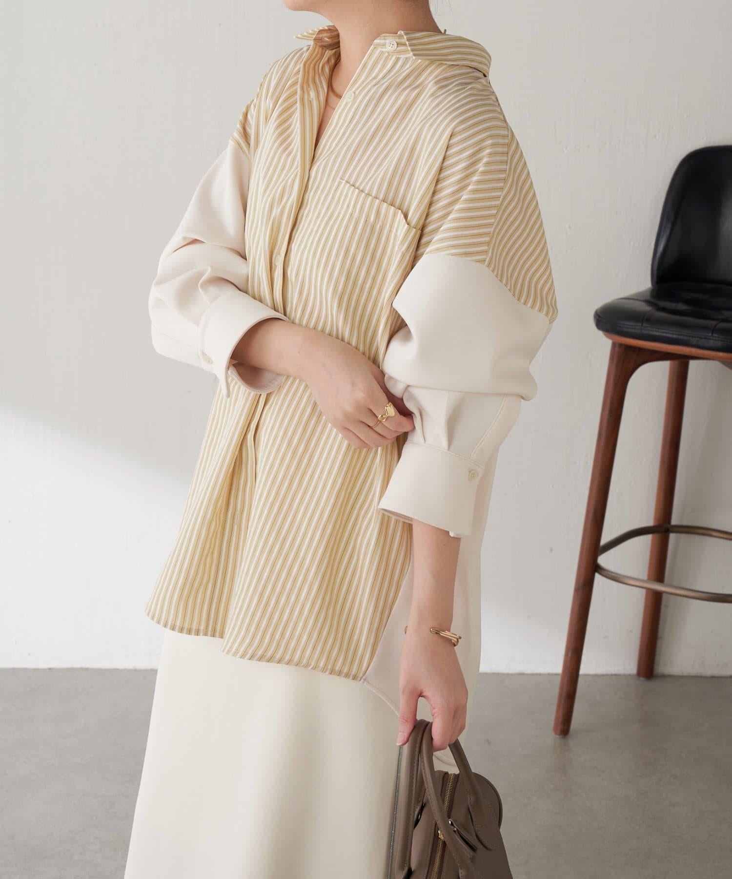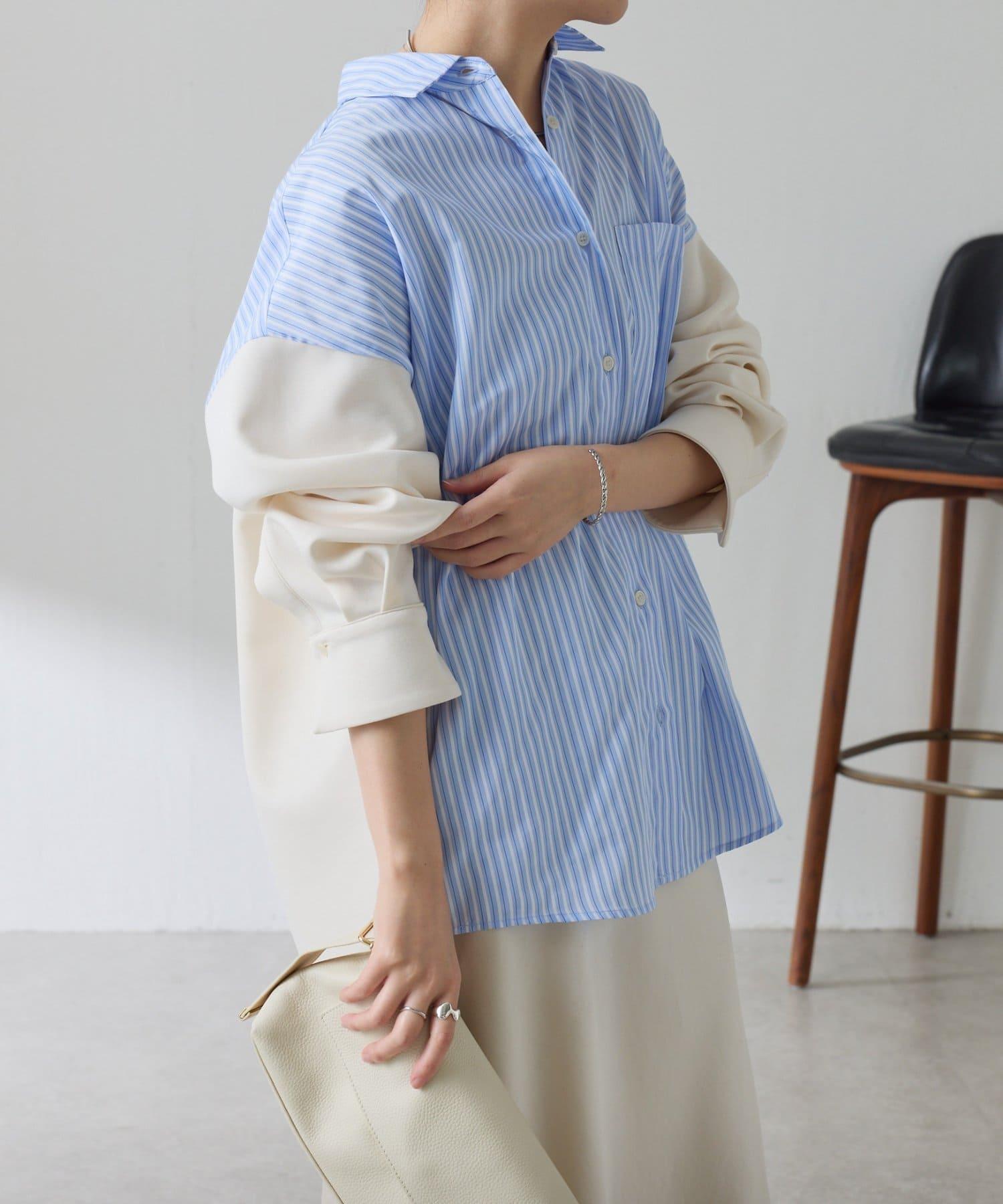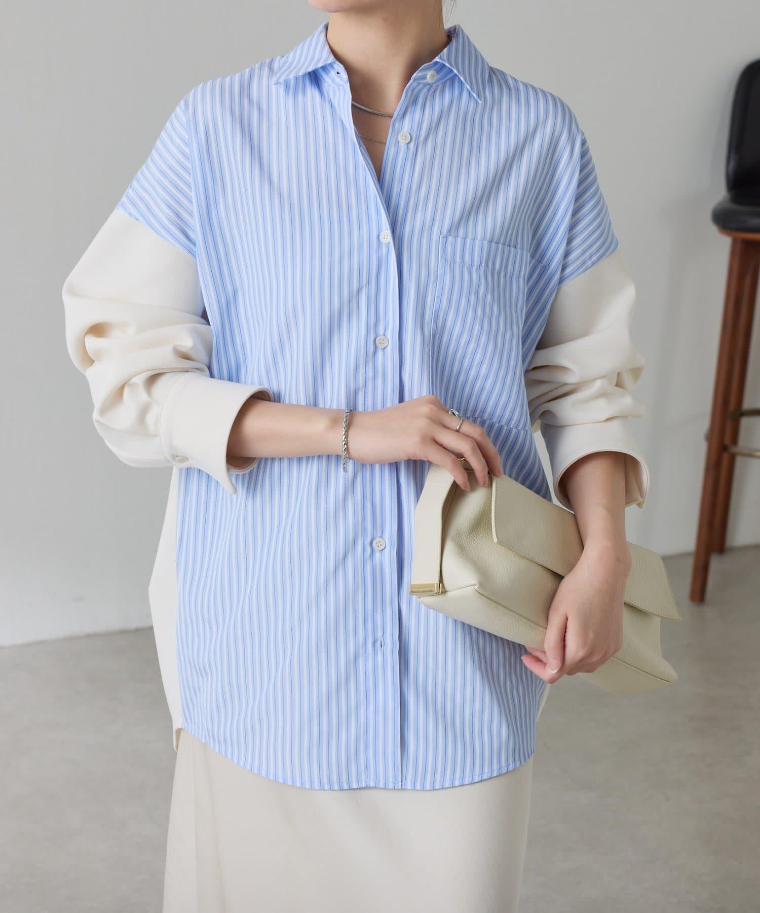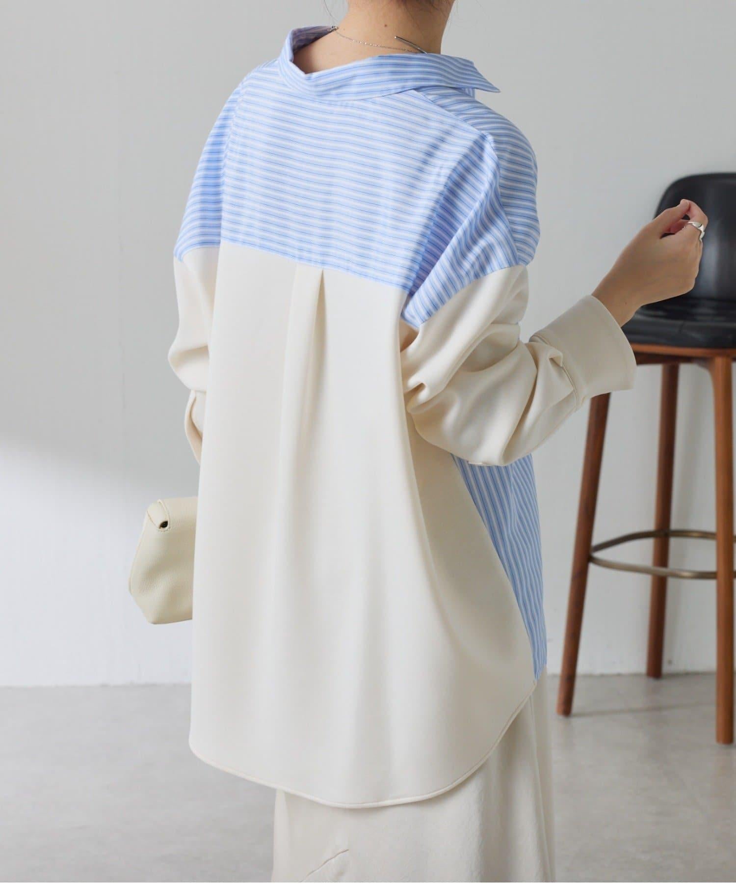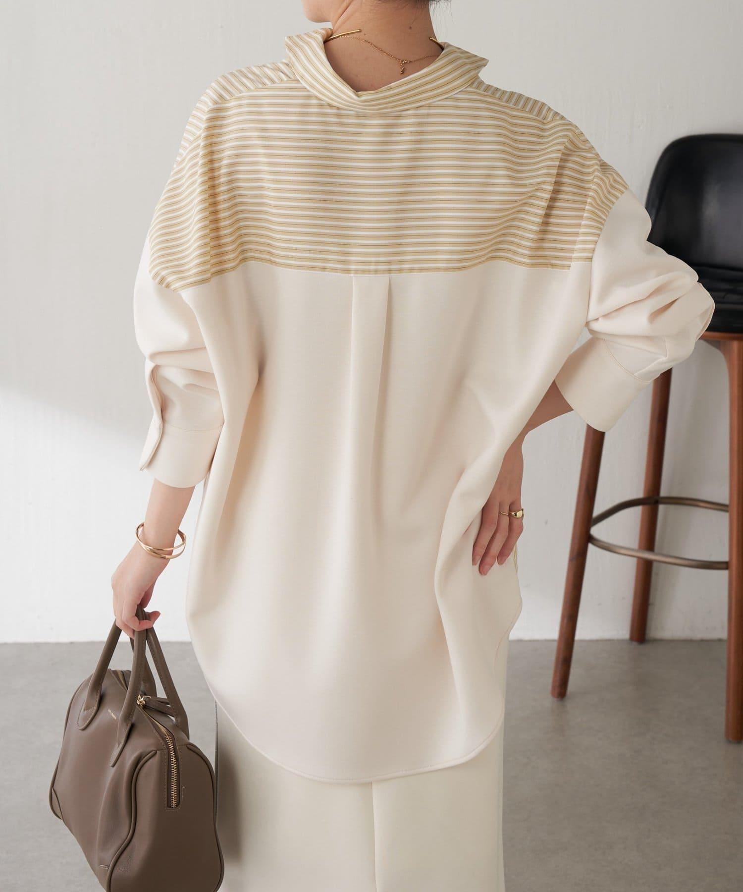 這是一款套頭衫,襯衫和披風的材質對接在一起,看起來很瀟灑。