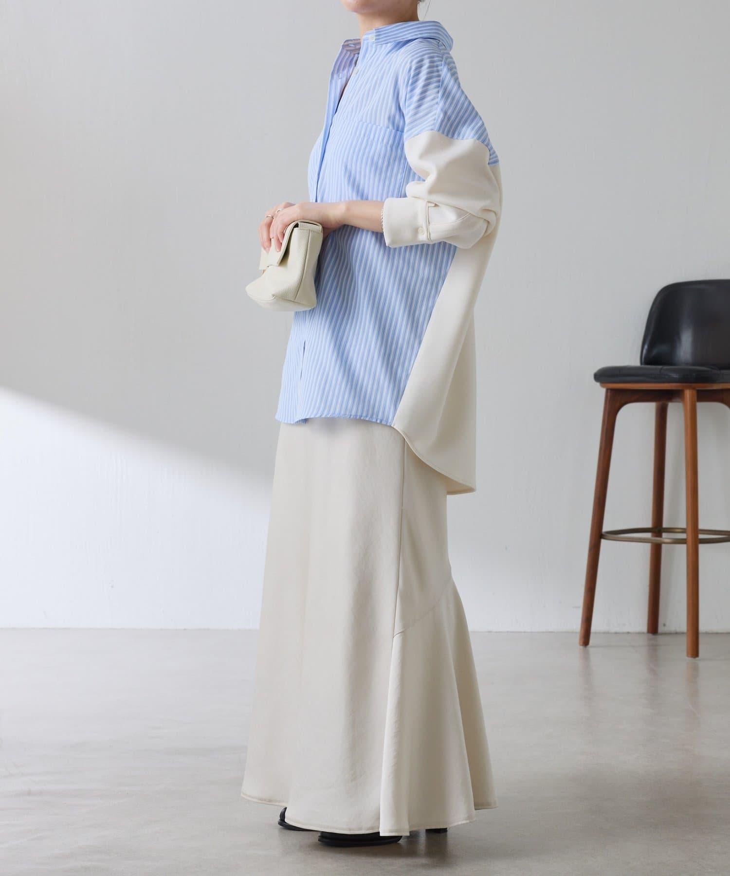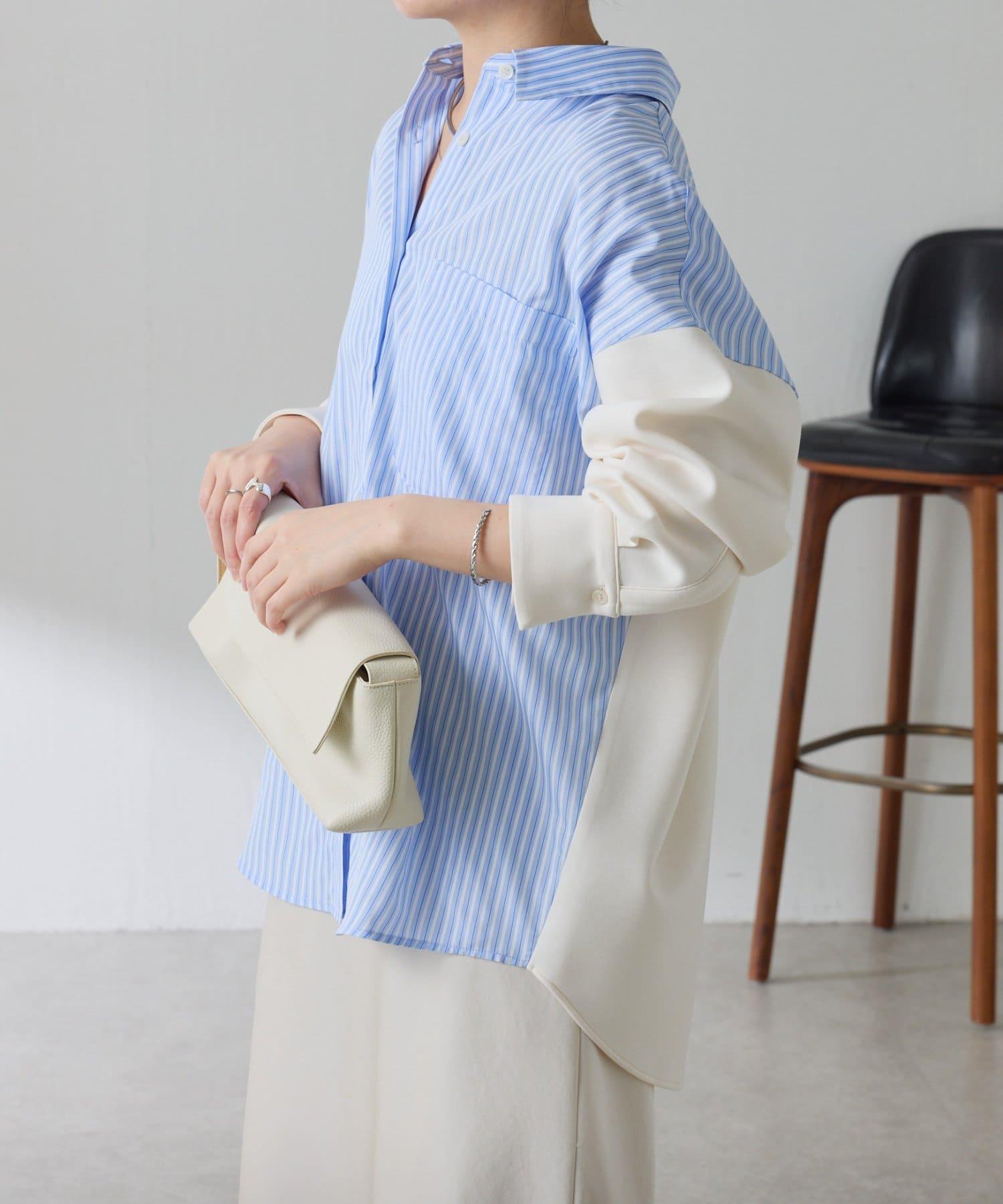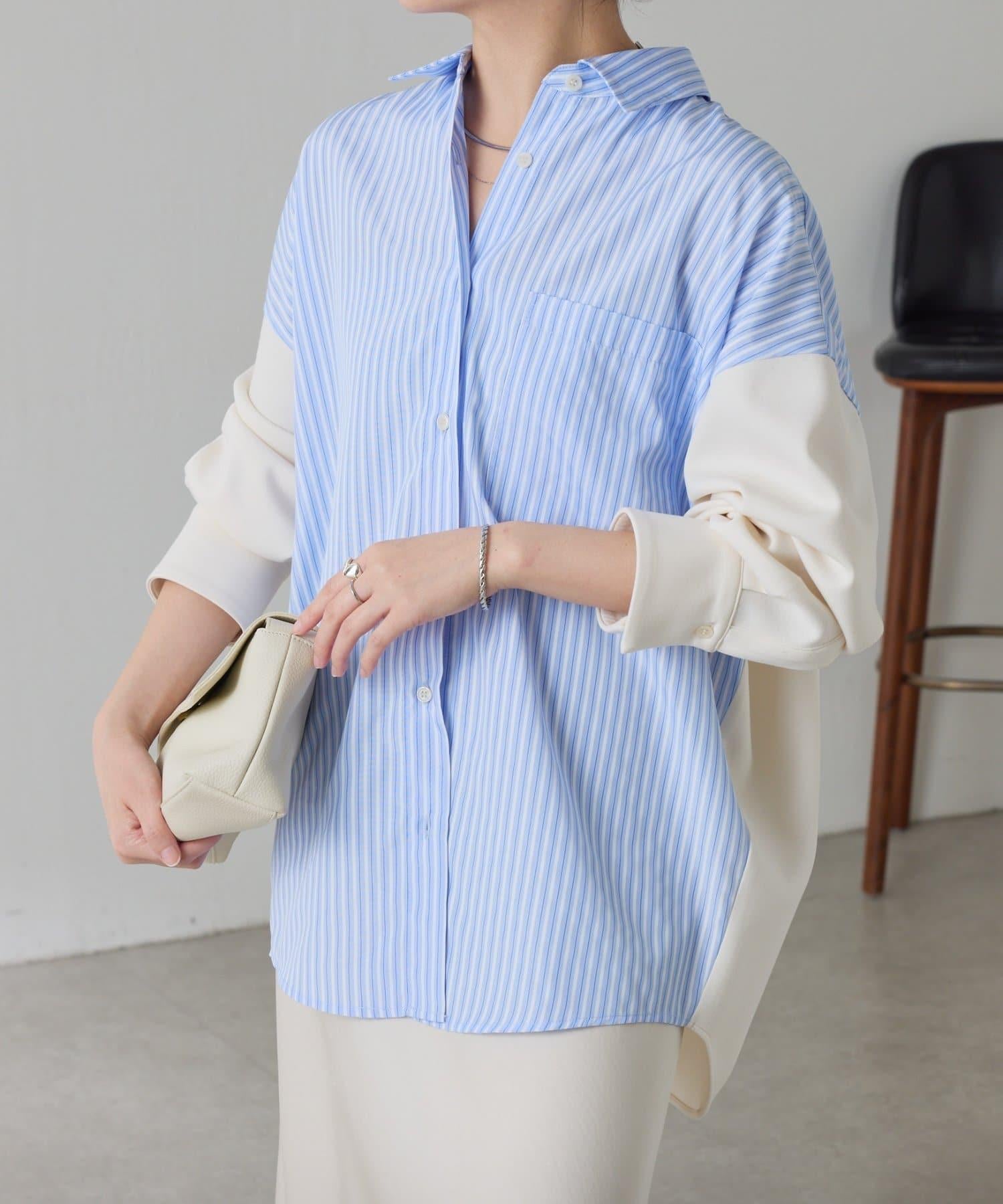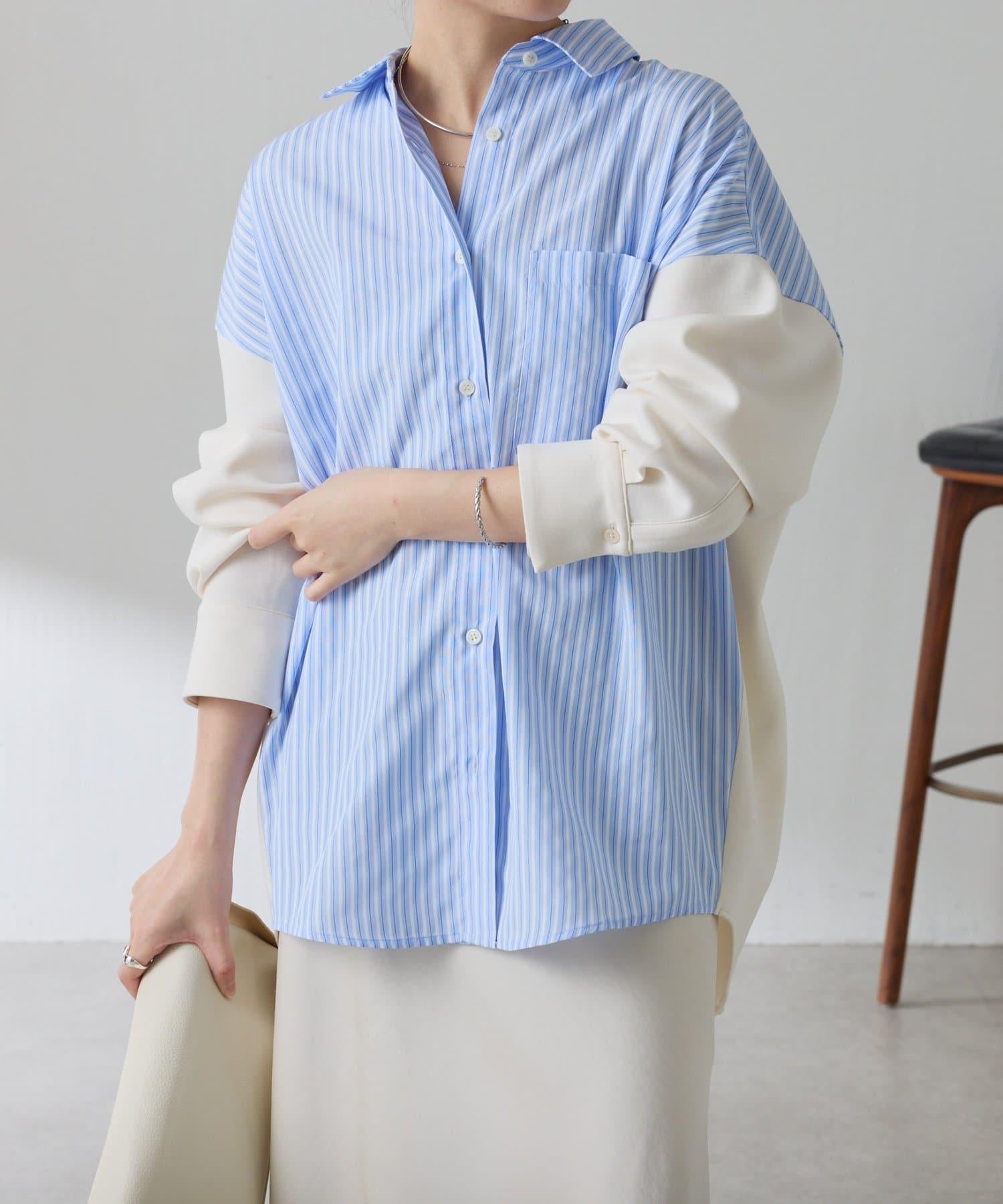 這是一款套頭衫,襯衫和披風的材質對接在一起,看起來很瀟灑。