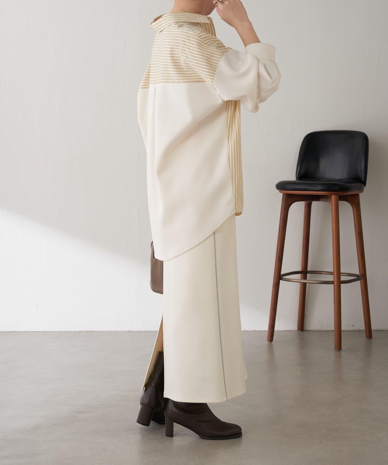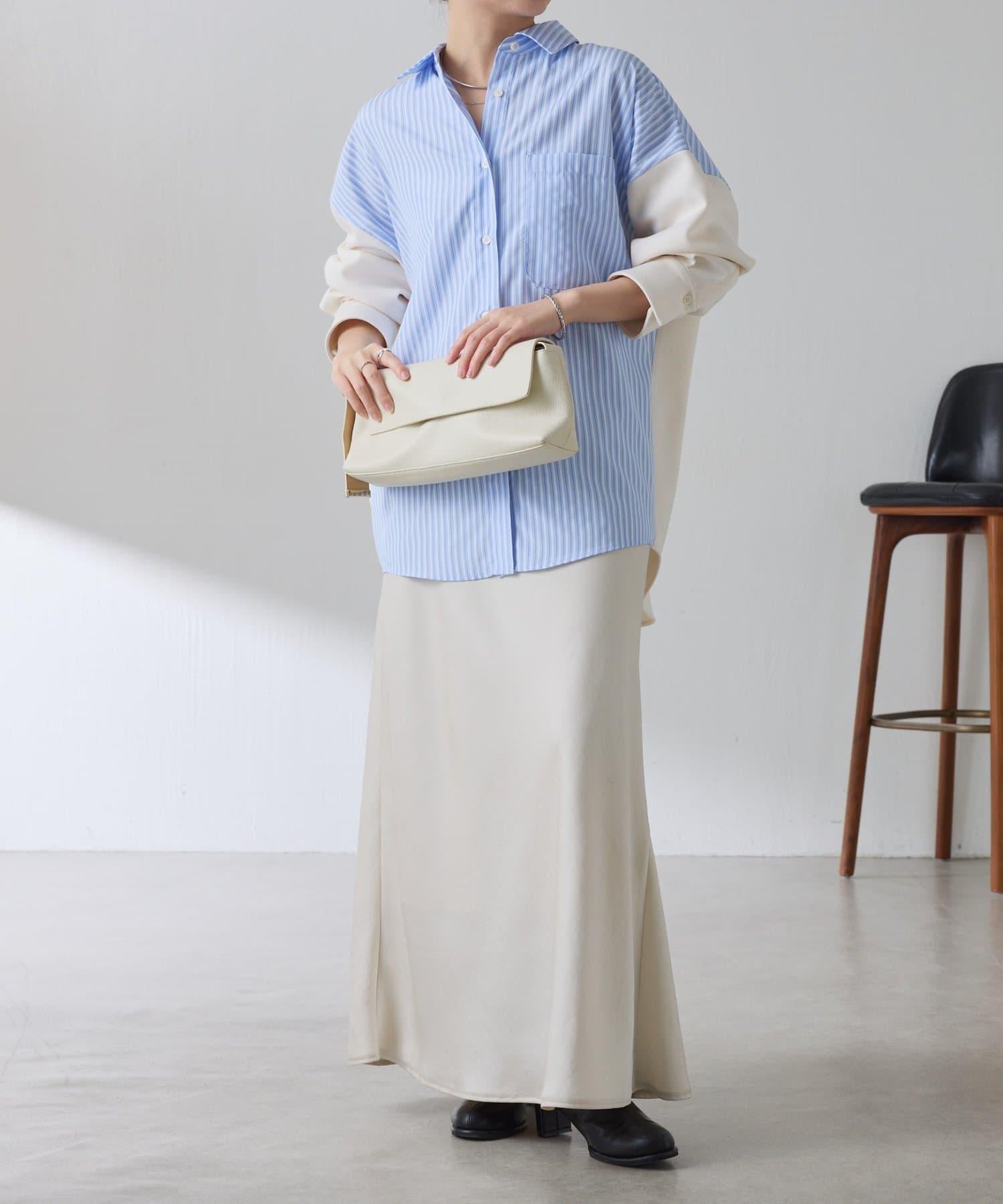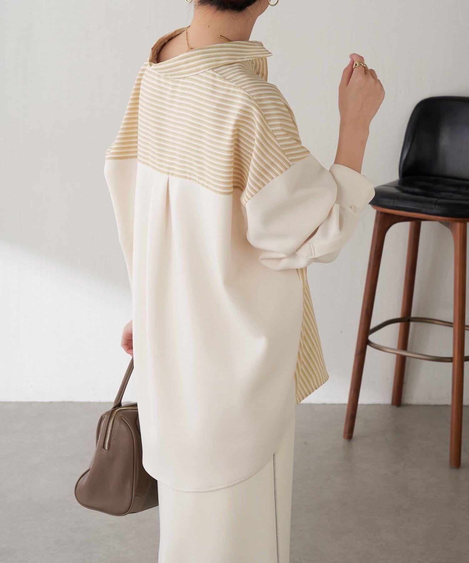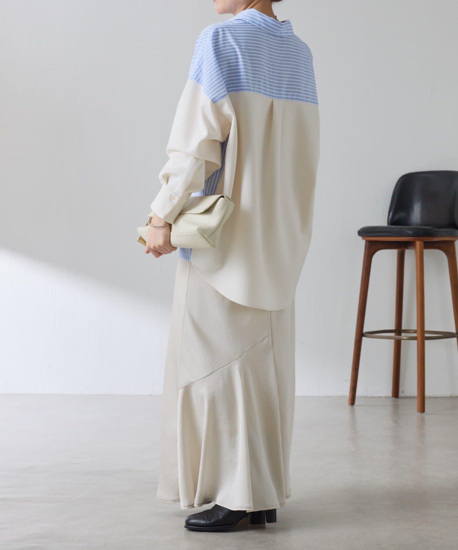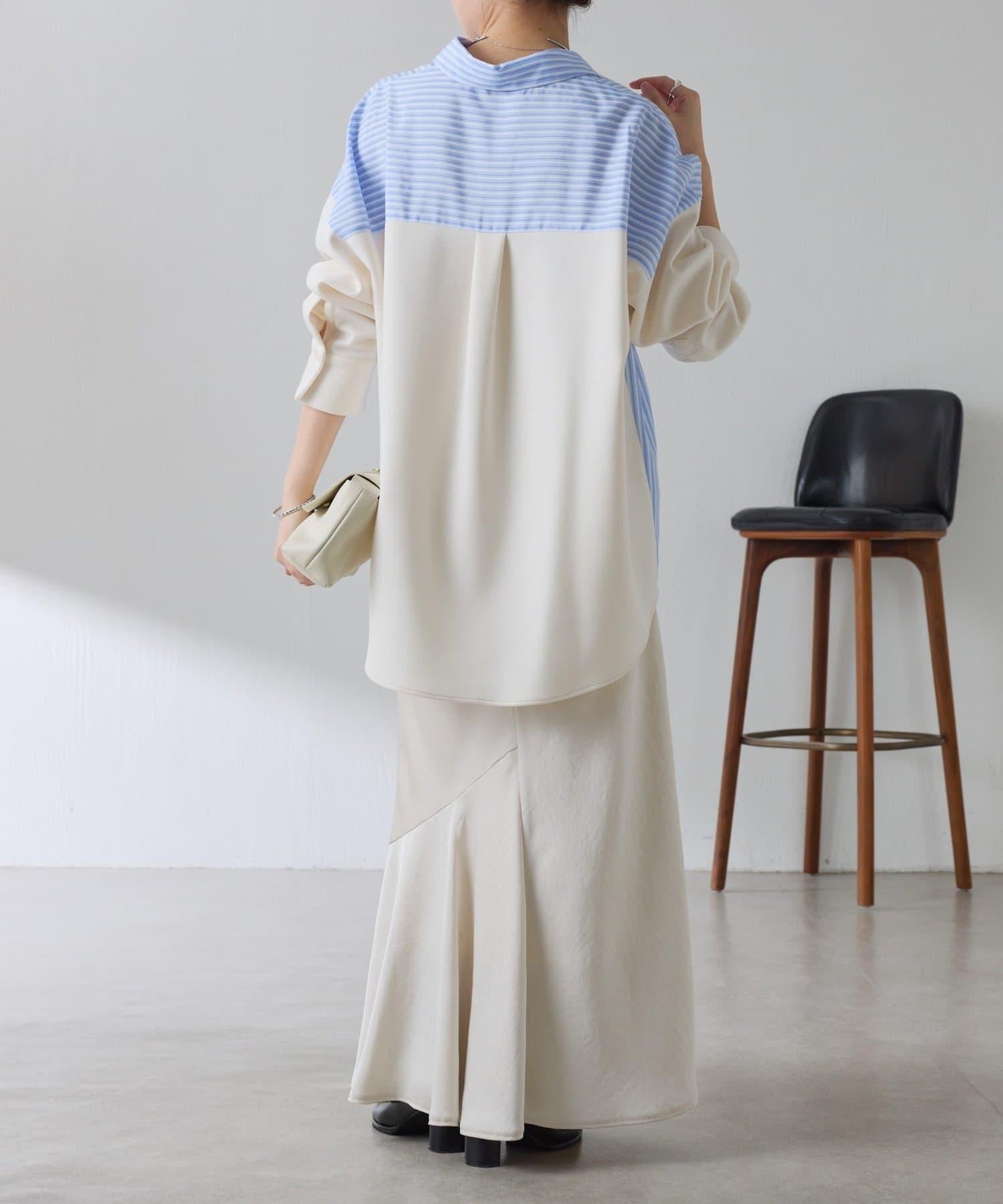這是一款套頭衫,襯衫和披風的材質對接在一起,看起來很瀟灑。
