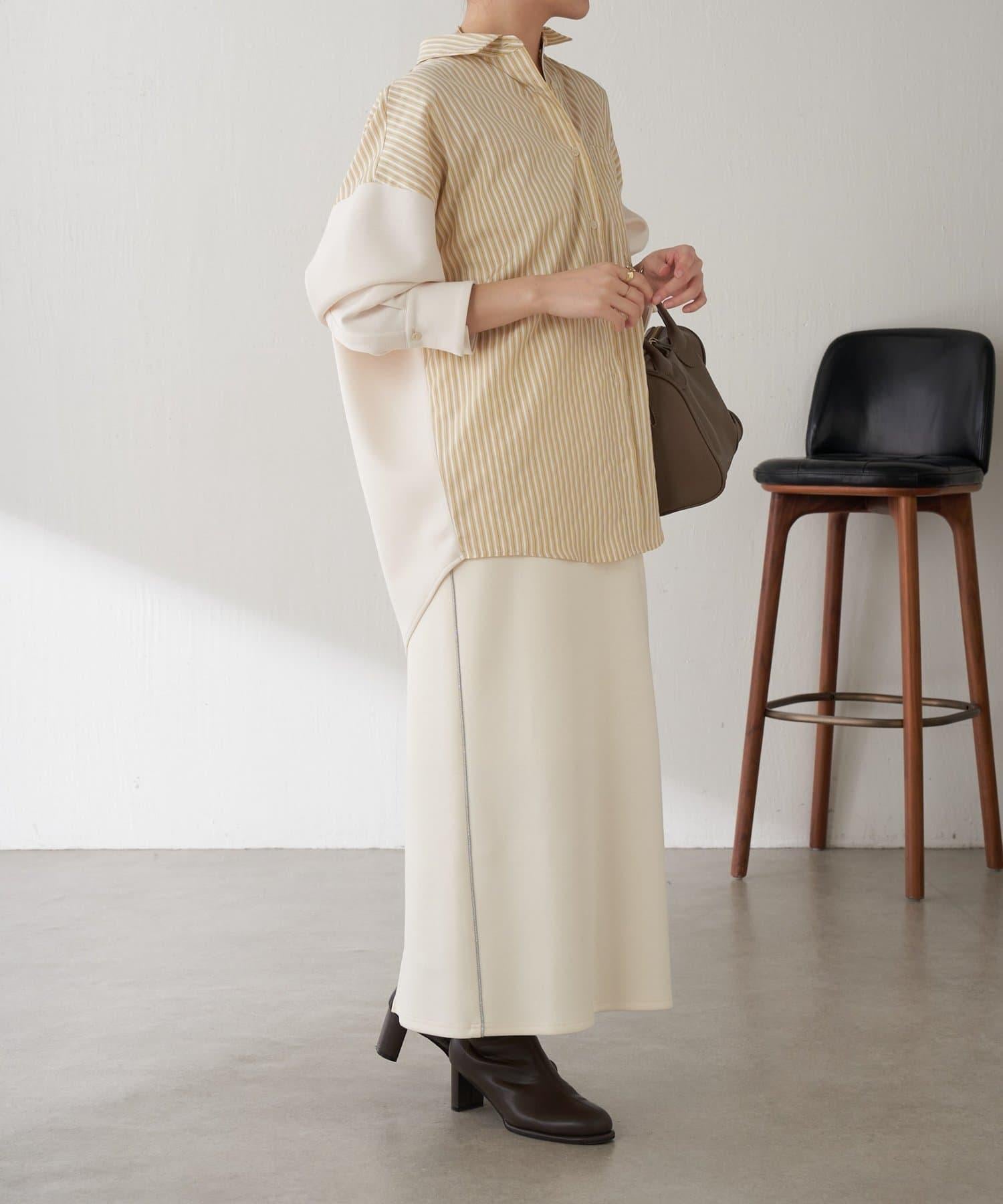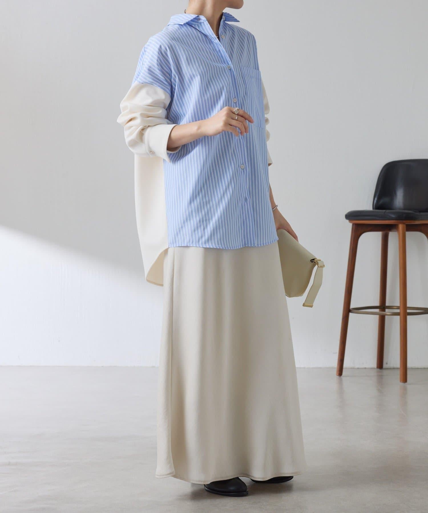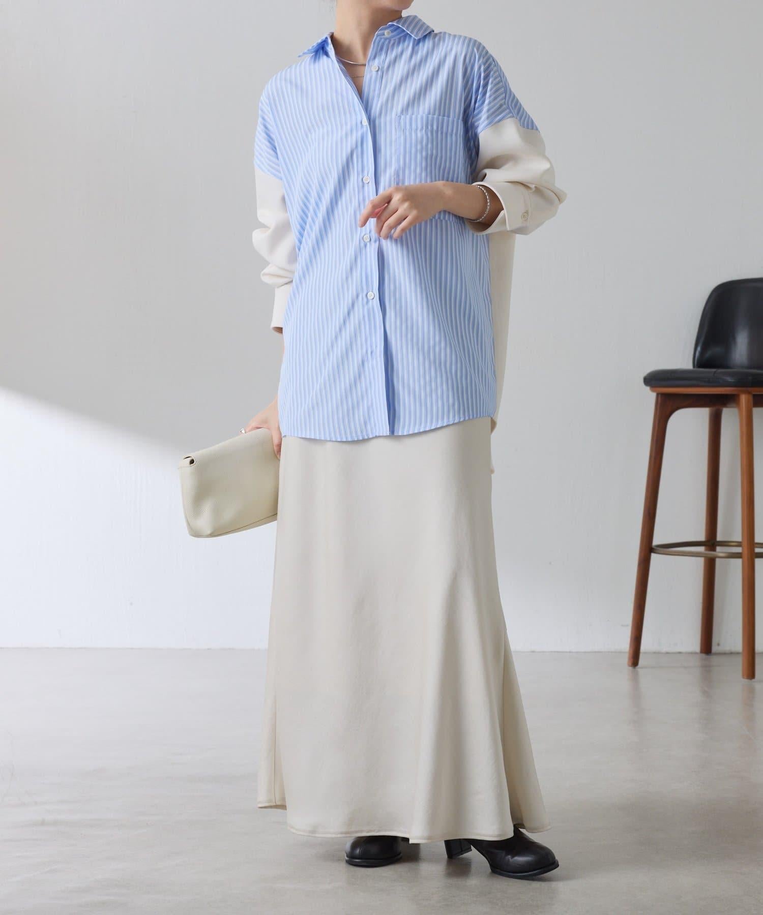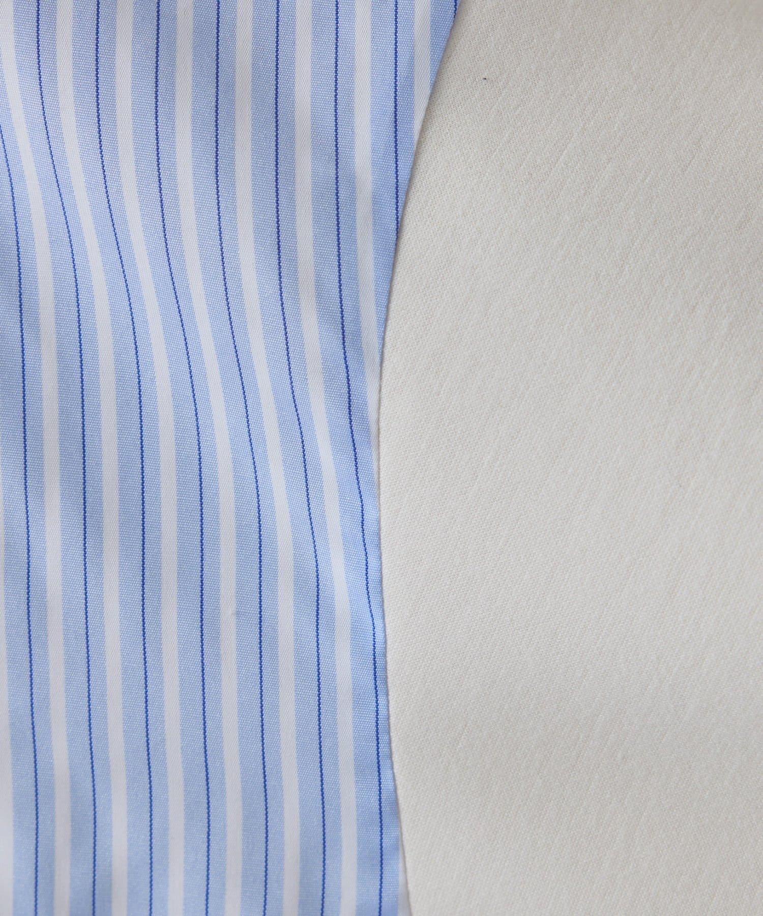 這是一款套頭衫,襯衫和披風的材質對接在一起,看起來很瀟灑。