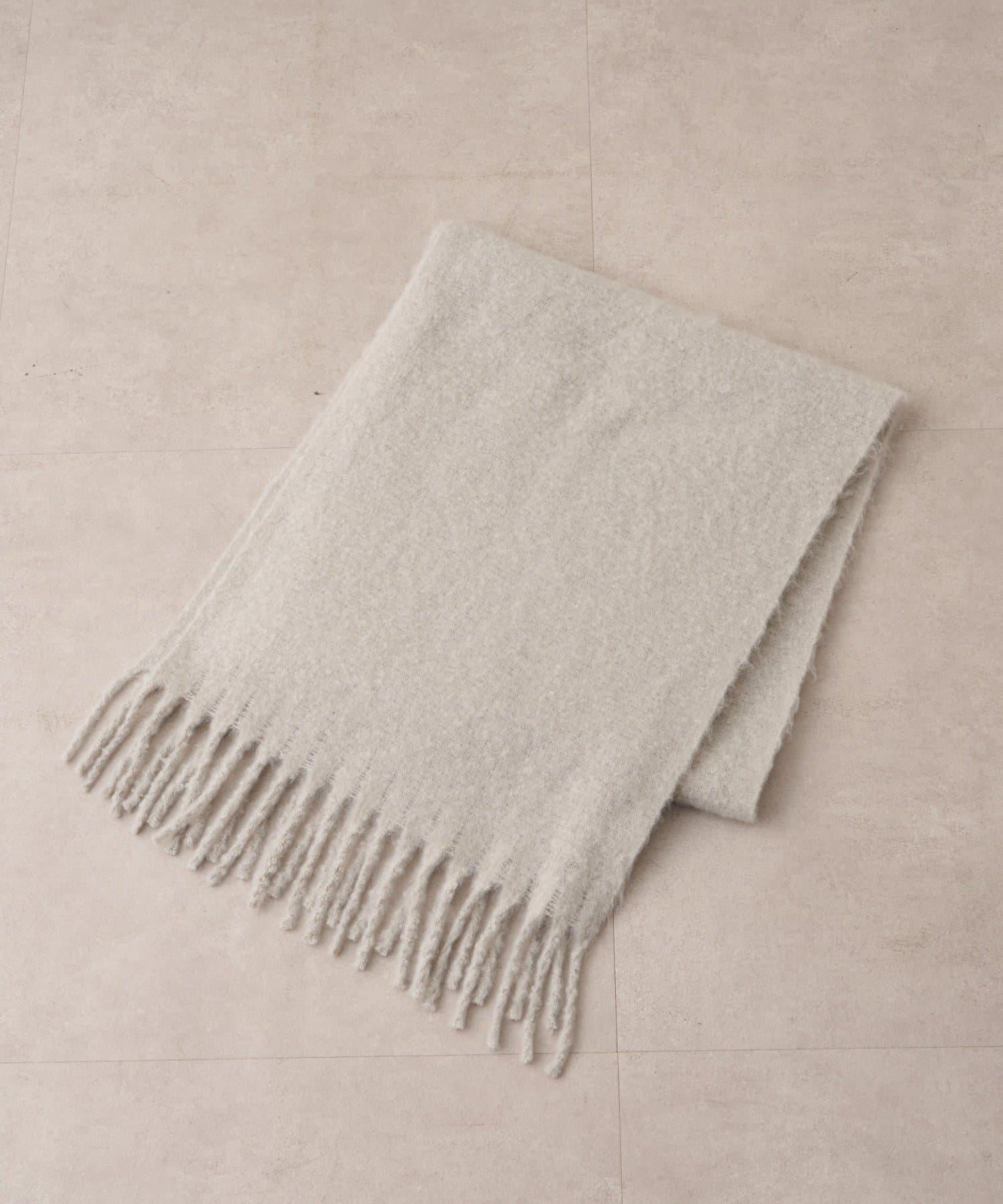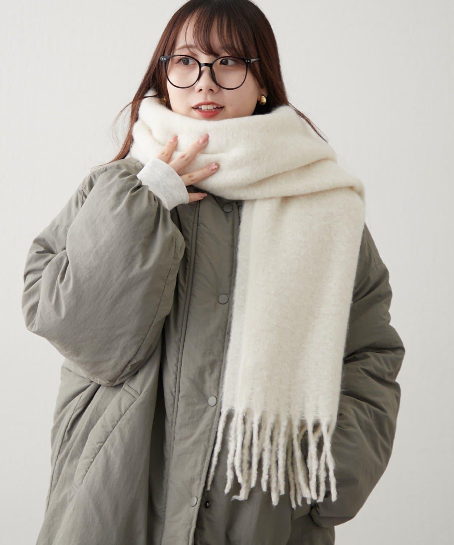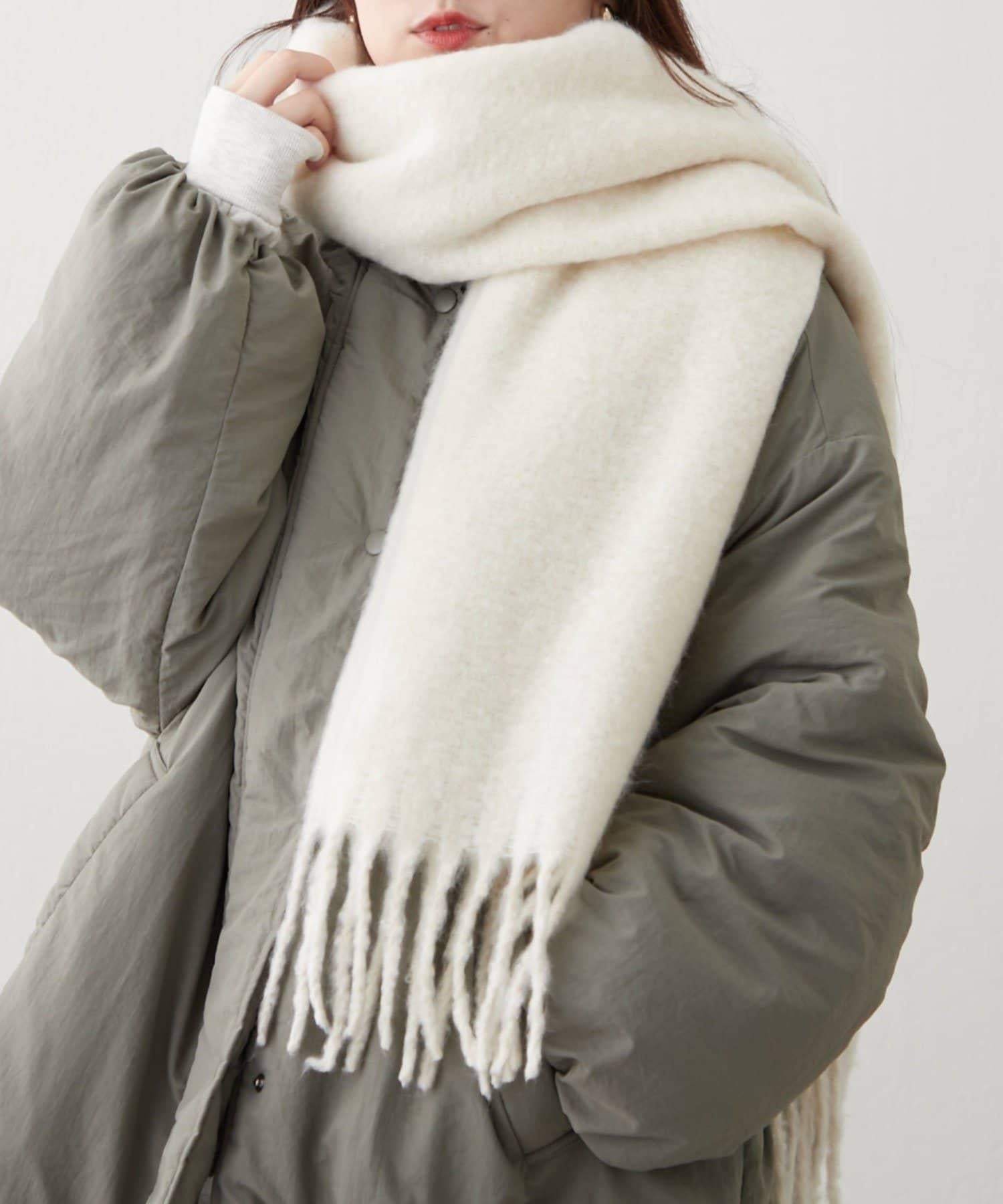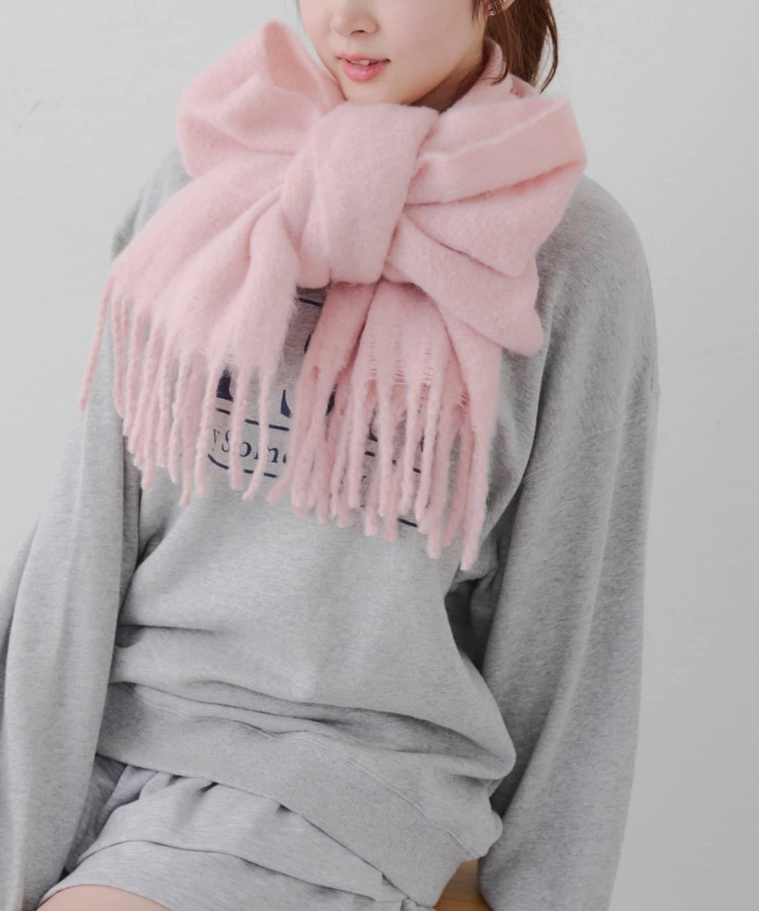 這是一款溫暖而蓬鬆的毛呢圍巾。
