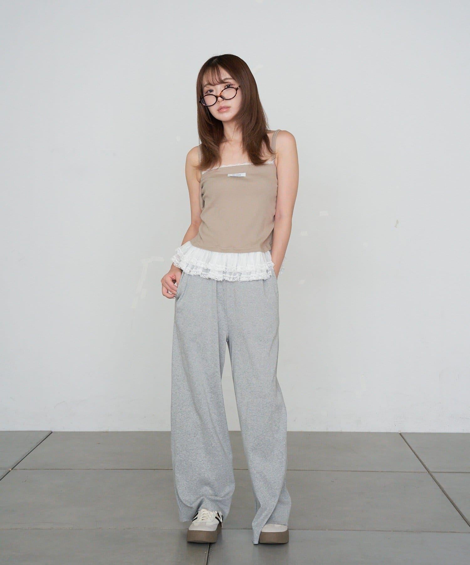 層疊/緞帶/蕾絲/褶邊/吊帶衫/無袖