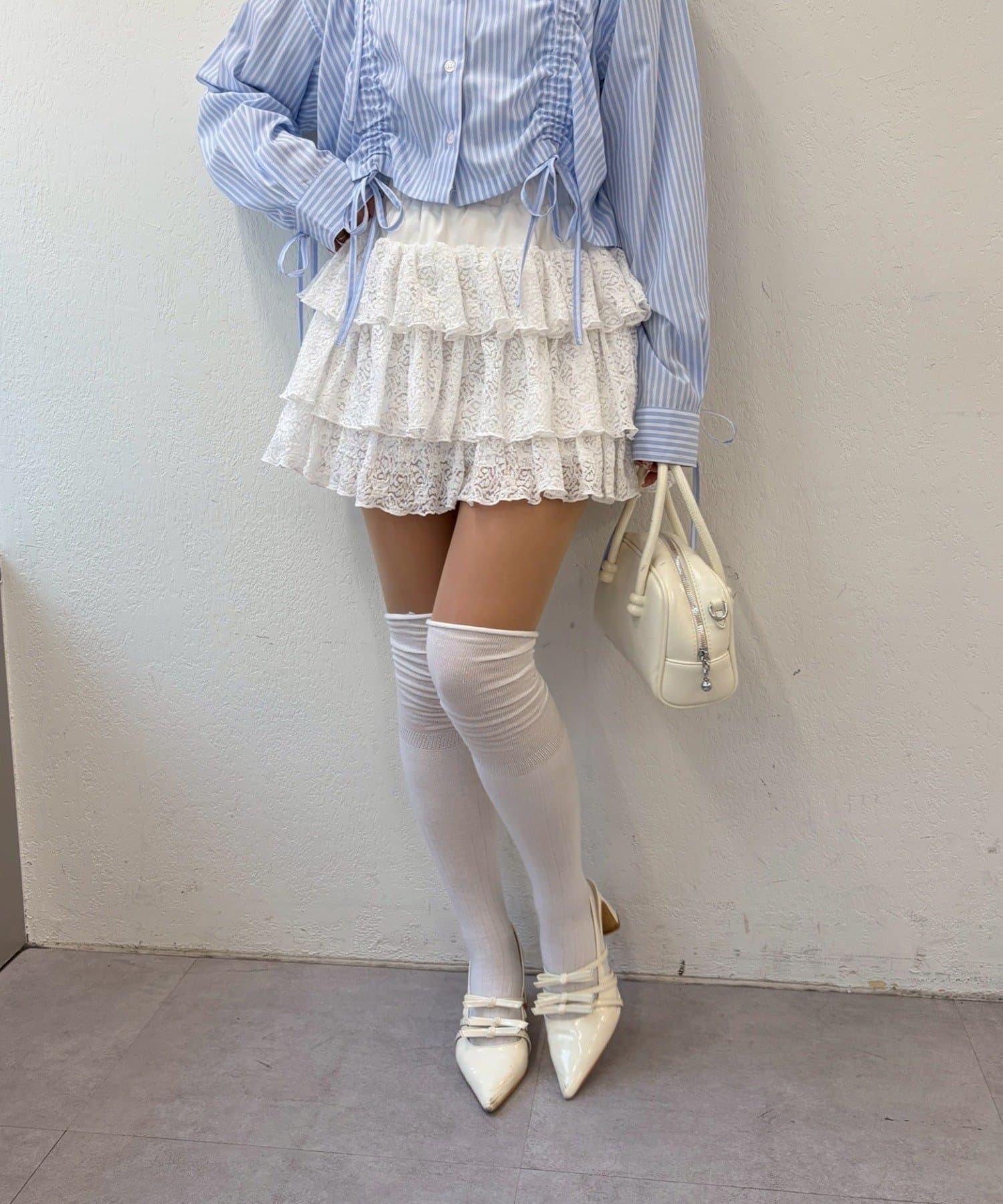 浪漫的三層流蘇裙,採用奢華精緻的蕾絲製成。
