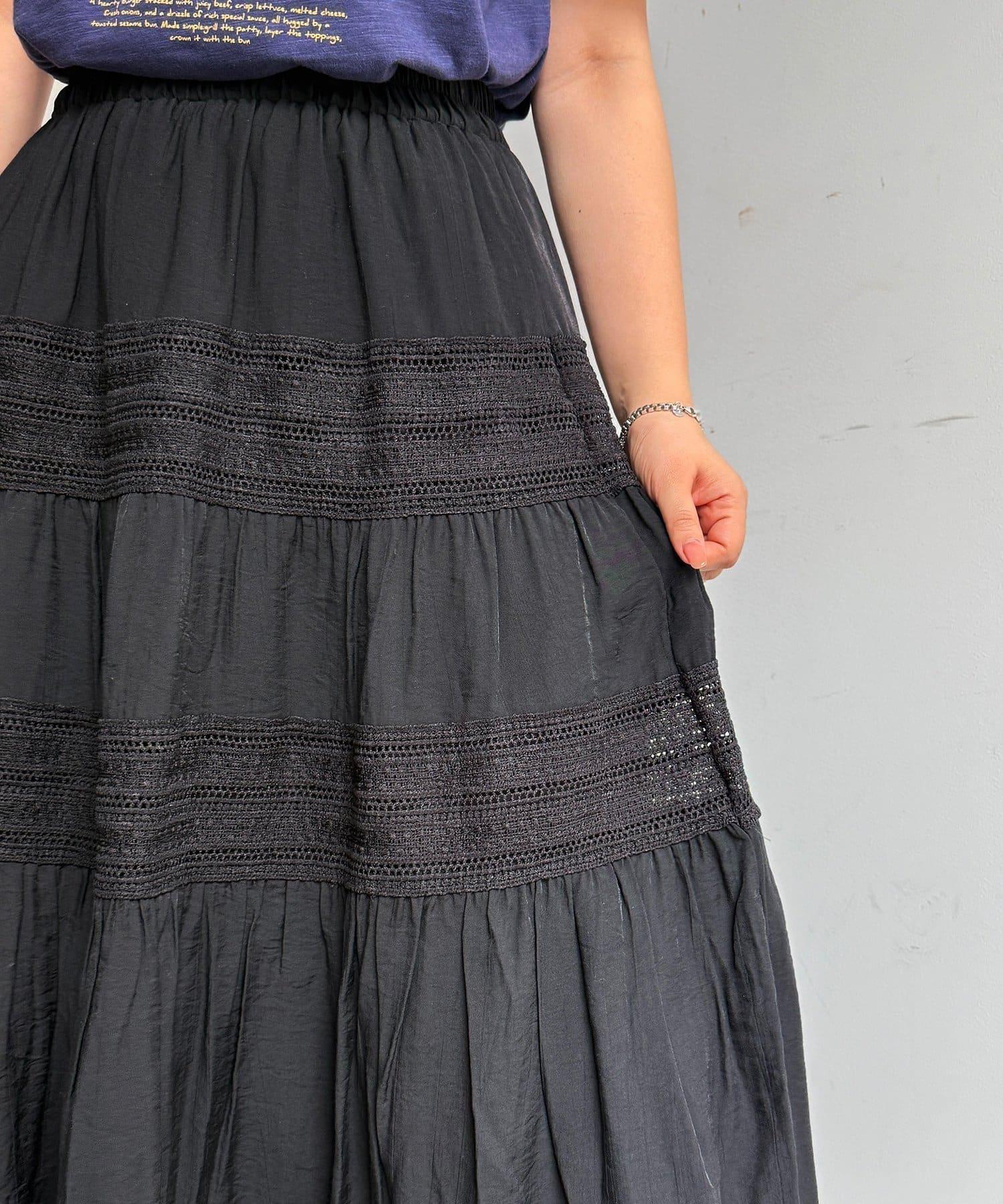 分段刺繡蕾絲半身裙
