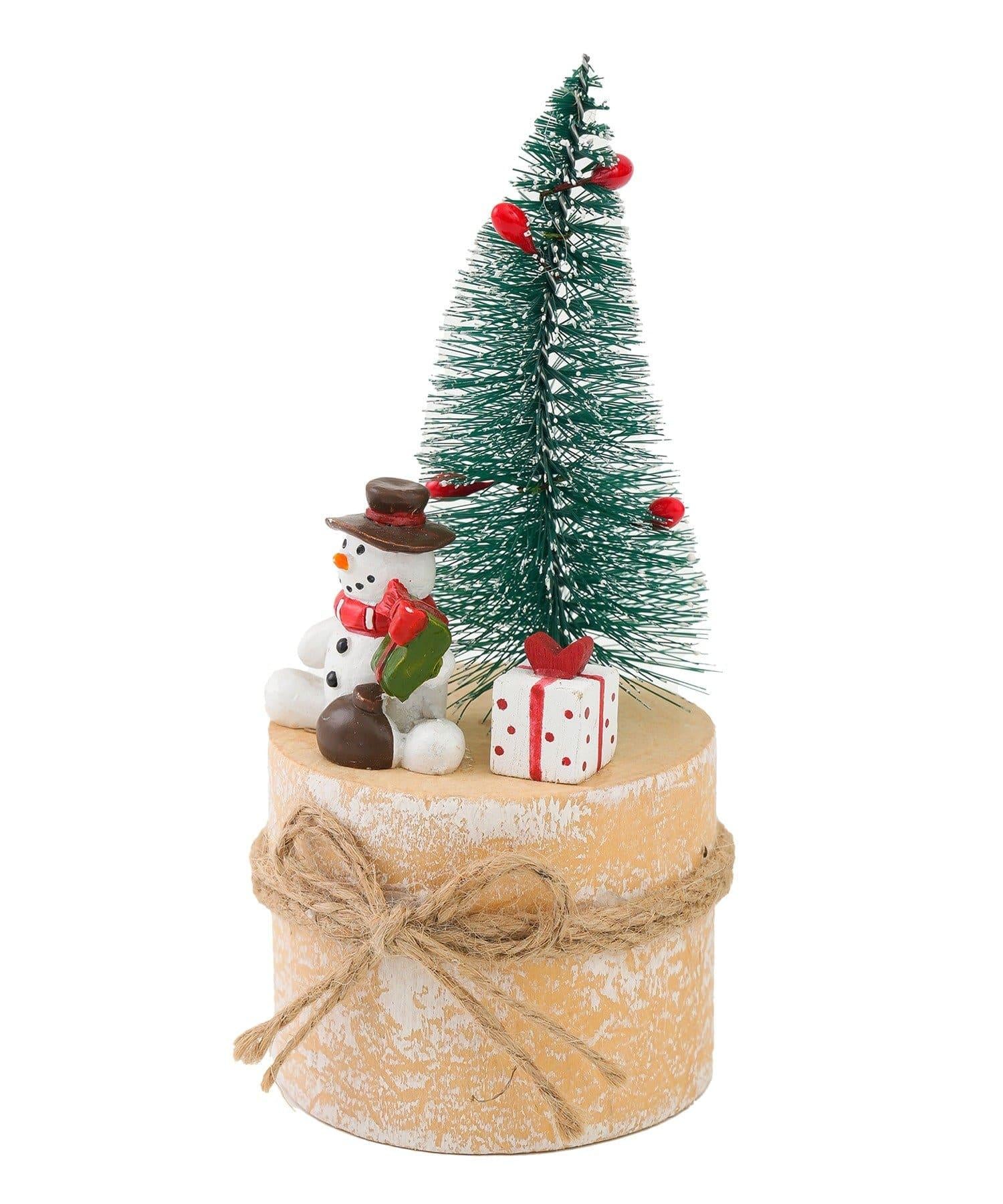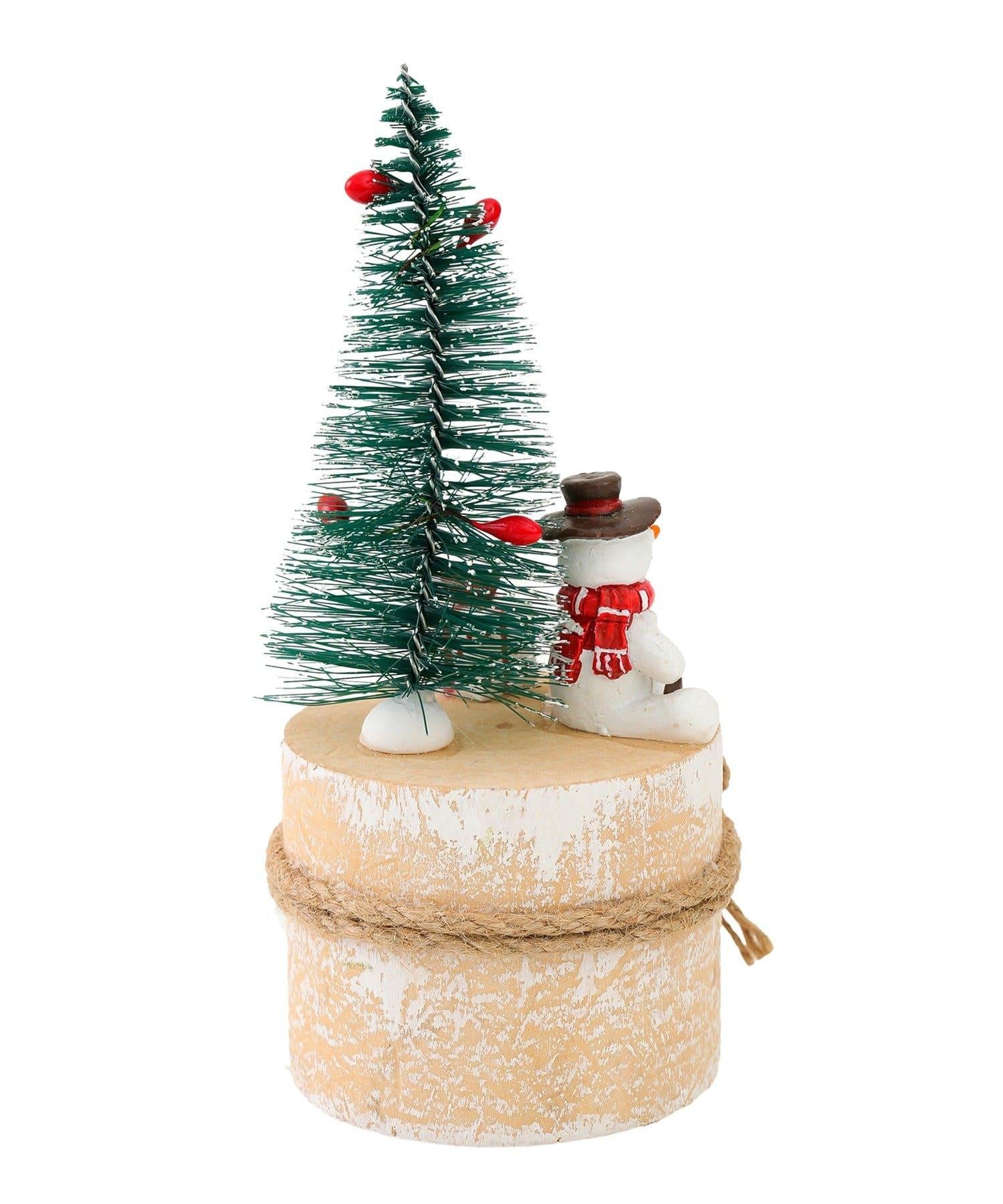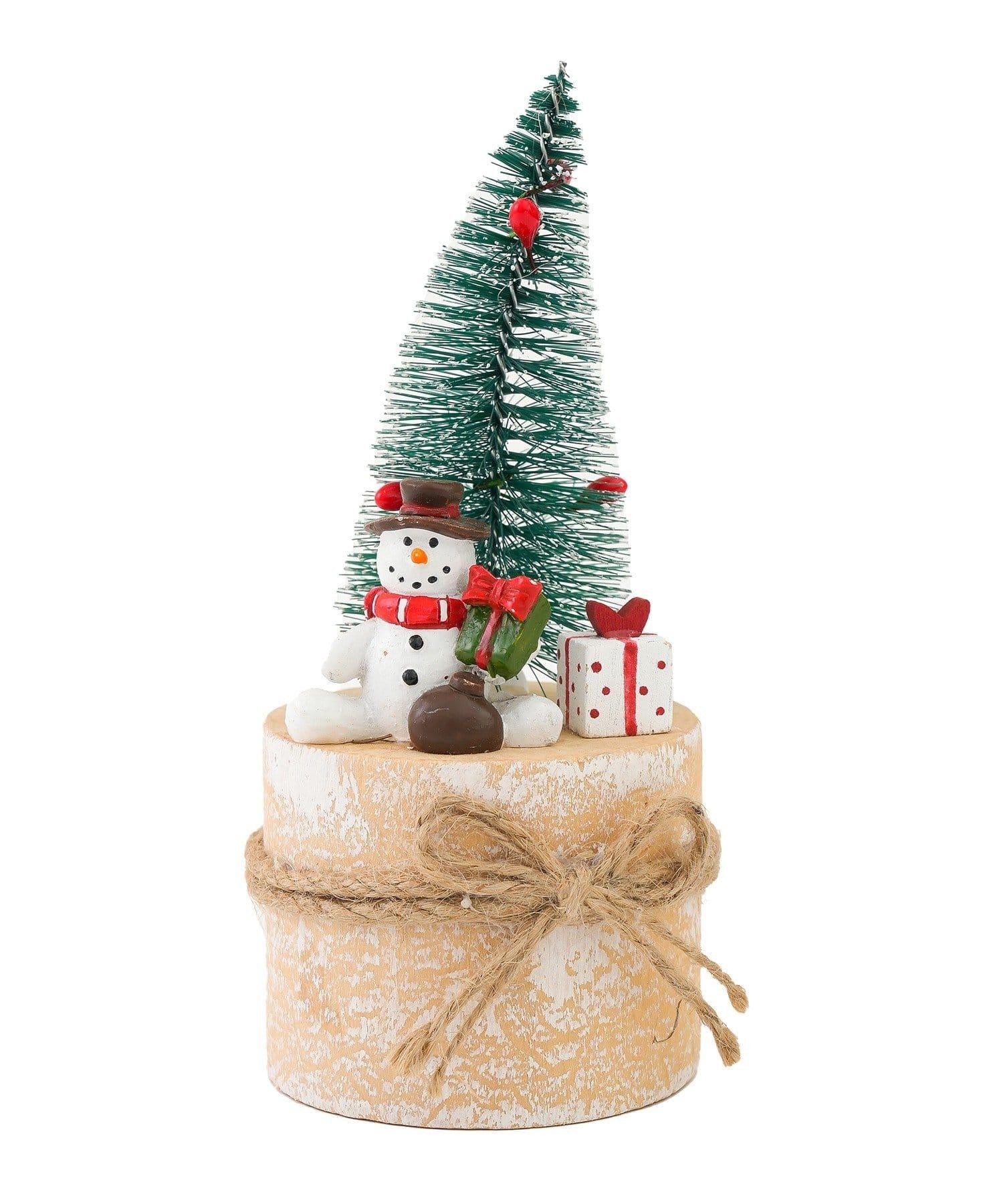 樹樁底座上的雪人和樹的組合物品,充滿了大自然的溫暖。