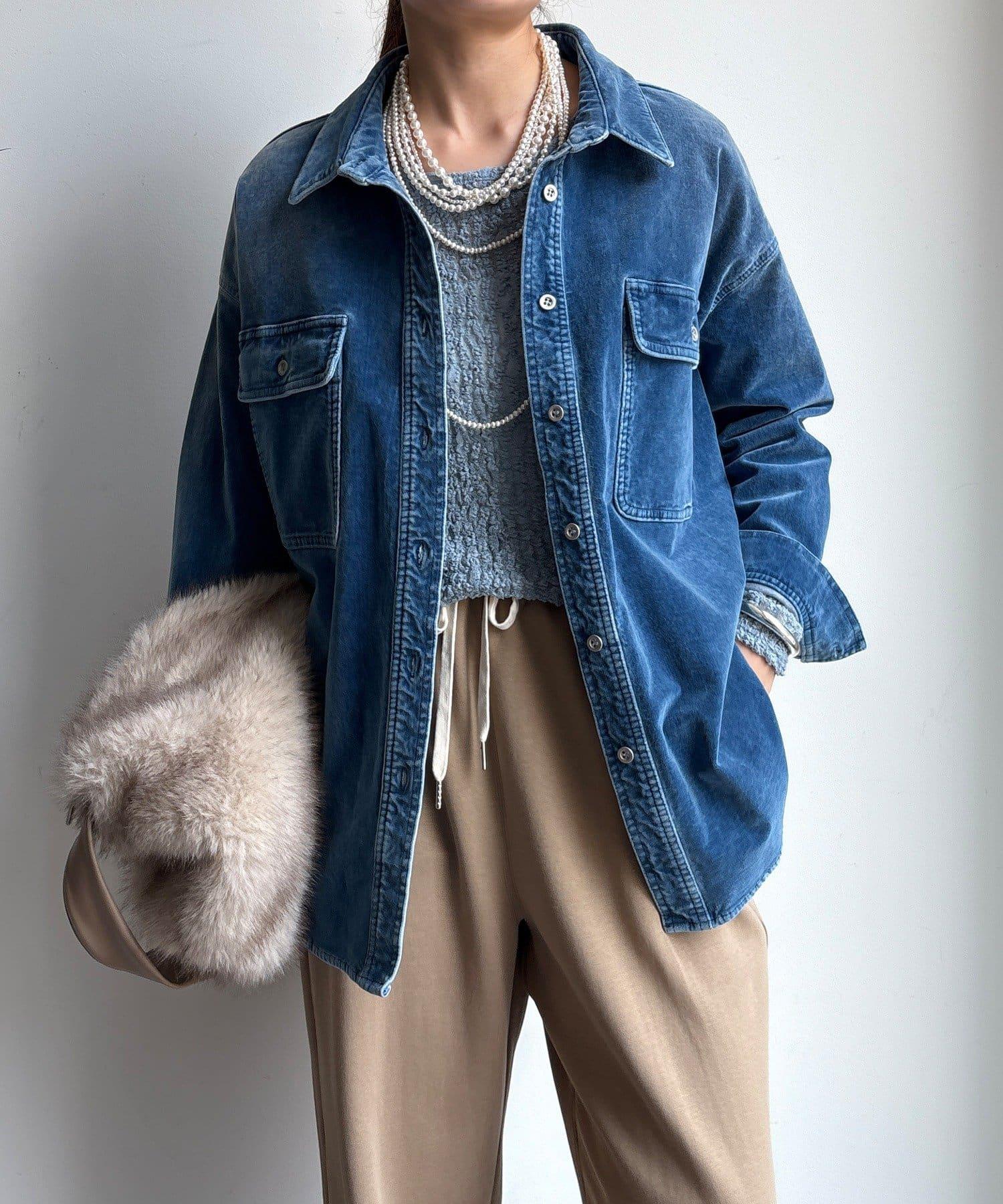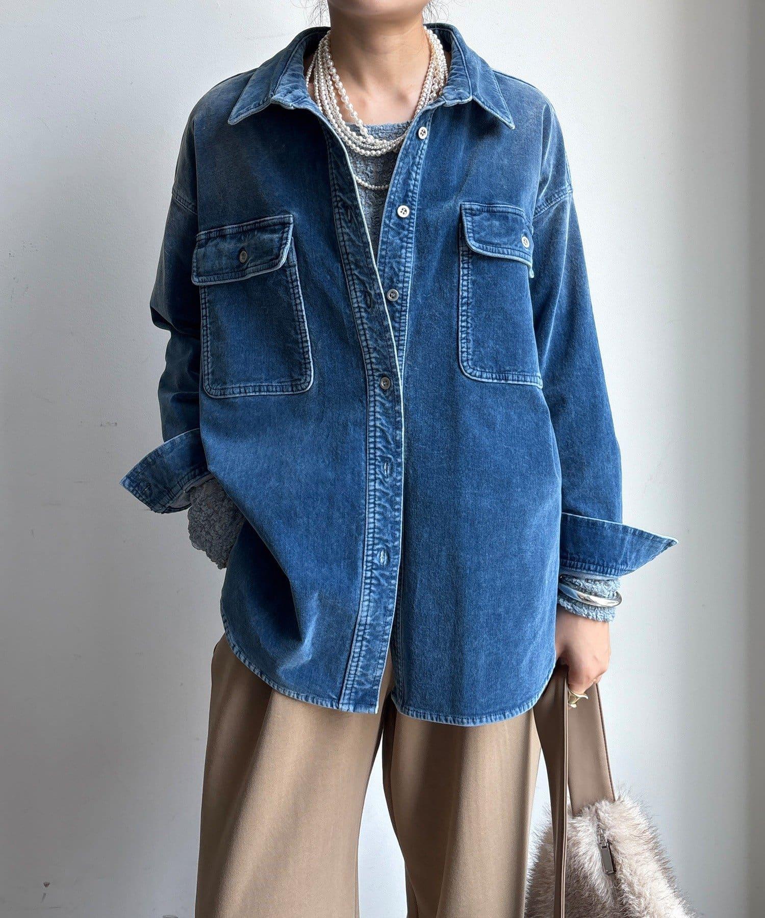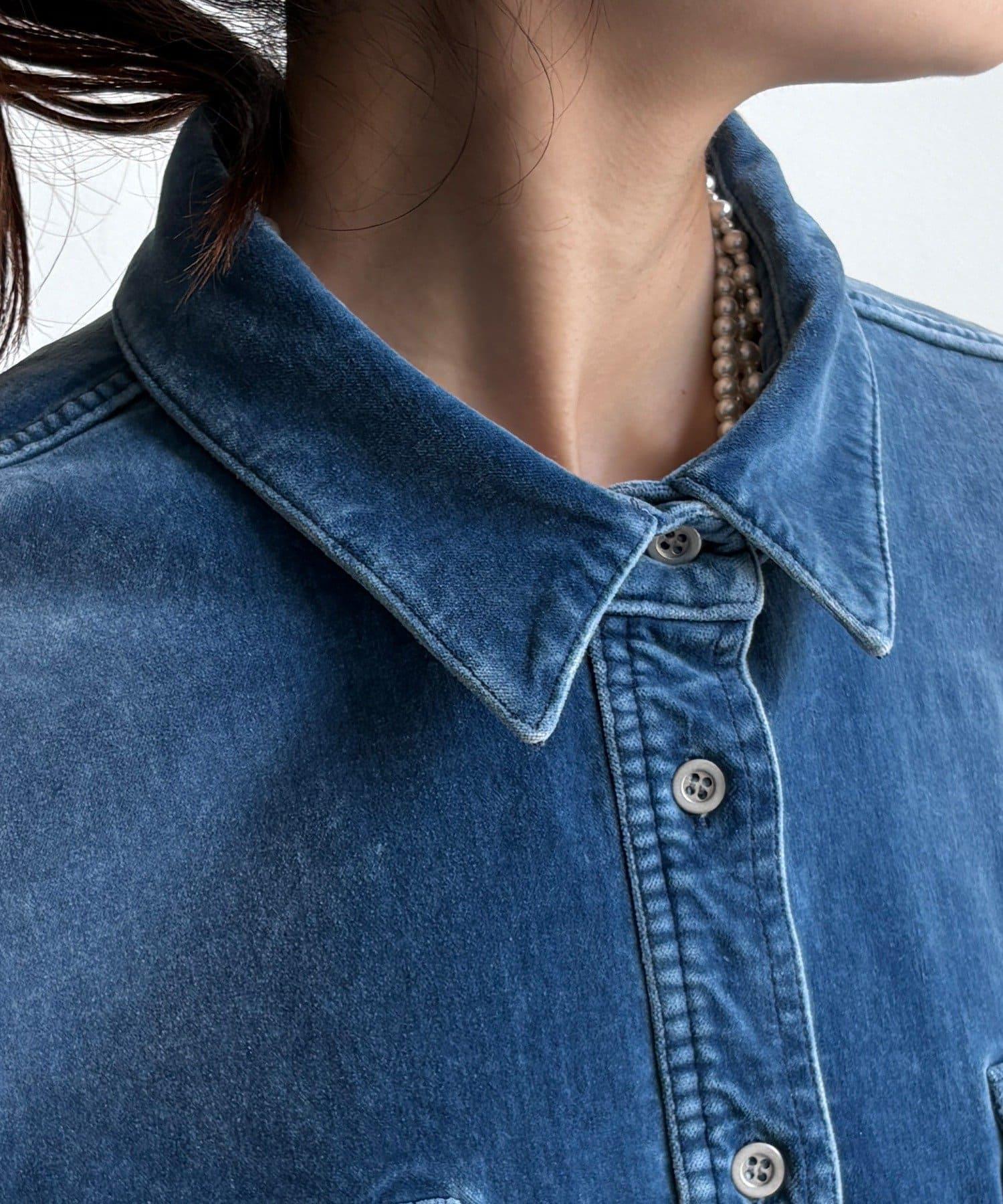 採用表面蓬鬆的棉質面料製成。牛仔襯衫的面料質地給人耳目一新的感覺,在其他地方並不多見。