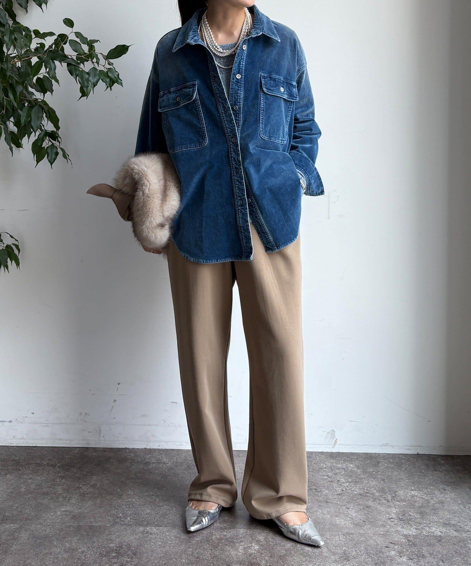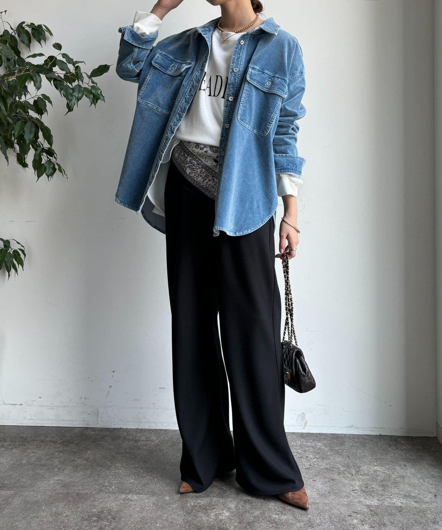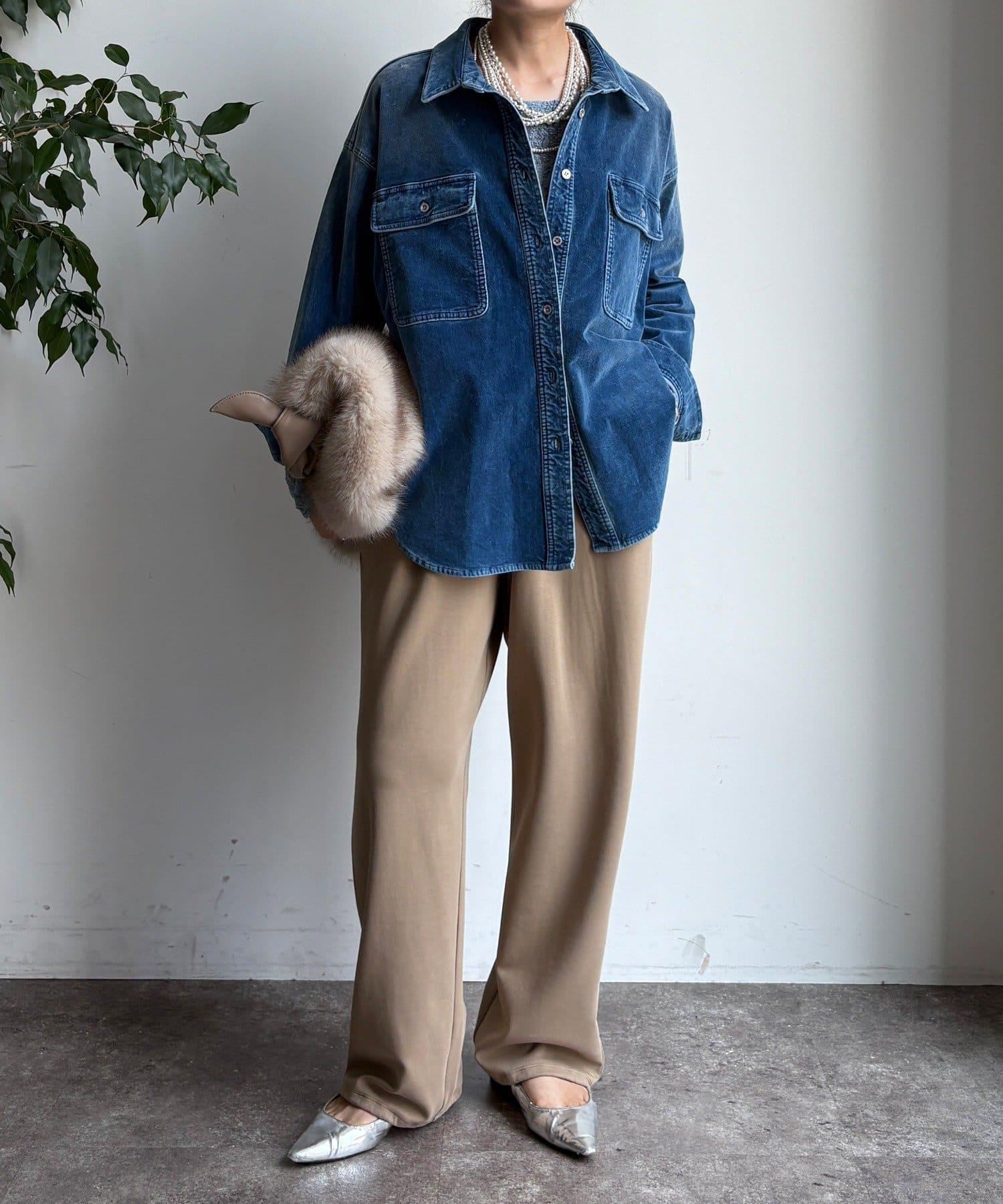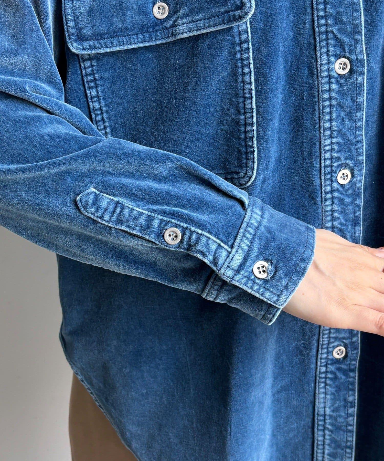 採用表面蓬鬆的棉質面料製成。牛仔襯衫的面料質地給人耳目一新的感覺,在其他地方並不多見。