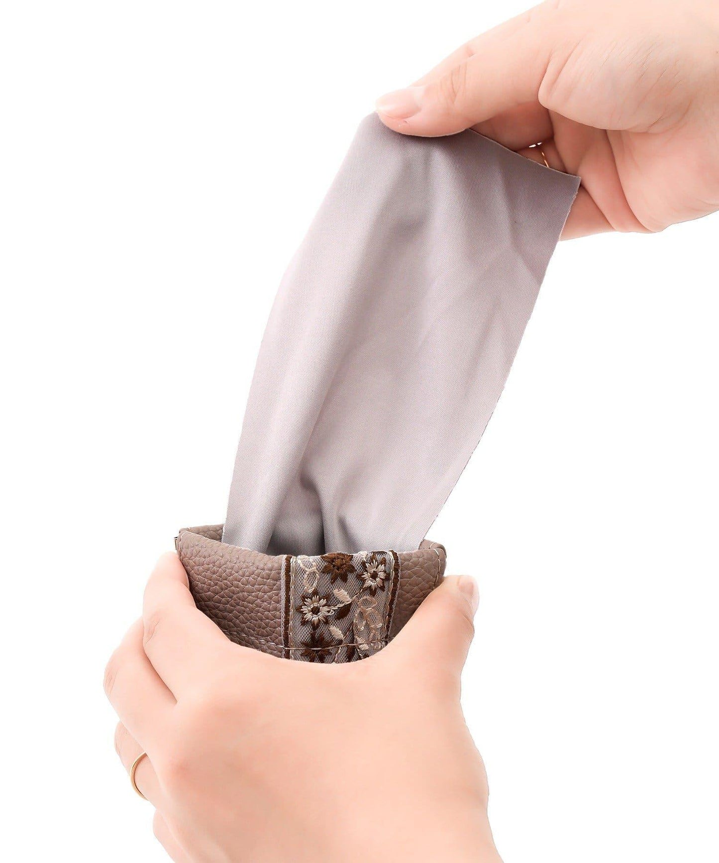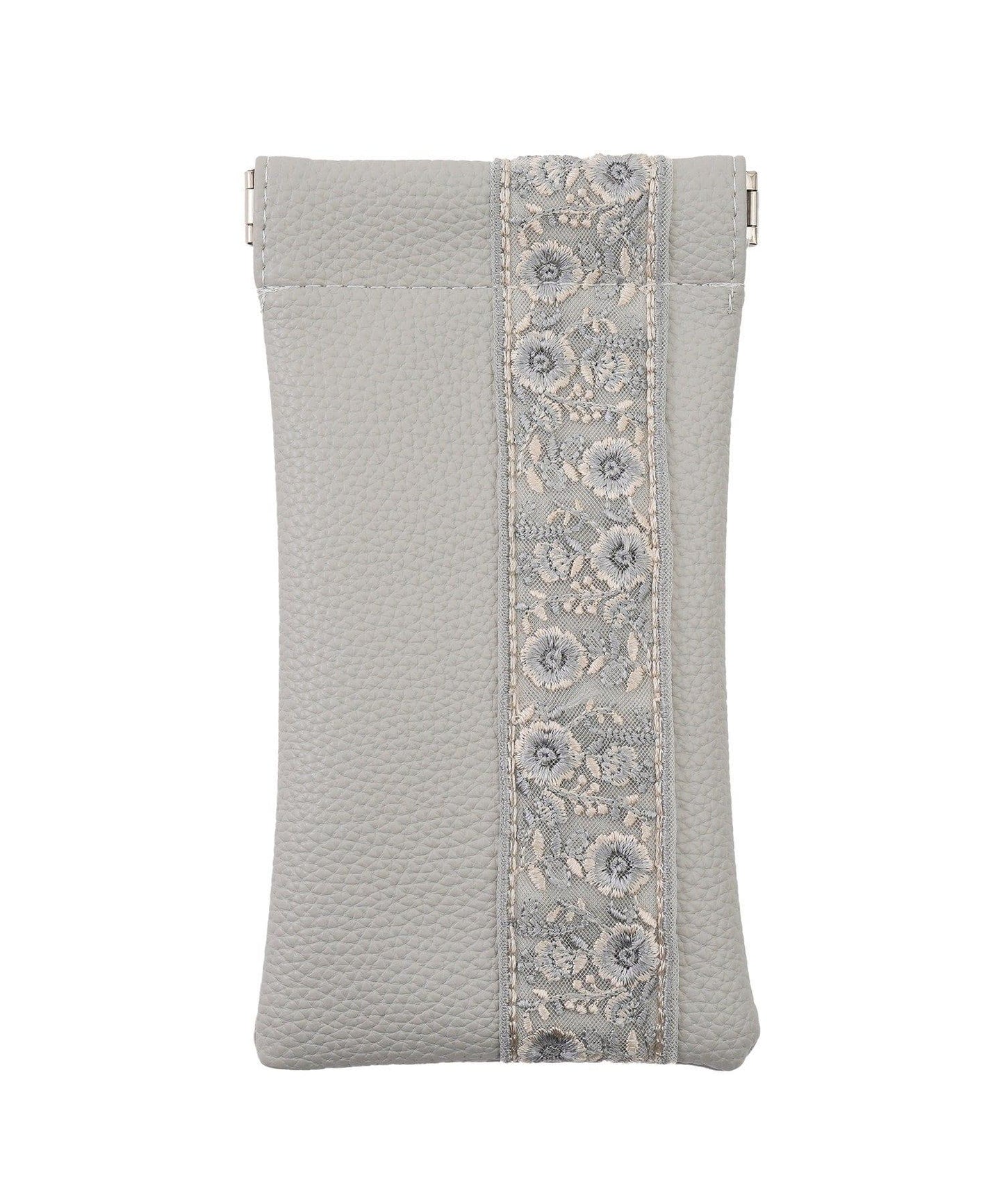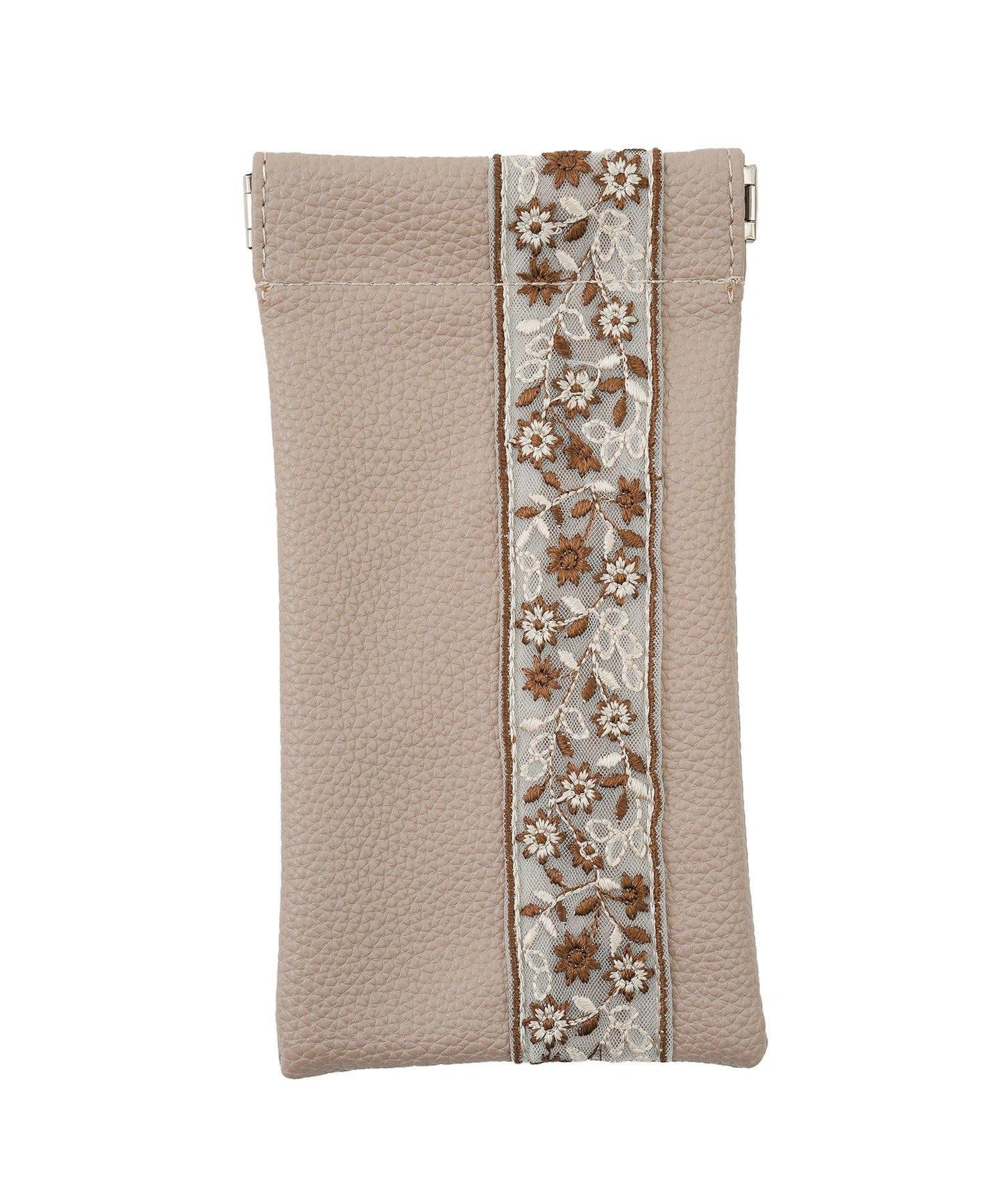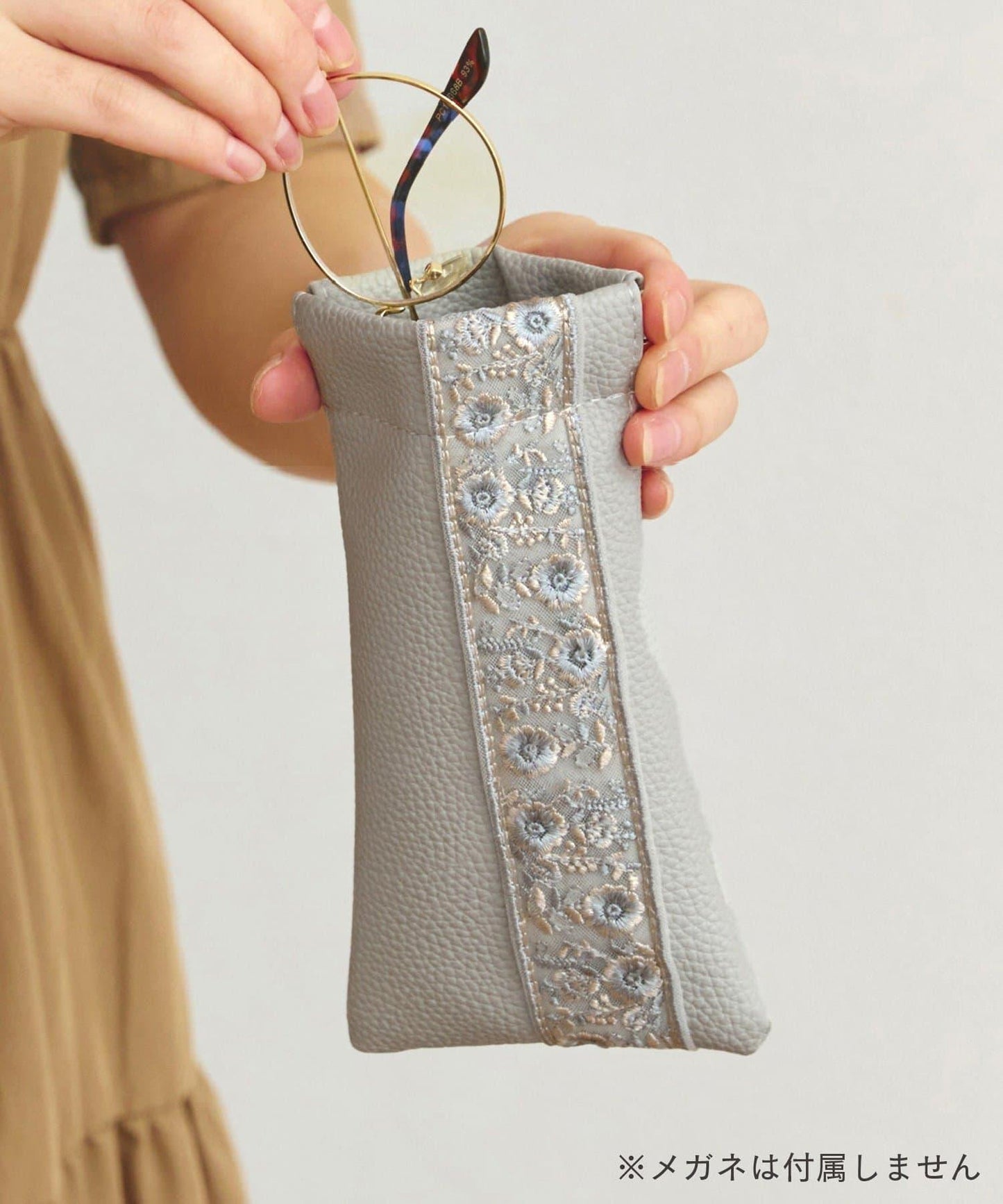 仿皮眼鏡袋上繡有精緻的絲帶,是優雅的點綴。