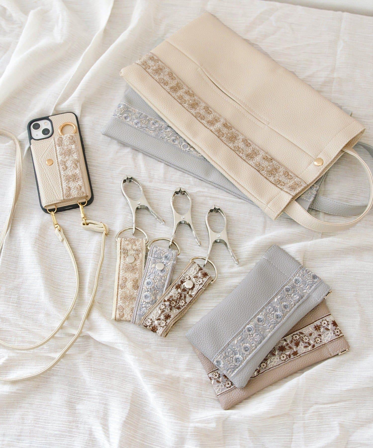 刺繍リボンメガネポーチクロス付き