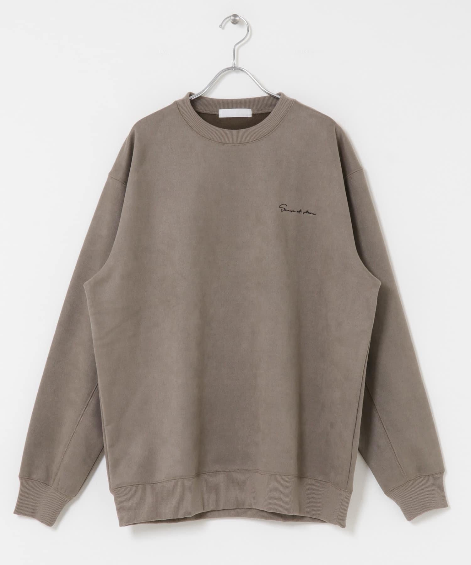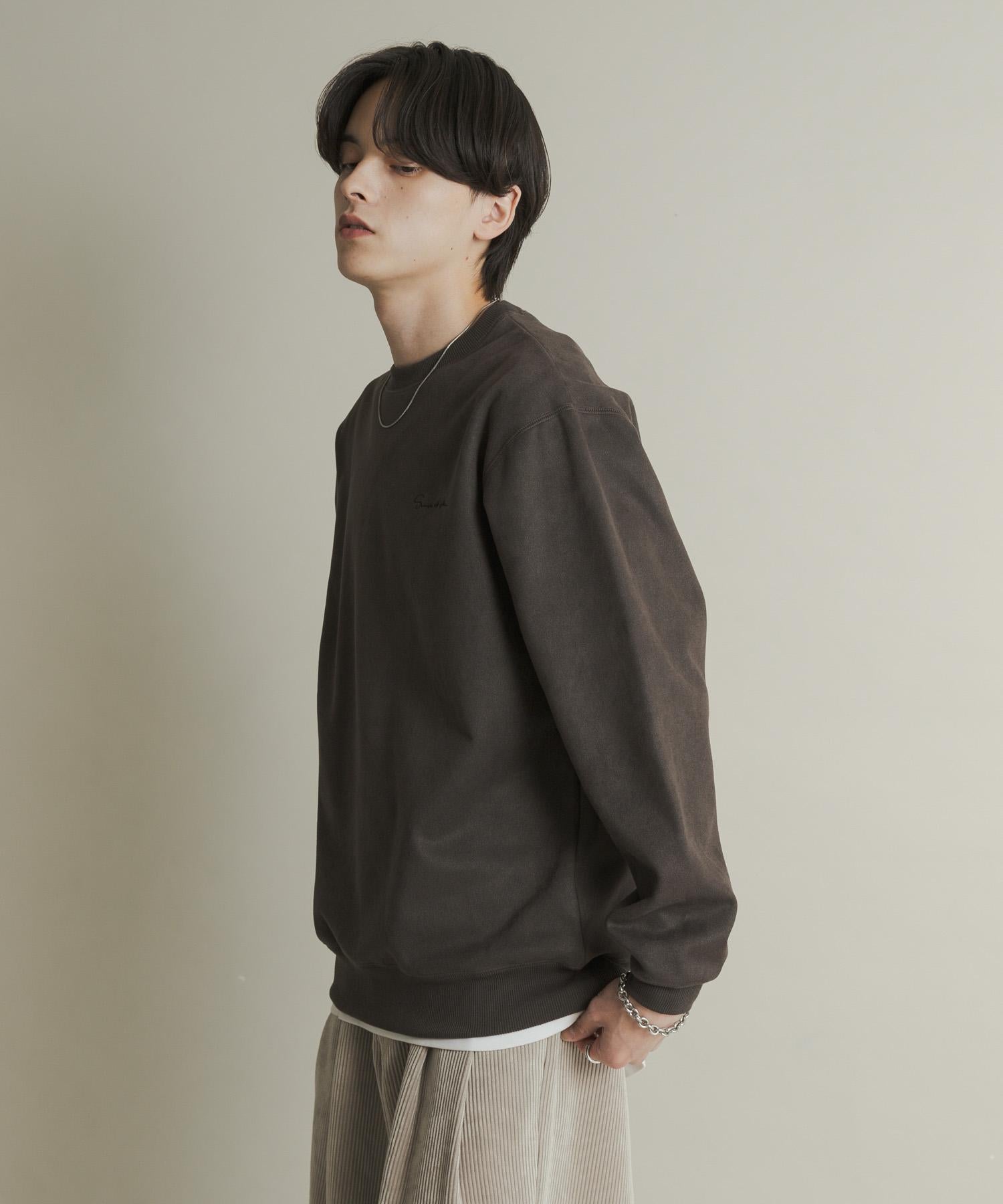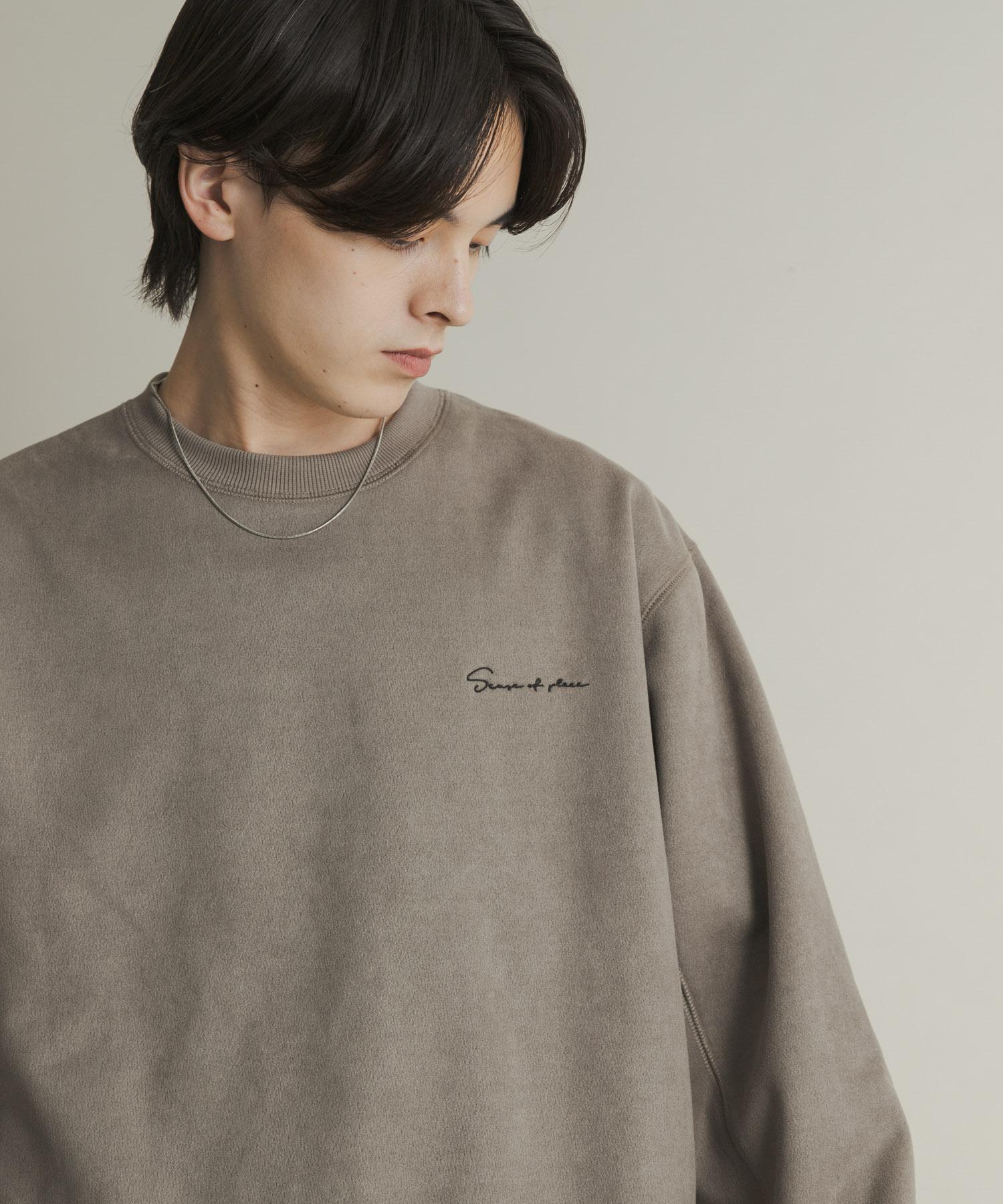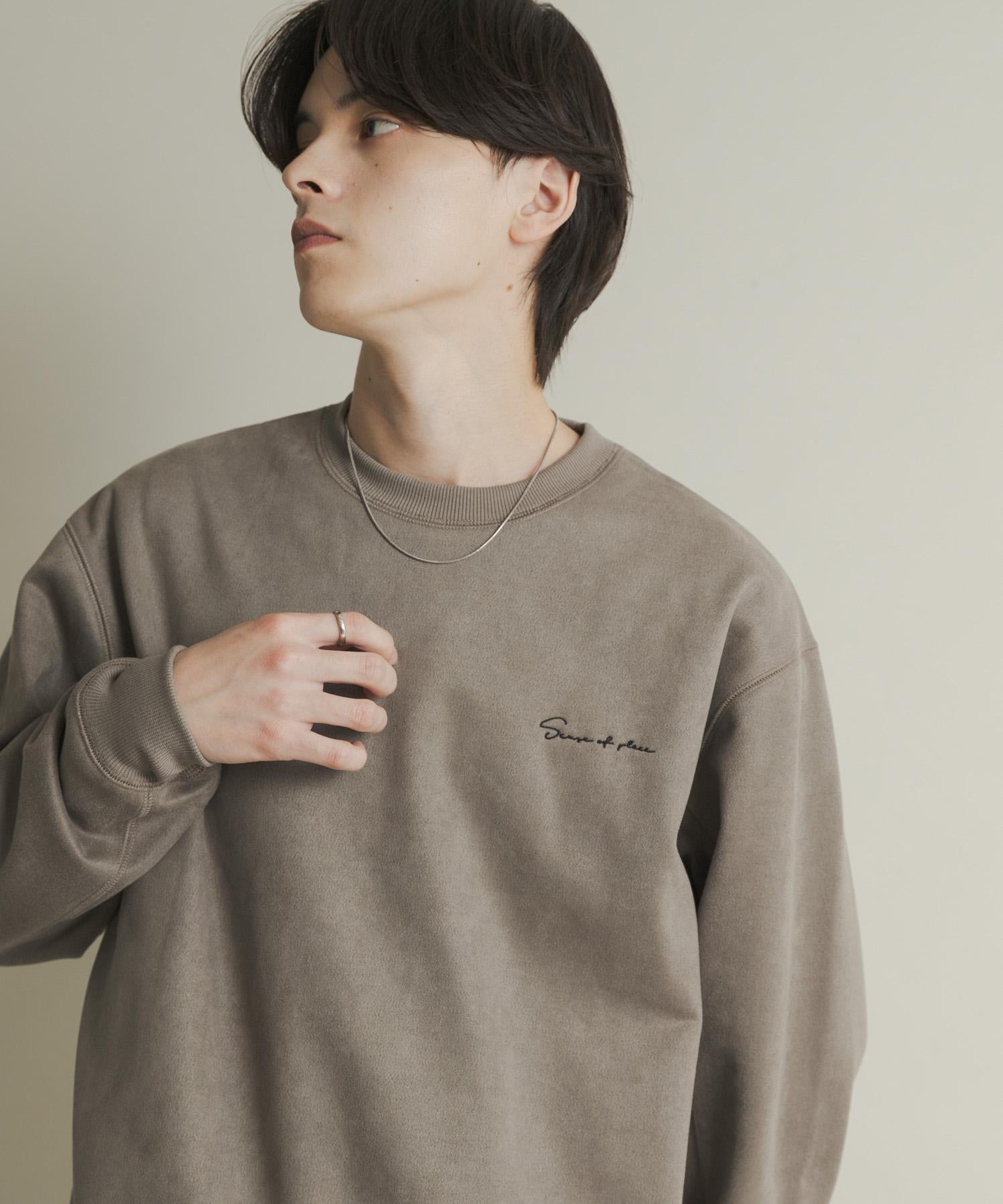 刺繡仿麂皮圓領衛衣