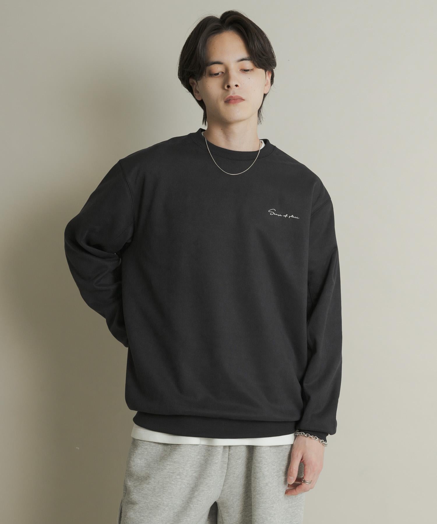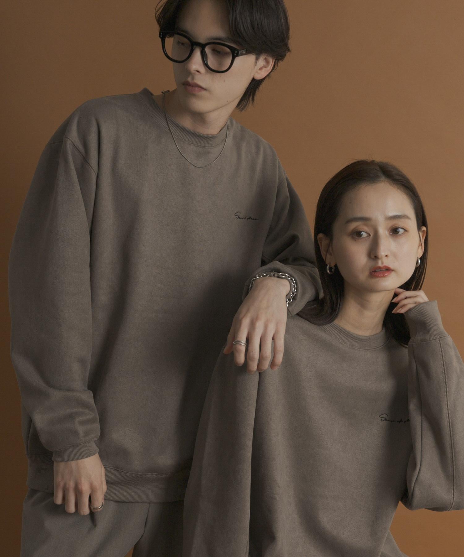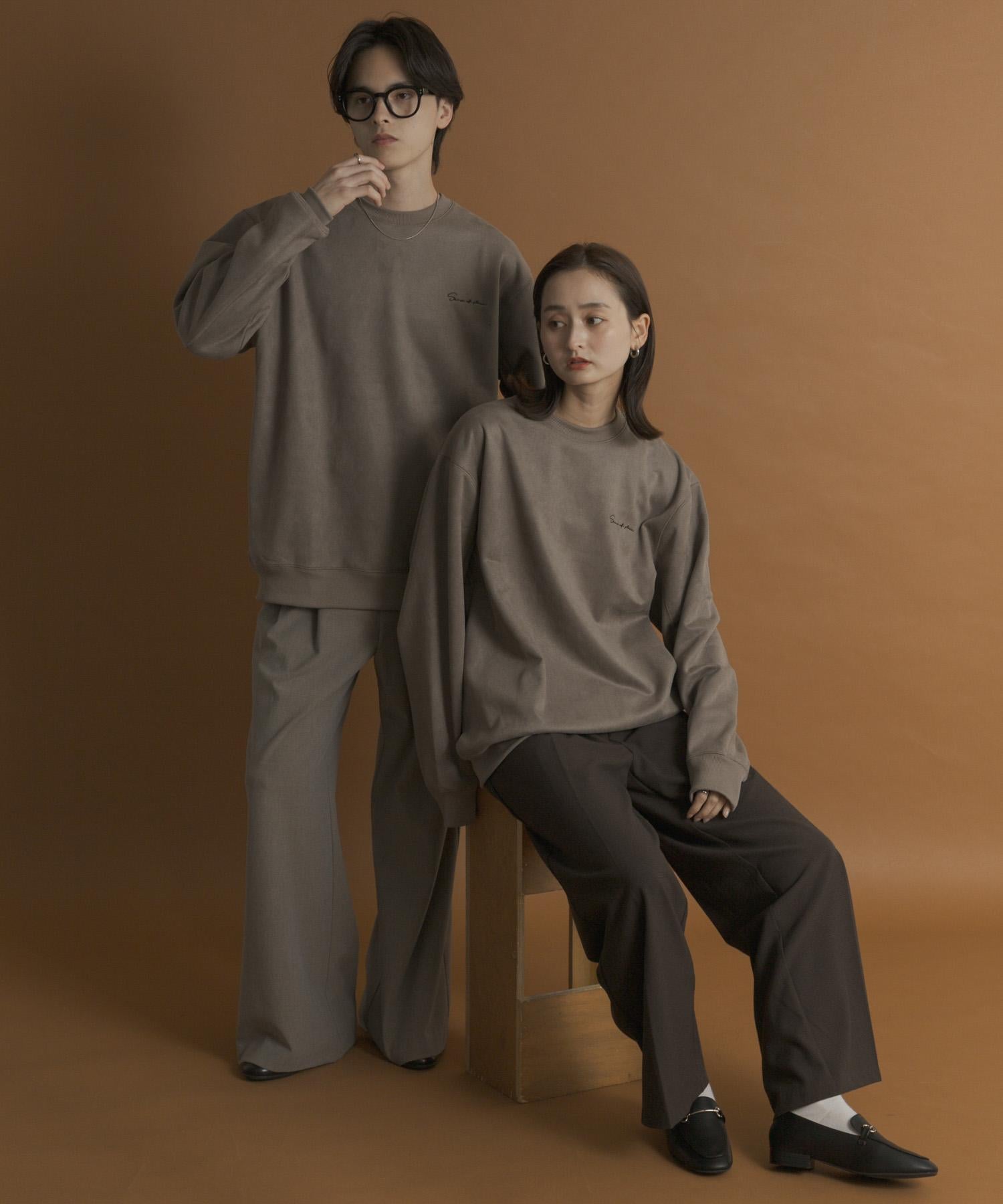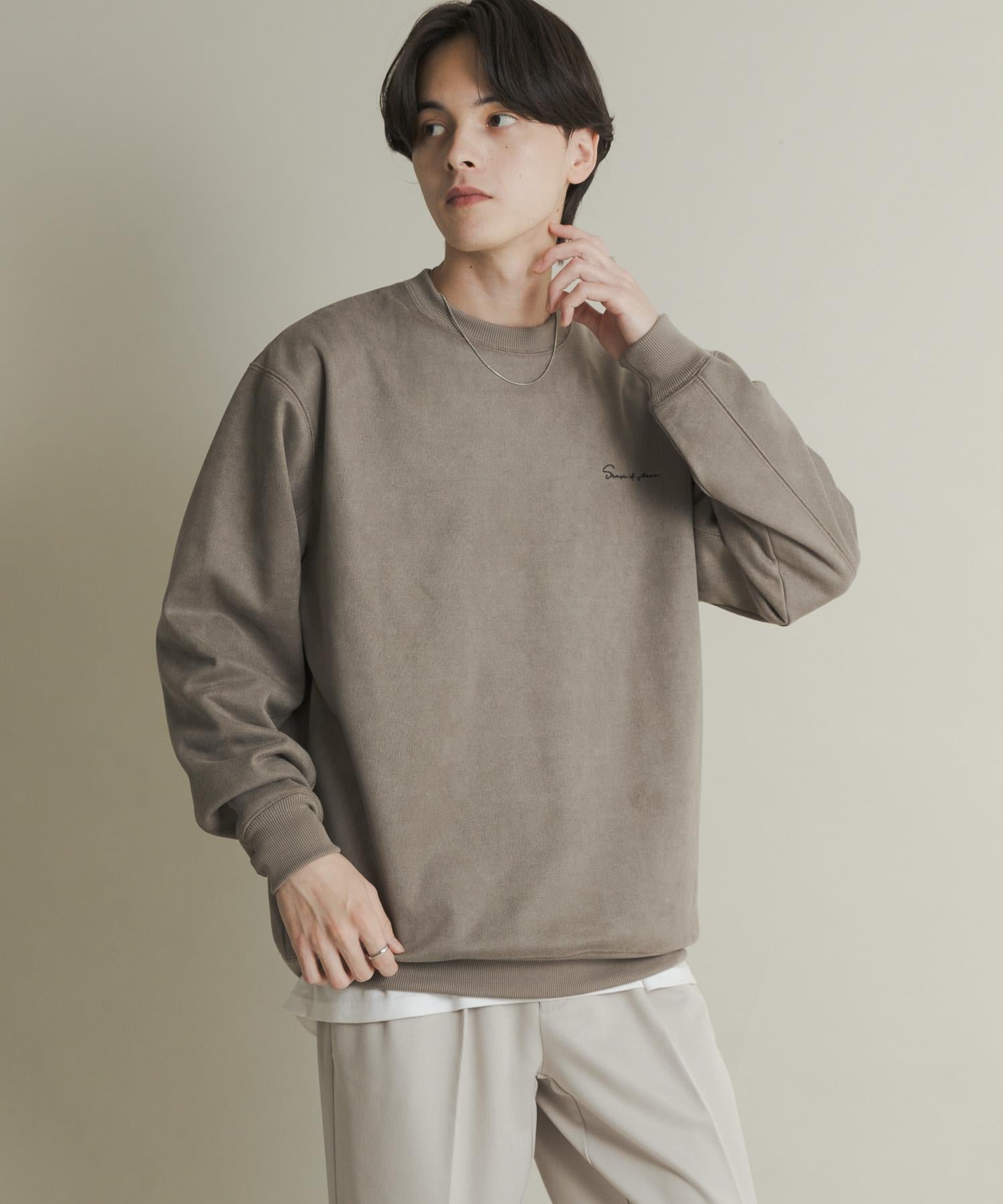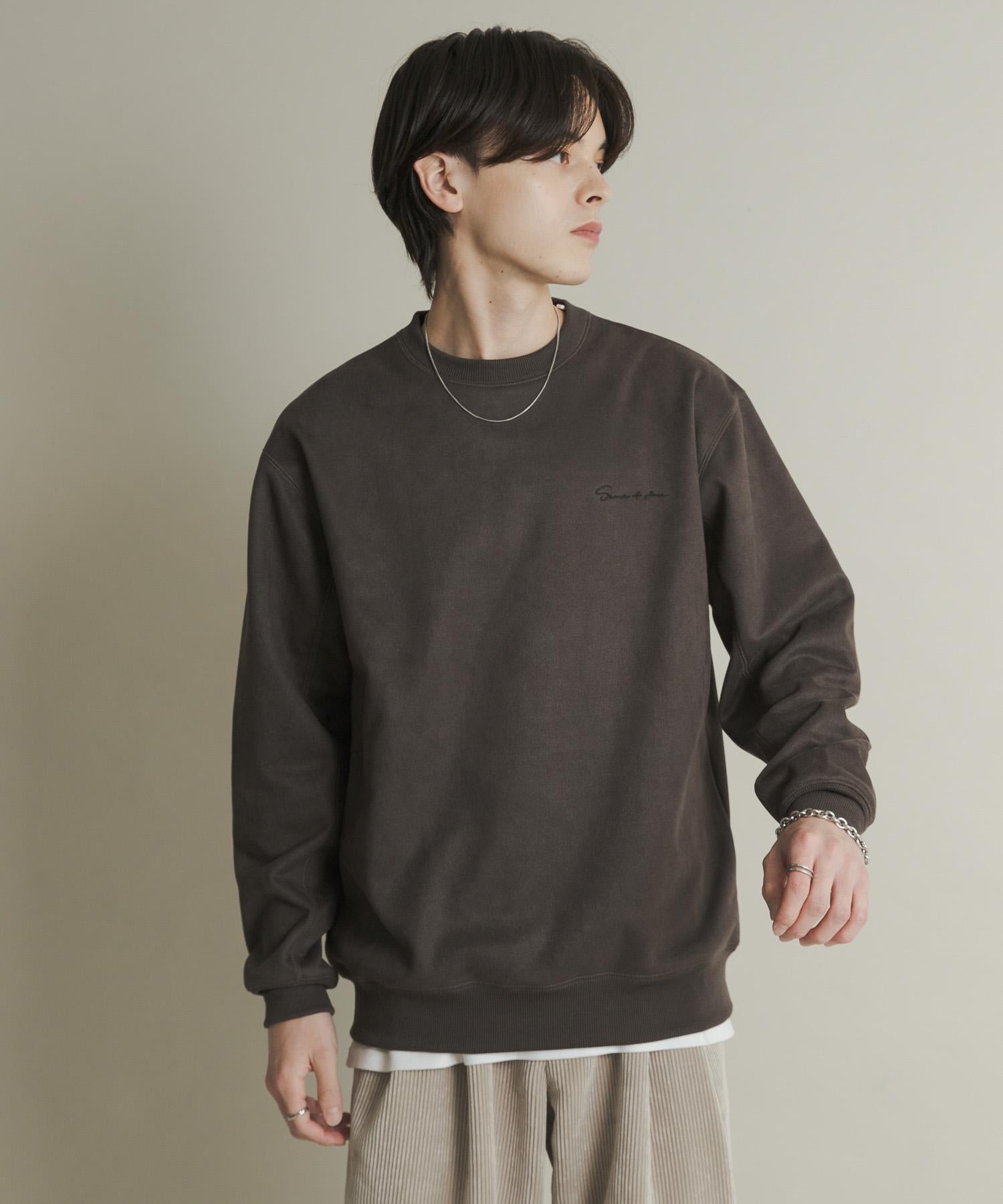 刺繡仿麂皮圓領衛衣