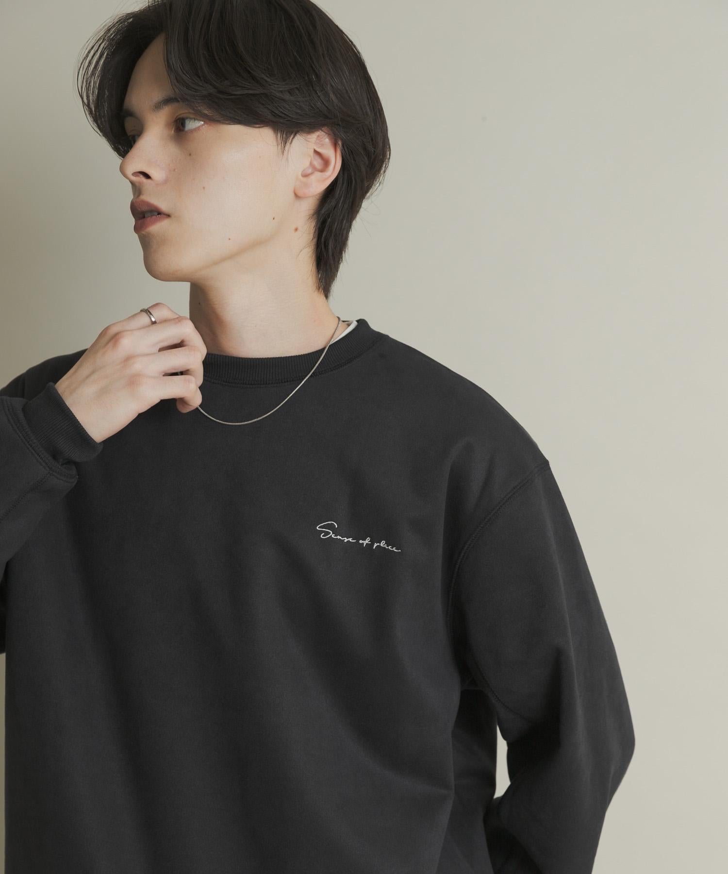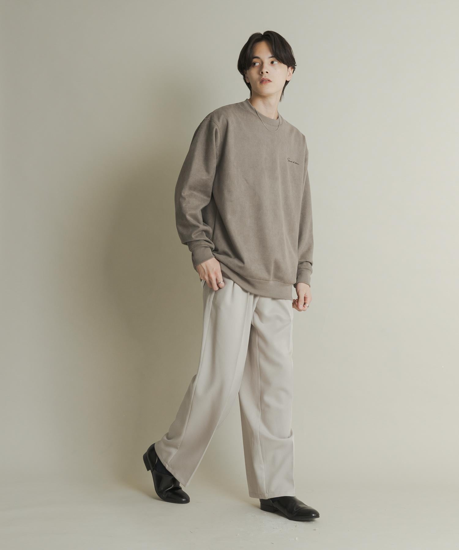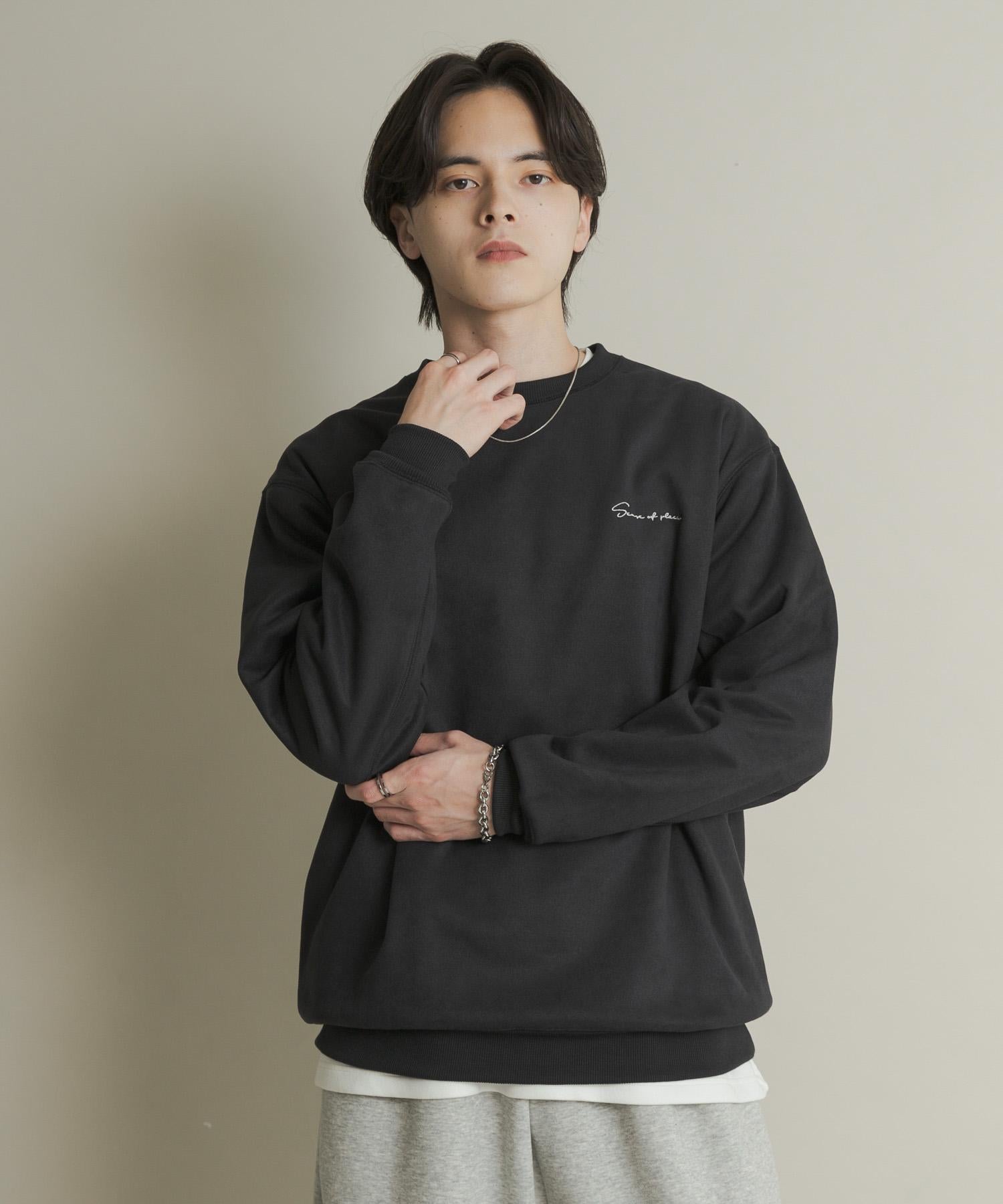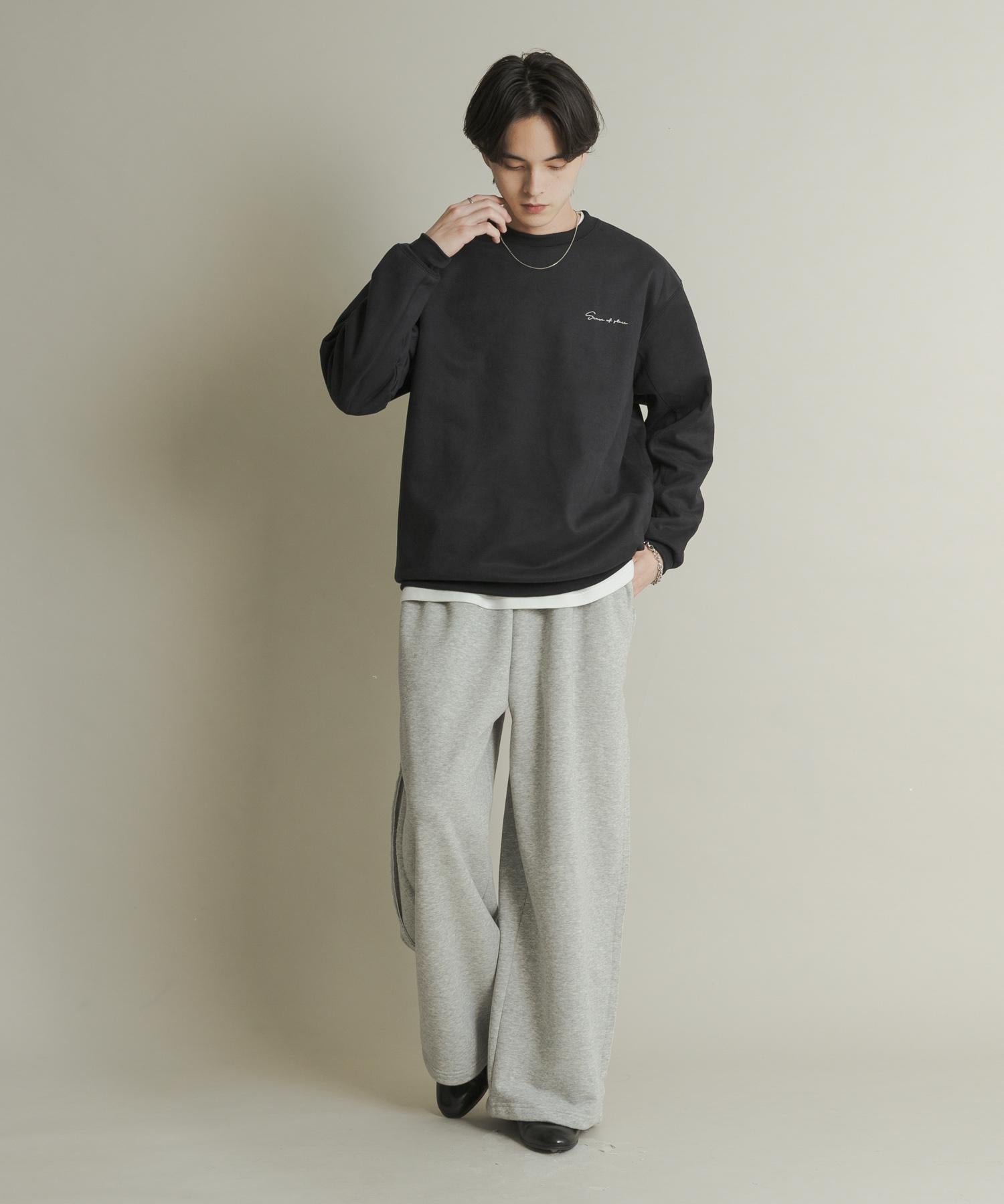 刺繡仿麂皮圓領衛衣