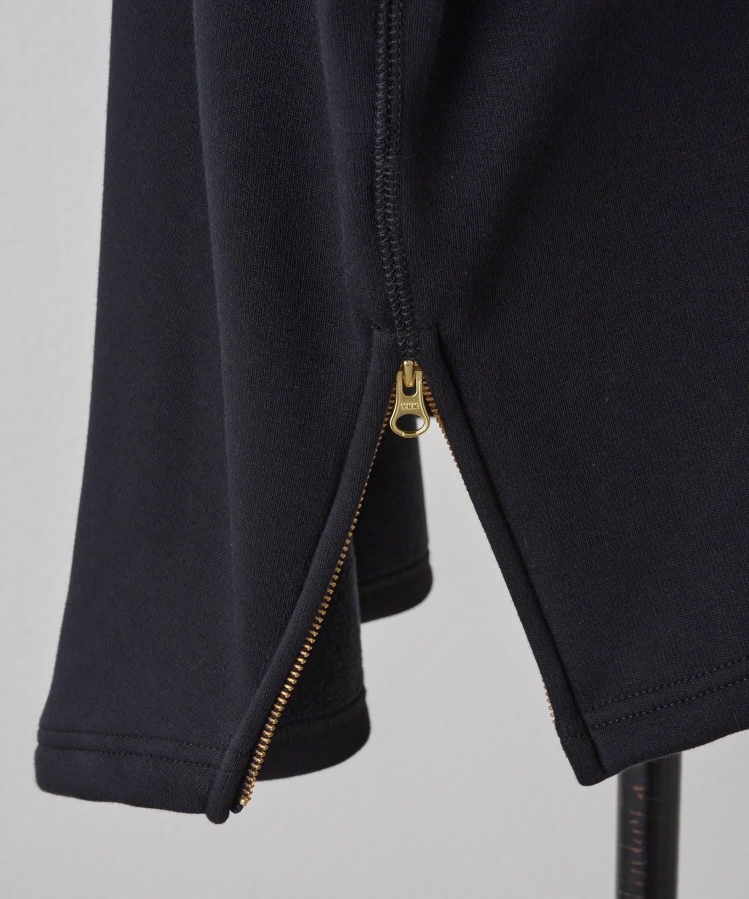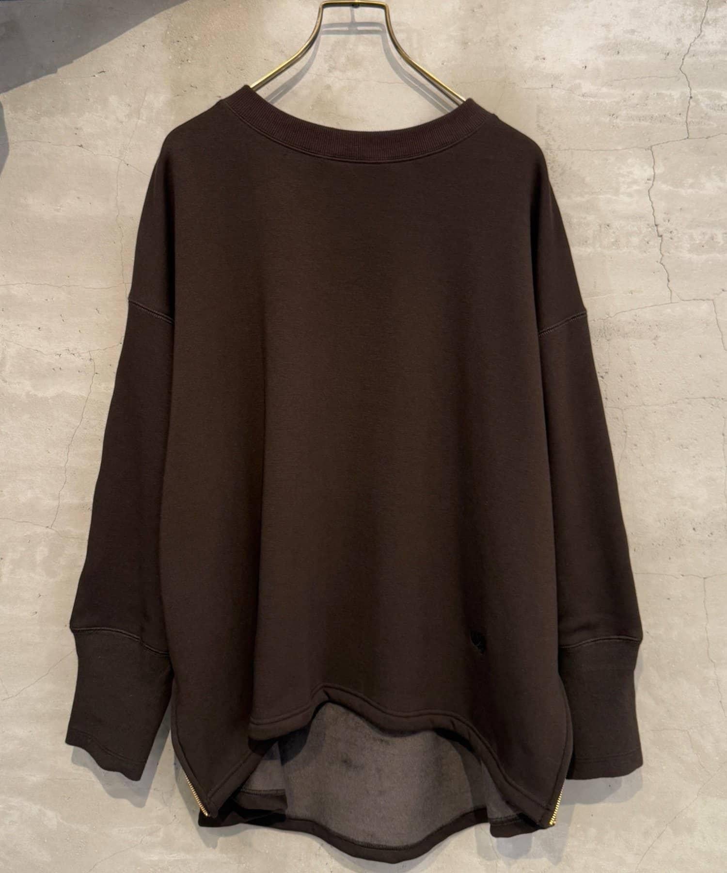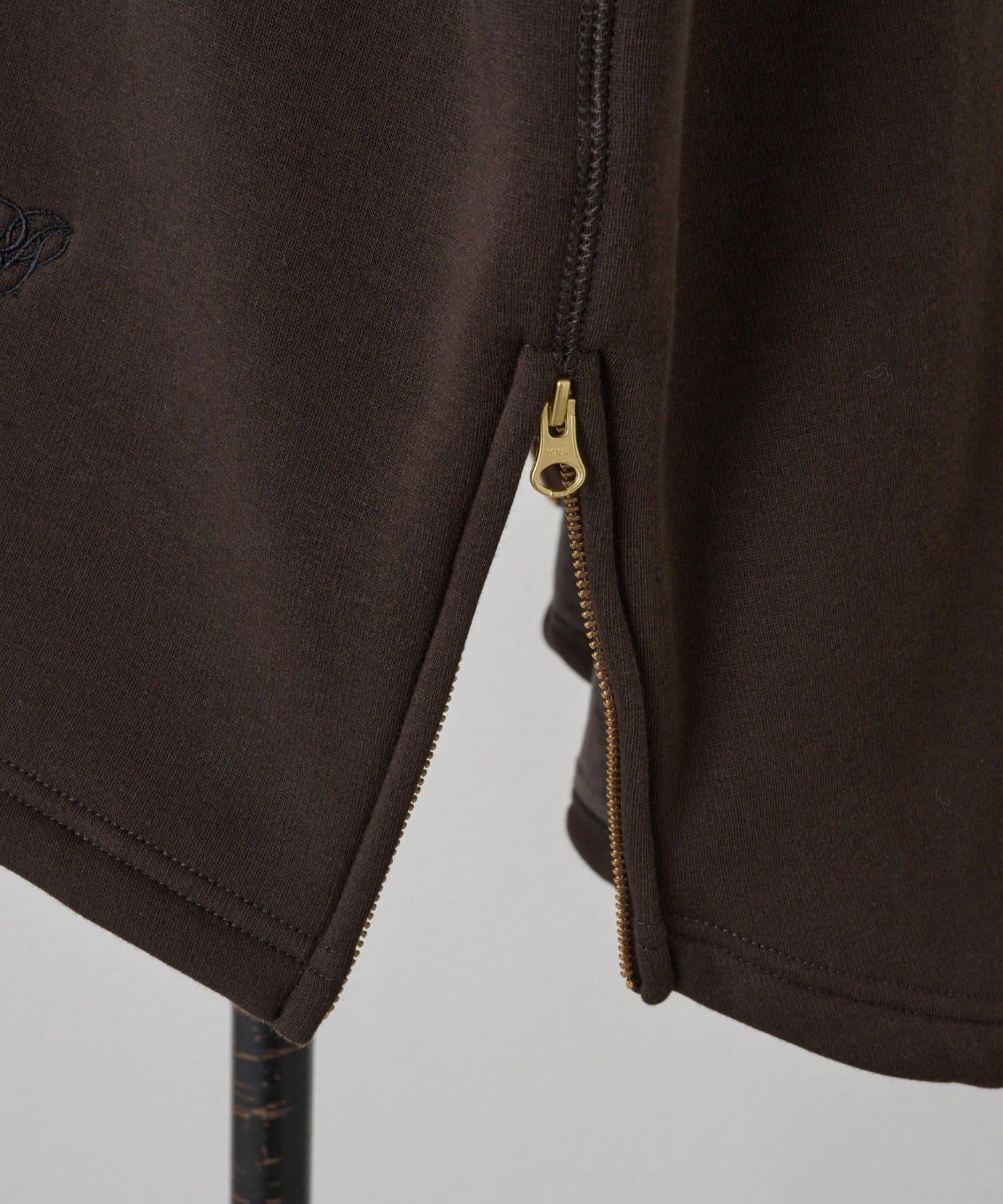 下襬為圓形剪裁,兩側有金色拉鍊,開衩可調節,非常適合疊穿。