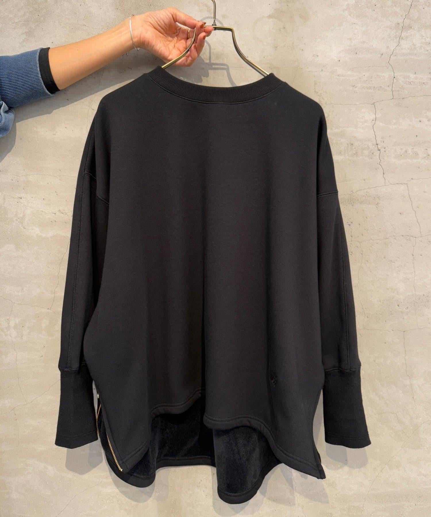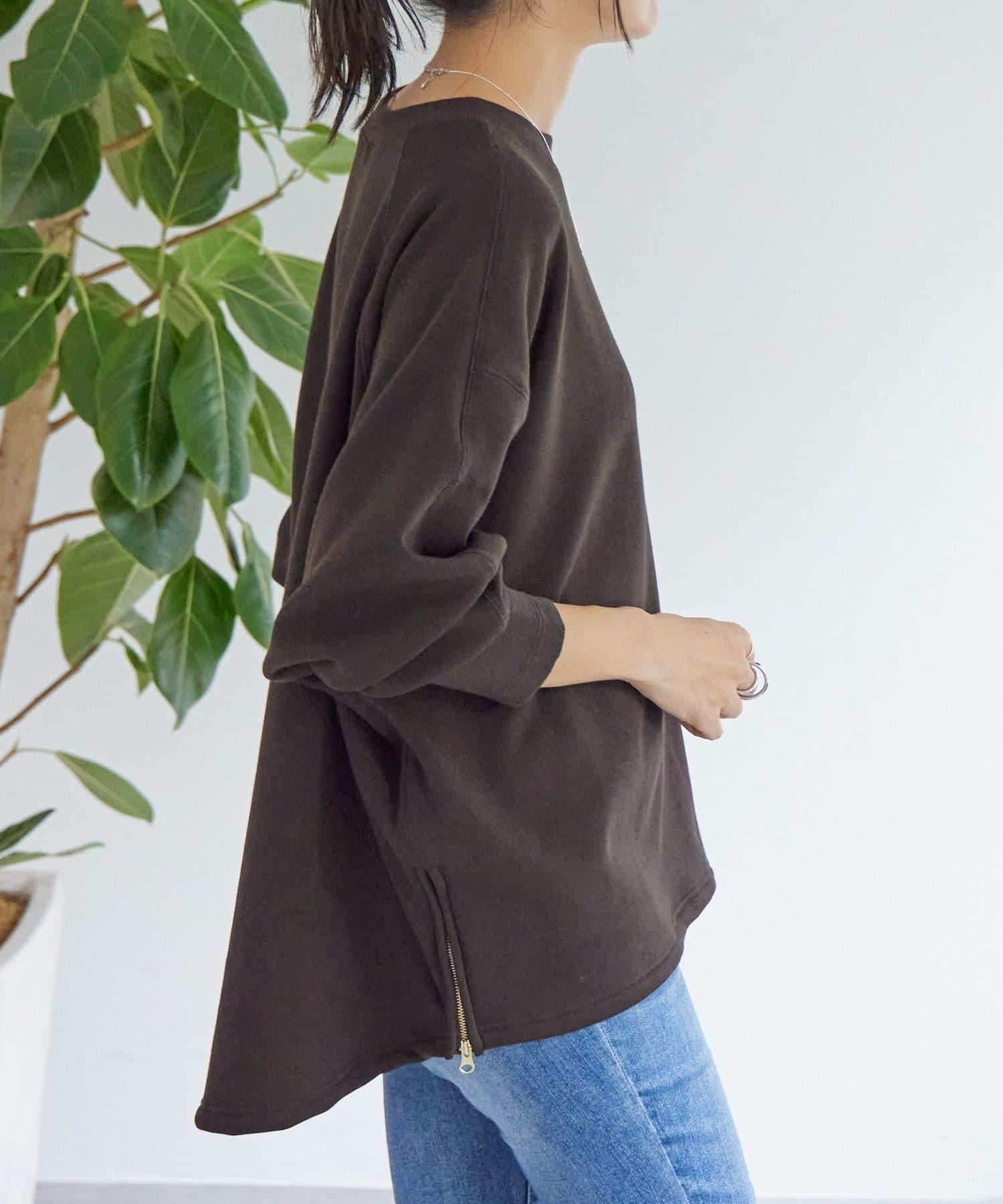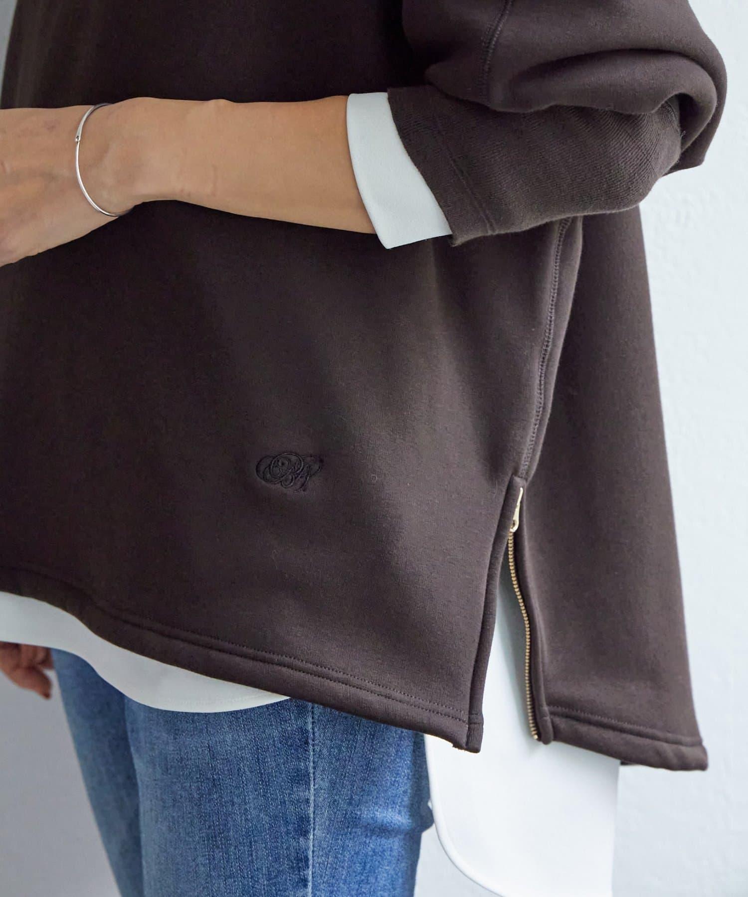 下襬為圓形剪裁,兩側有金色拉鍊,開衩可調節,非常適合疊穿。