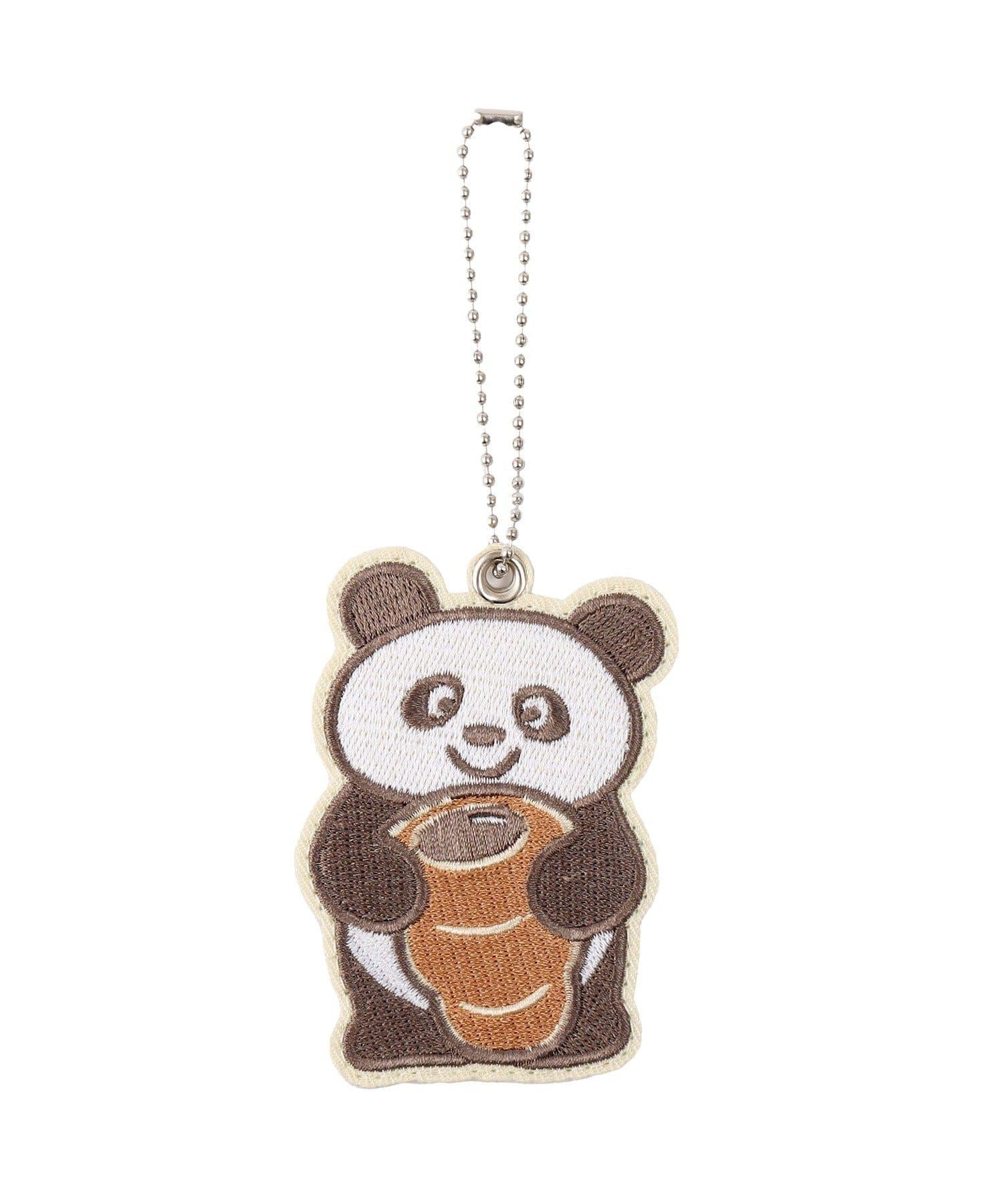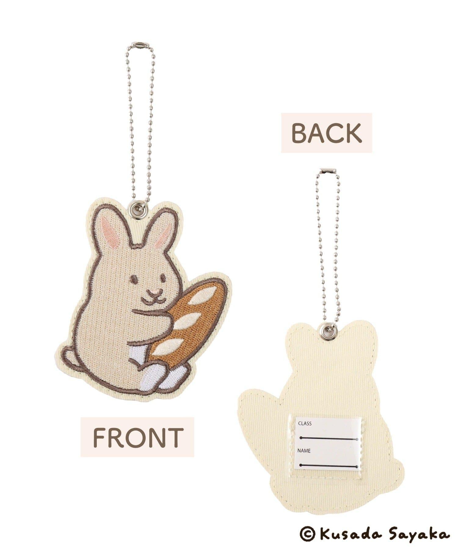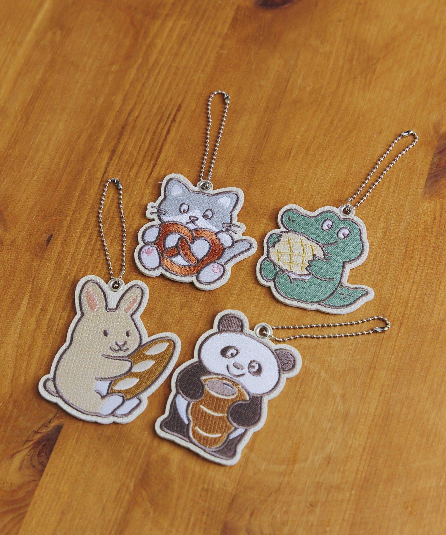 這是一款非常可愛的名字鑰匙扣,上面有一個拿著麵包的動物插圖。