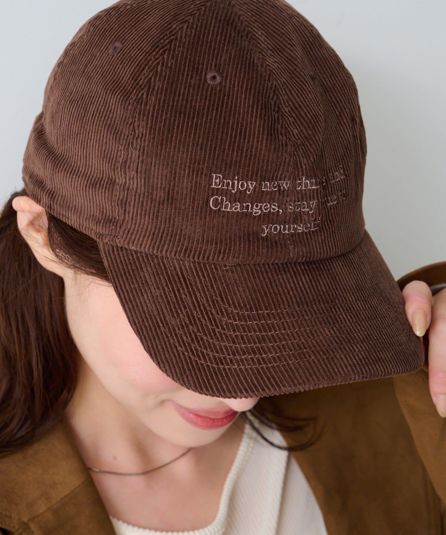 帶有俏皮刺繡的燈芯絨帽子,打造秋冬造型