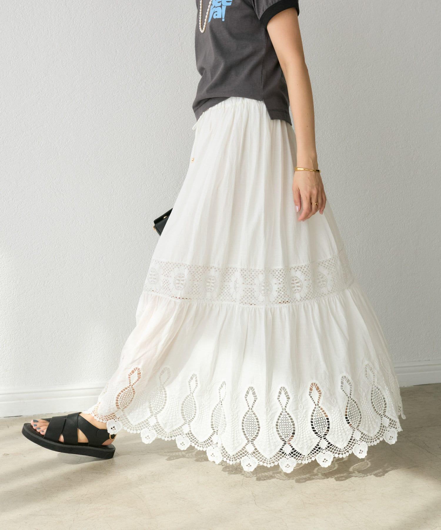 輕盈的裙襬,大膽的蕾絲刺繡。