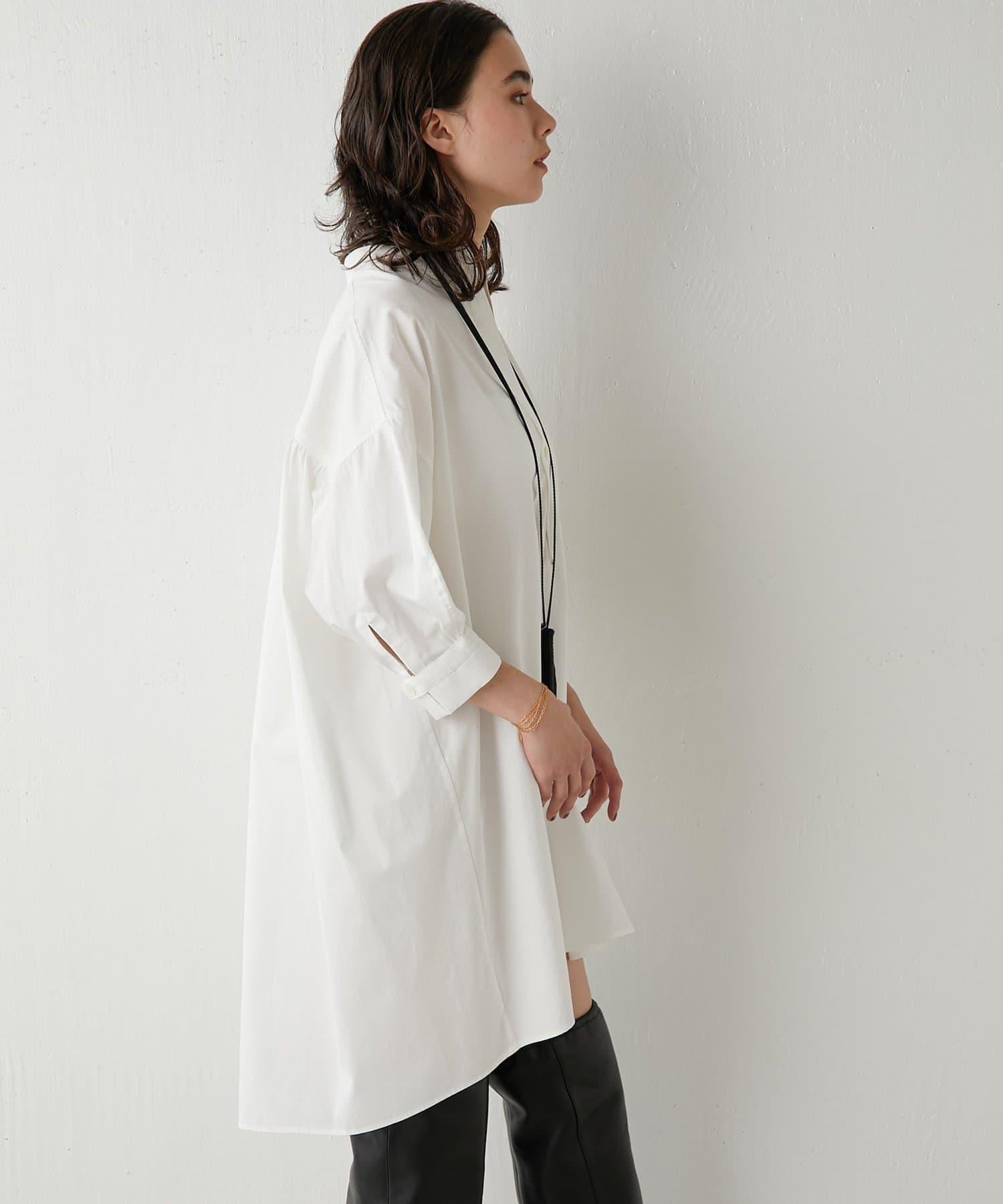 ■トレンドライクなビッグサイズシルエットに仕上げたチュニックシャツ。