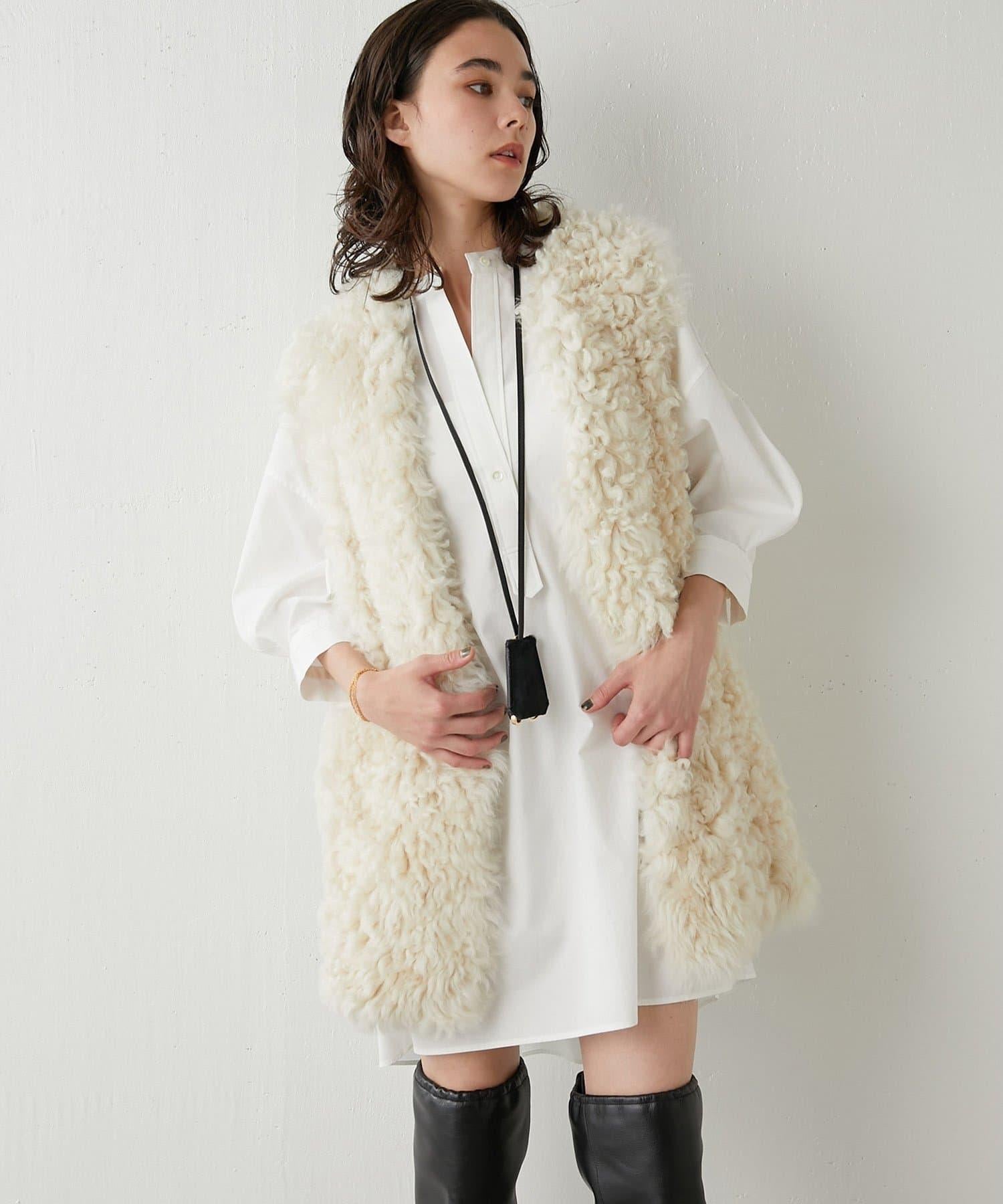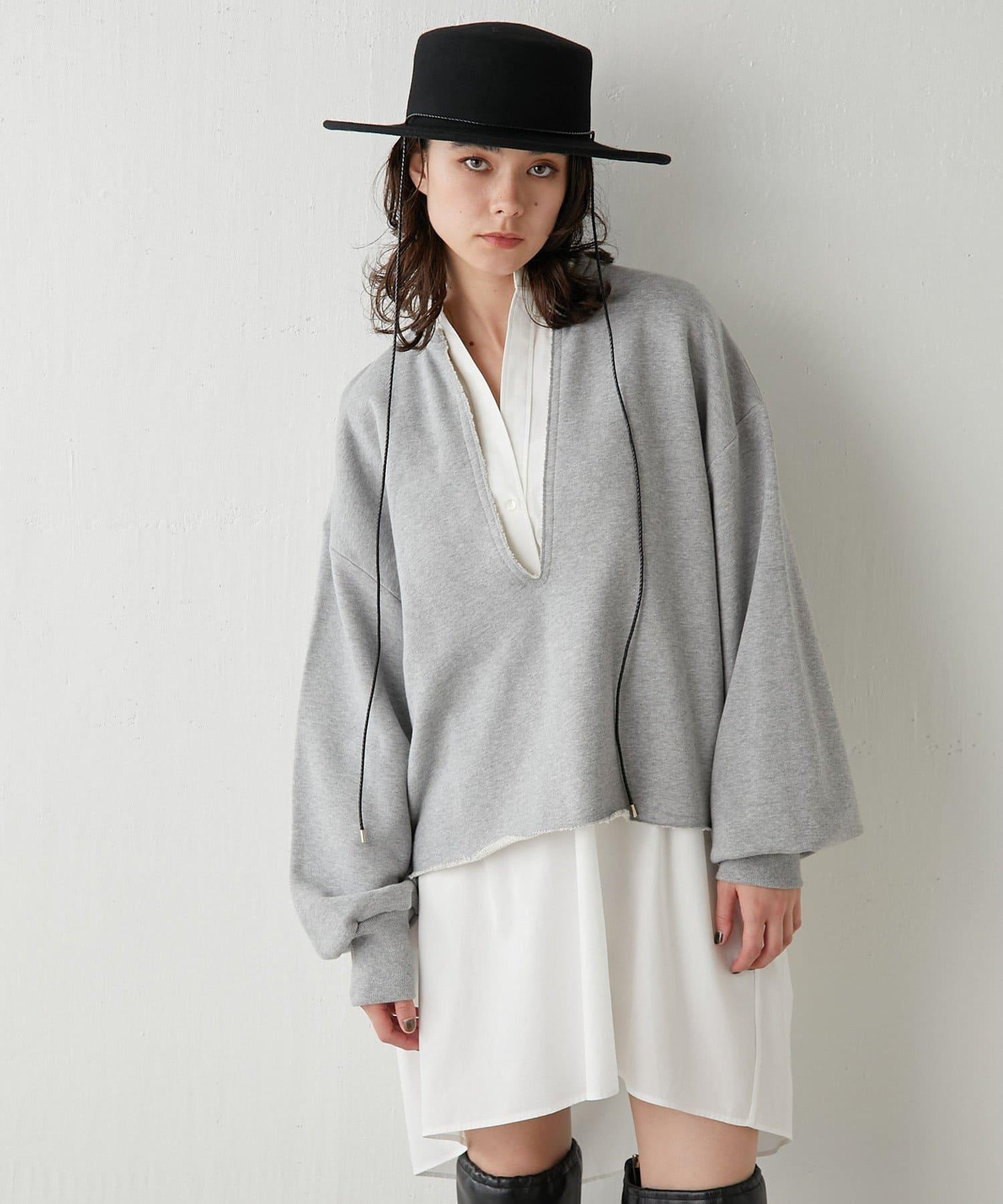 ■ドロップショルダーが華奢見えを葉え、手首の見える袖丈が女性らしさをプラス。