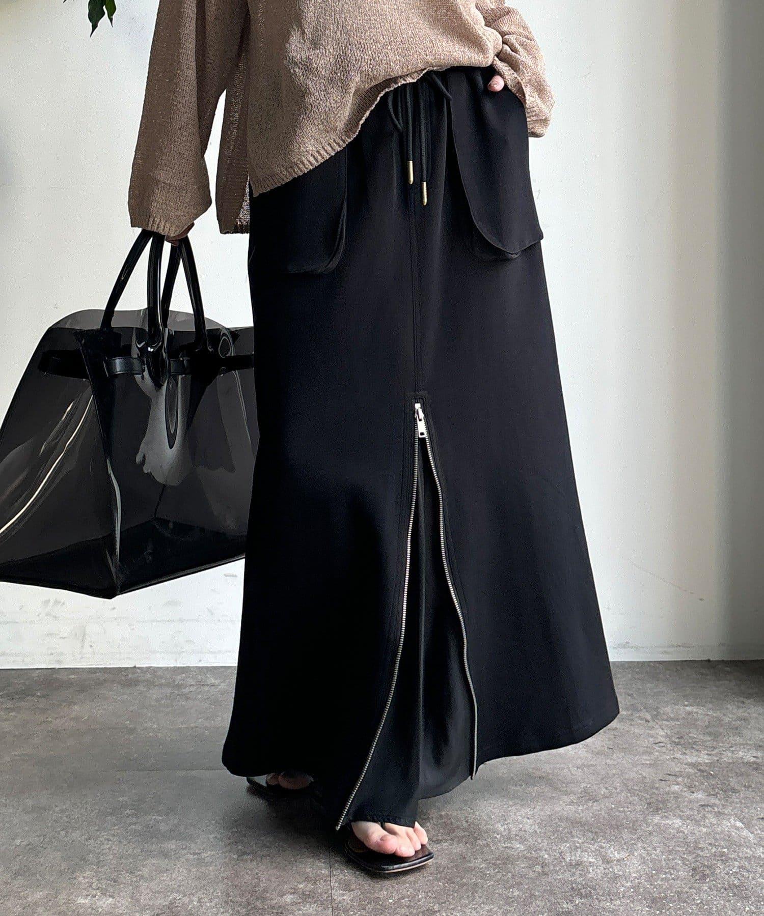 大翻蓋口袋不僅突出了設計感,還能使腰部看起來更高挑,具有出色的提升風格的效果。下襬雖然較長,但有很好的開叉,每次行走都能勾勒出女性的輪廓。