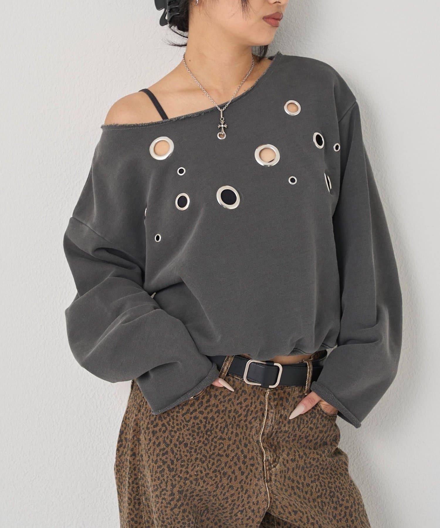 這款運動衫採用露肩設計,正面有醒目、大膽的鴿尾圖案。