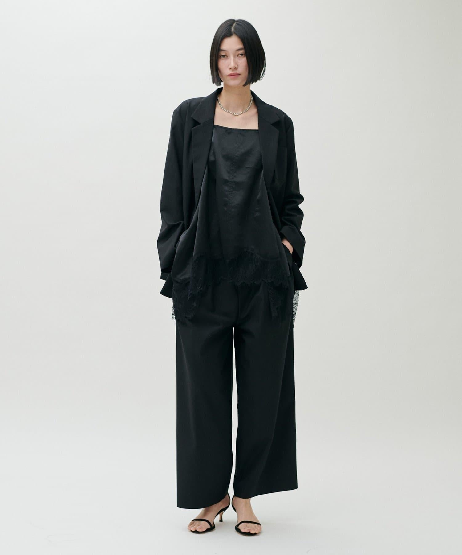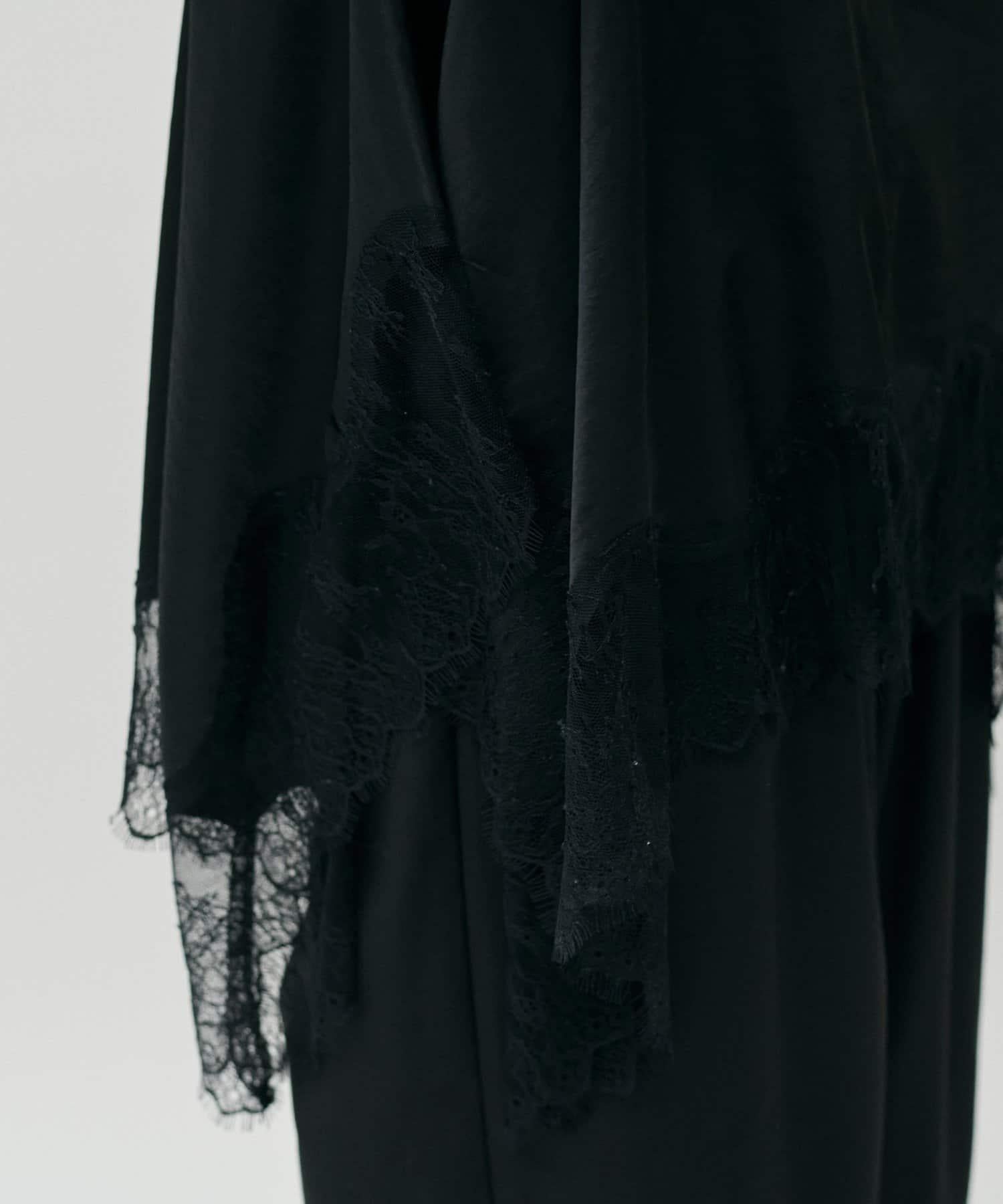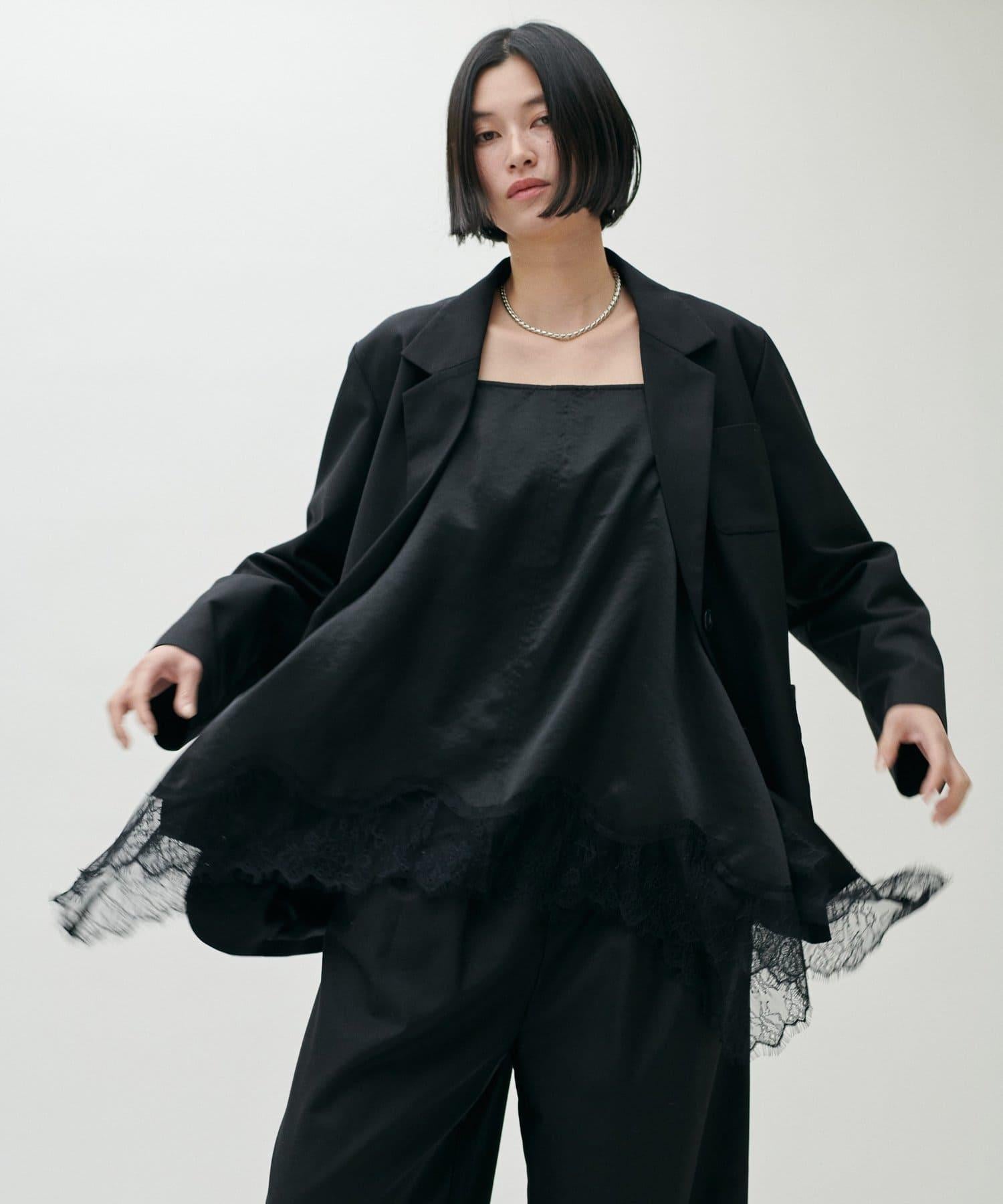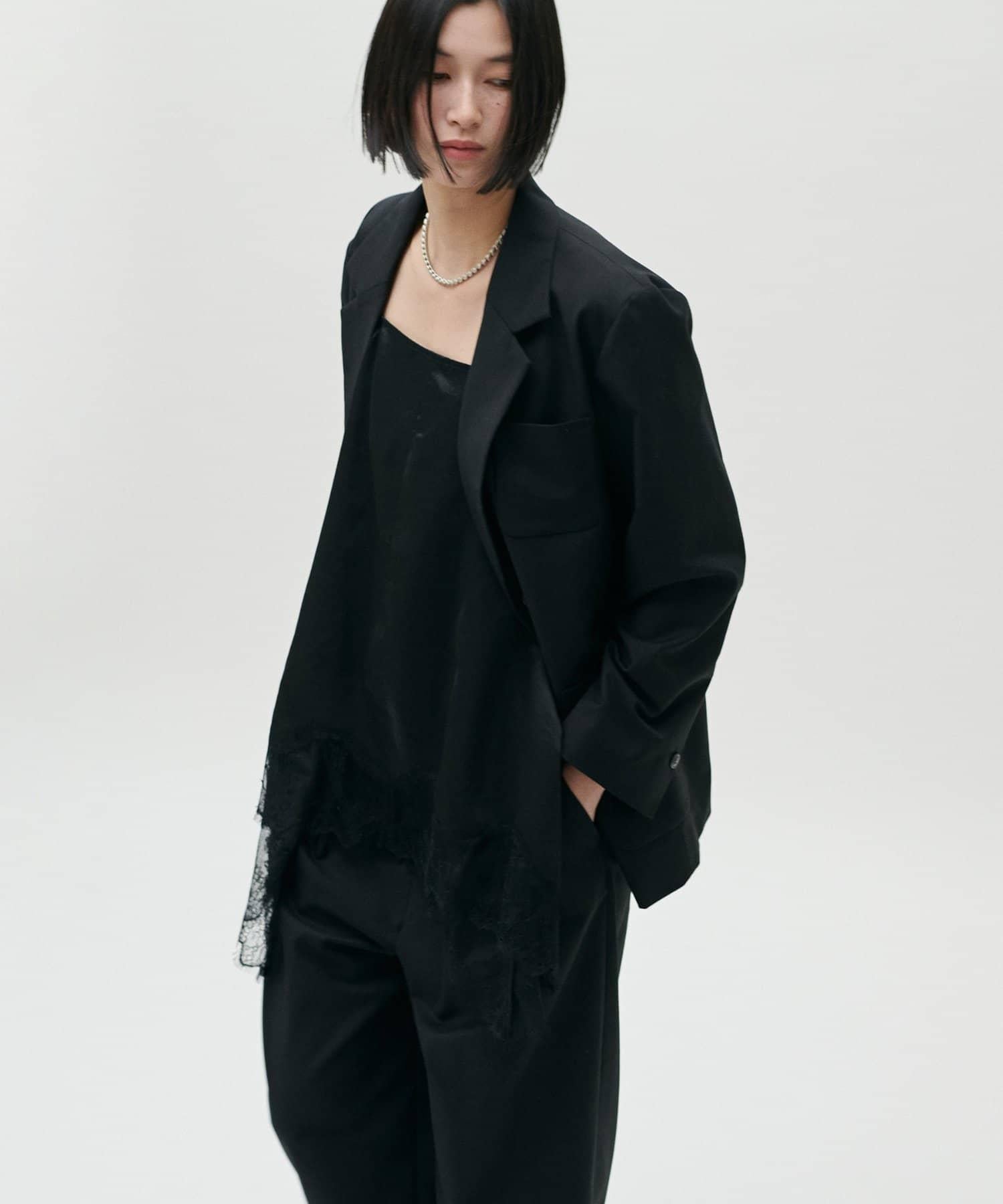 輕盈的蕾絲和緞面面料相結合的女性化表現面料,手感柔軟寬鬆。