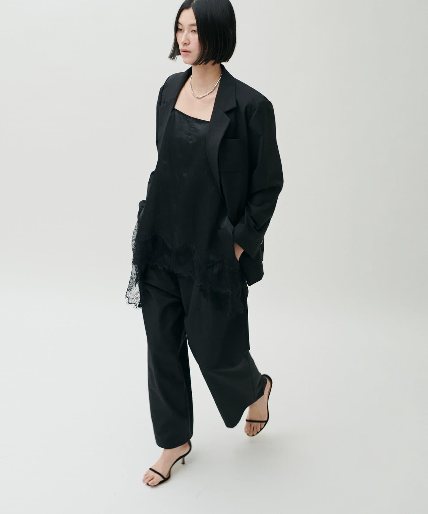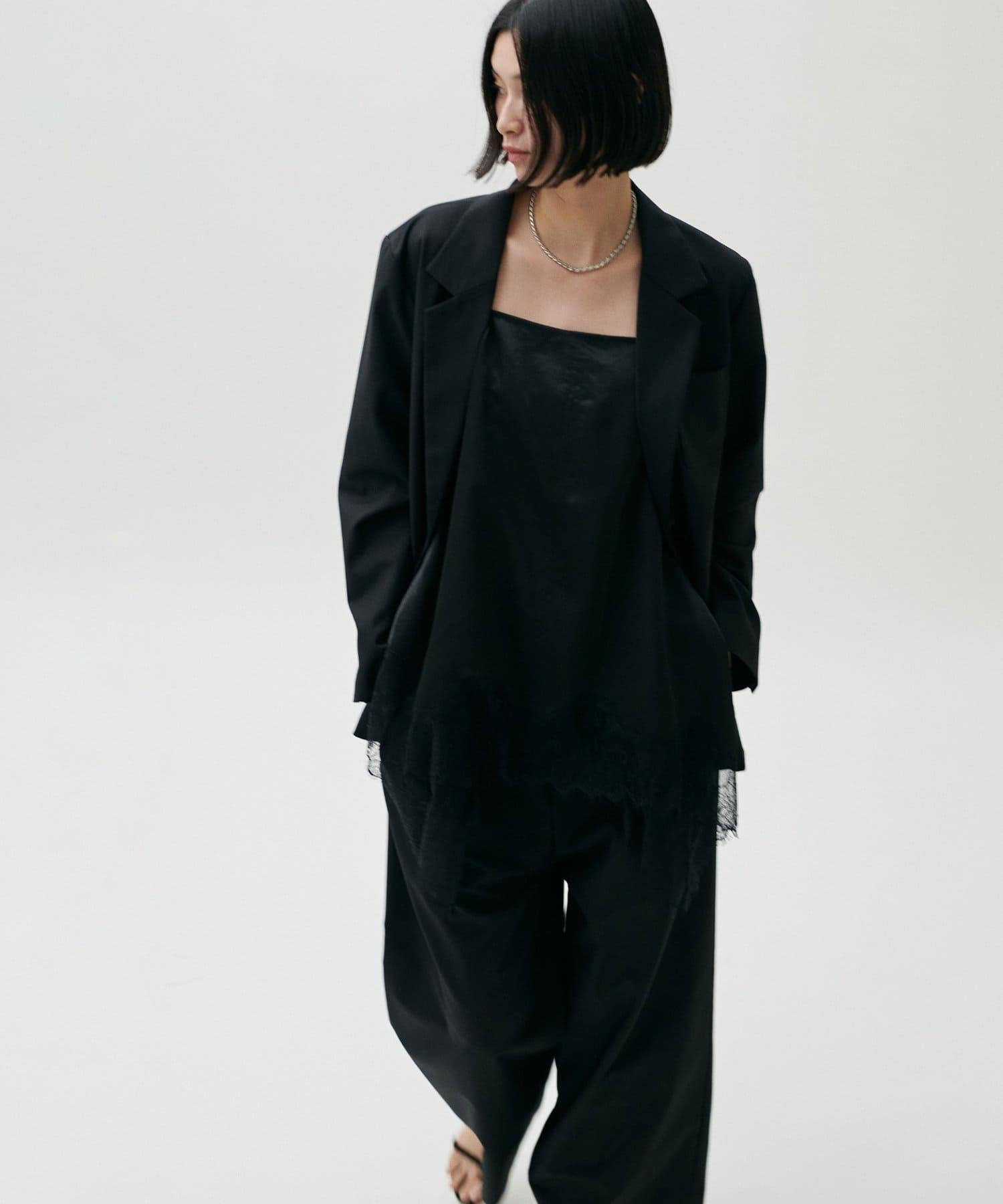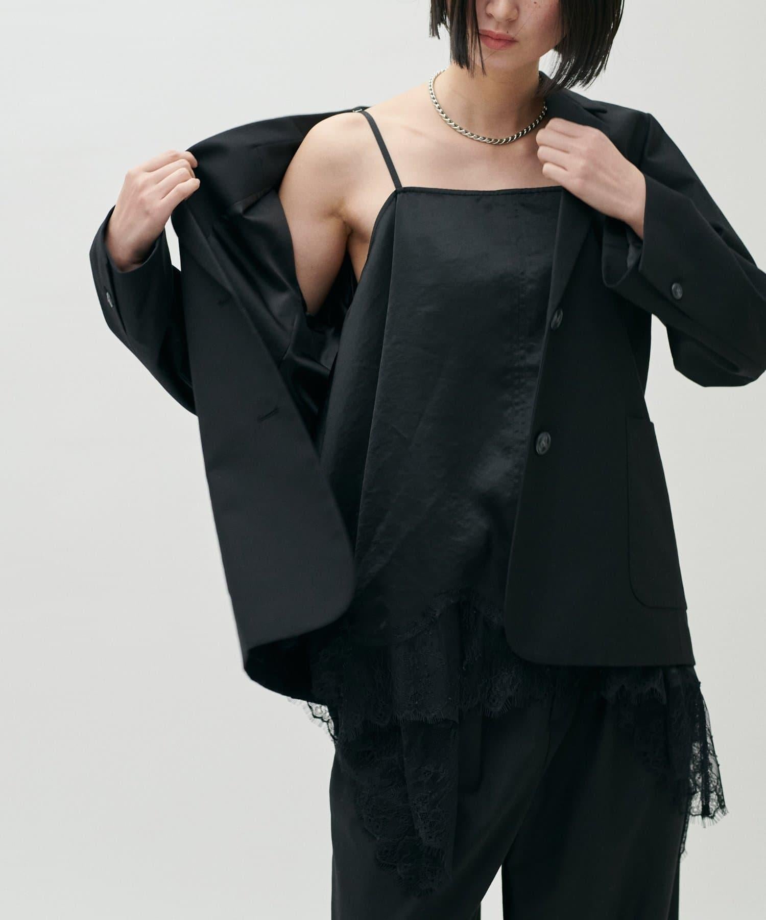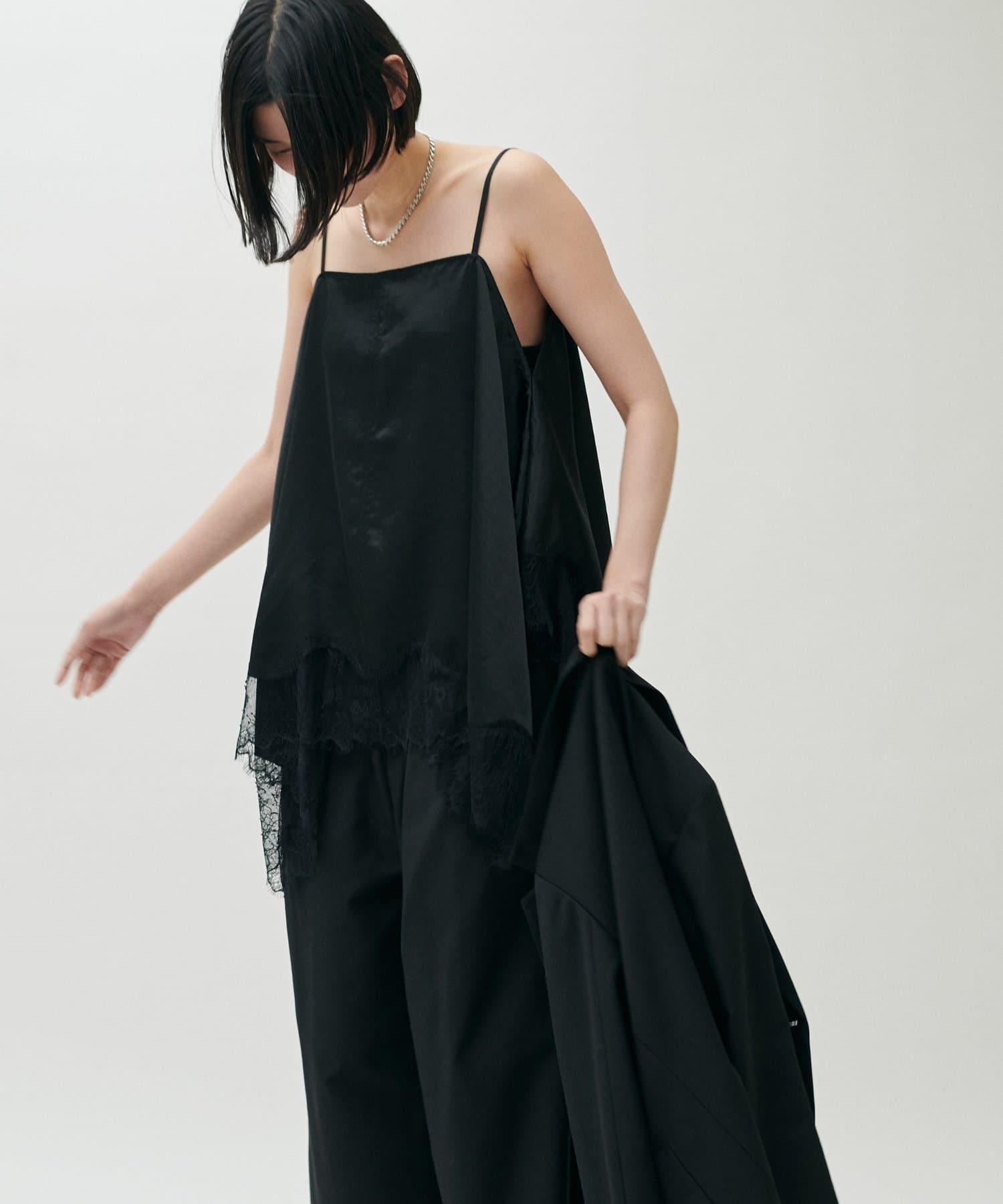 輕盈的蕾絲和緞面面料相結合的女性化表現面料,手感柔軟寬鬆。